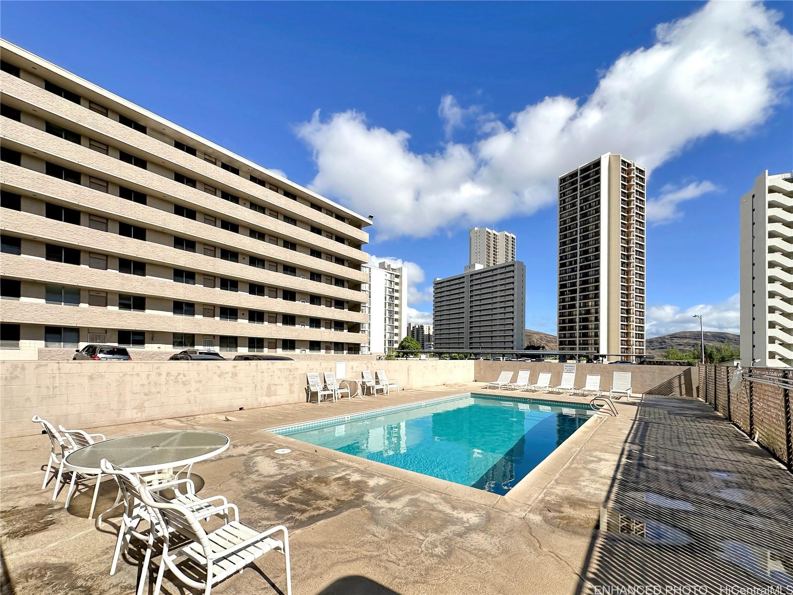[0] => Welcome to Ilima West Apartments! This spacious 2-bedroom, 1-bath, 1 Parking home is move-in ready. Enjoy the comfort of vinyl flooring, fresh interior paint, a brand-new refrigerator, and a brand-new range. The unit benefits from great cross breezes, keeping the home naturally cool. The well-maintained building offers a swimming pool and the convenience of an on-site resident manager. The maintenance fee includes water, sewer, cable TV, and other common expenses. Located in Salt Lake, Honolulu with easy freeway access, this home is just minutes from Honolulu International Airport, restaurants, Safeway, and more. Whether you’re a first-time buyer or looking for an investment property, this condo is an excellent opportunity to own a piece of island living!