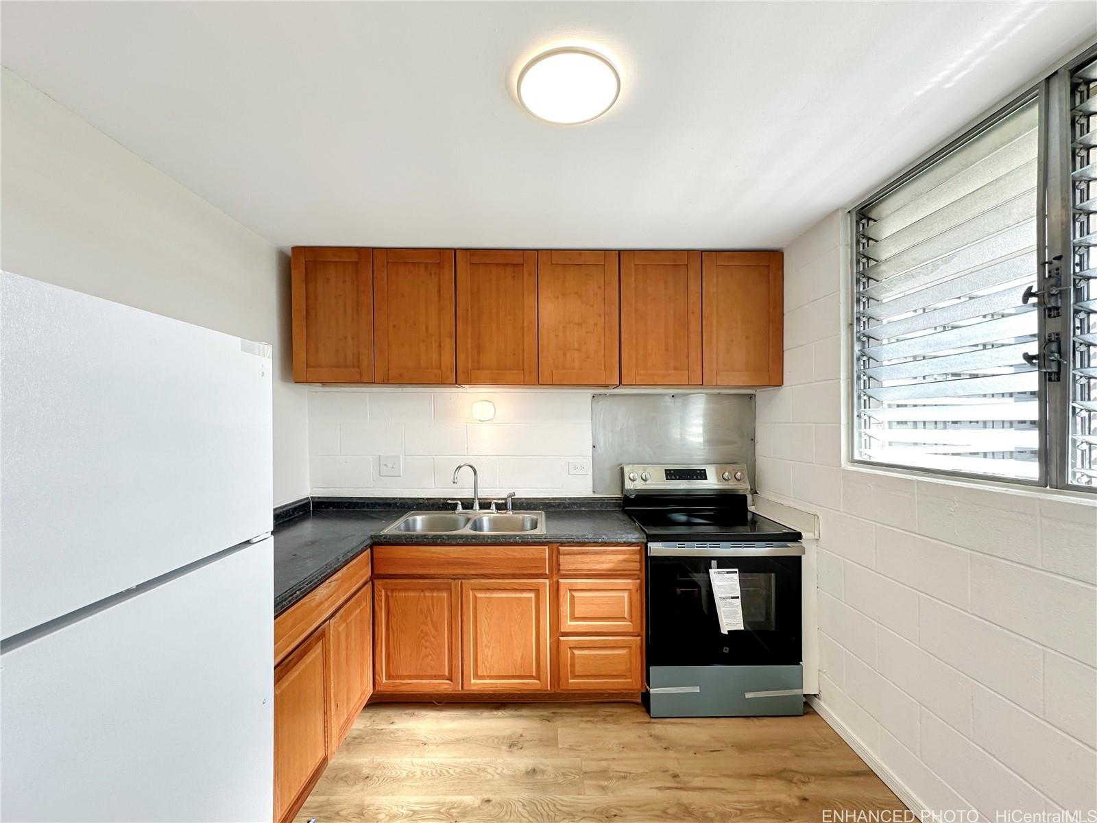Welcome to Ilima West Apartments! This spacious 2-bedroom, 1-bath, 1 Parking home is move-in ready. Enjoy the comfort of vinyl flooring, fresh interior paint, a brand-new refrigerator, and a brand-new range. The unit benefits from great cross breezes, keeping the home naturally cool. The well-maintained building offers a swimming pool and the convenience of an on-site resident manager. The maintenance fee includes water, sewer, cable TV, and other common expenses. Located in Salt Lake, Honolulu with easy freeway access, this home is just minutes from Honolulu International Airport, restaurants, Safeway, and more. Whether you’re a first-time buyer or looking for an investment property, this condo is an excellent opportunity to own a piece of island living! Listing by: New Homes Realty LLC (808) 741-0679