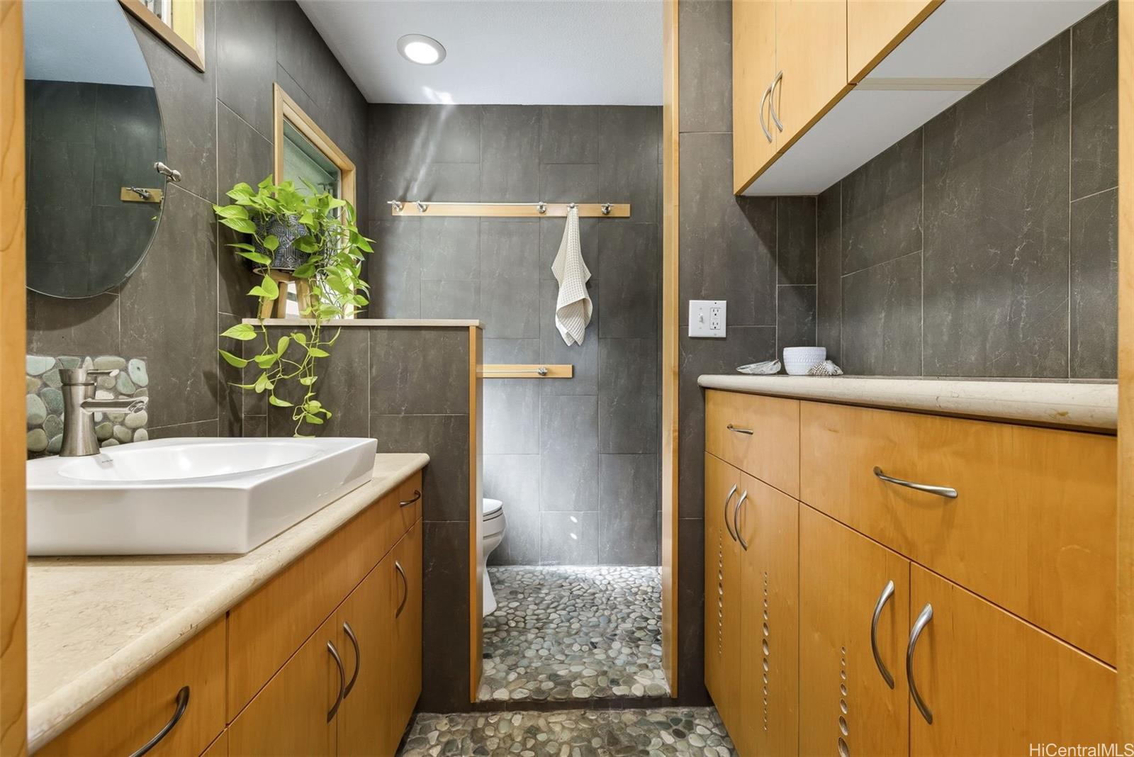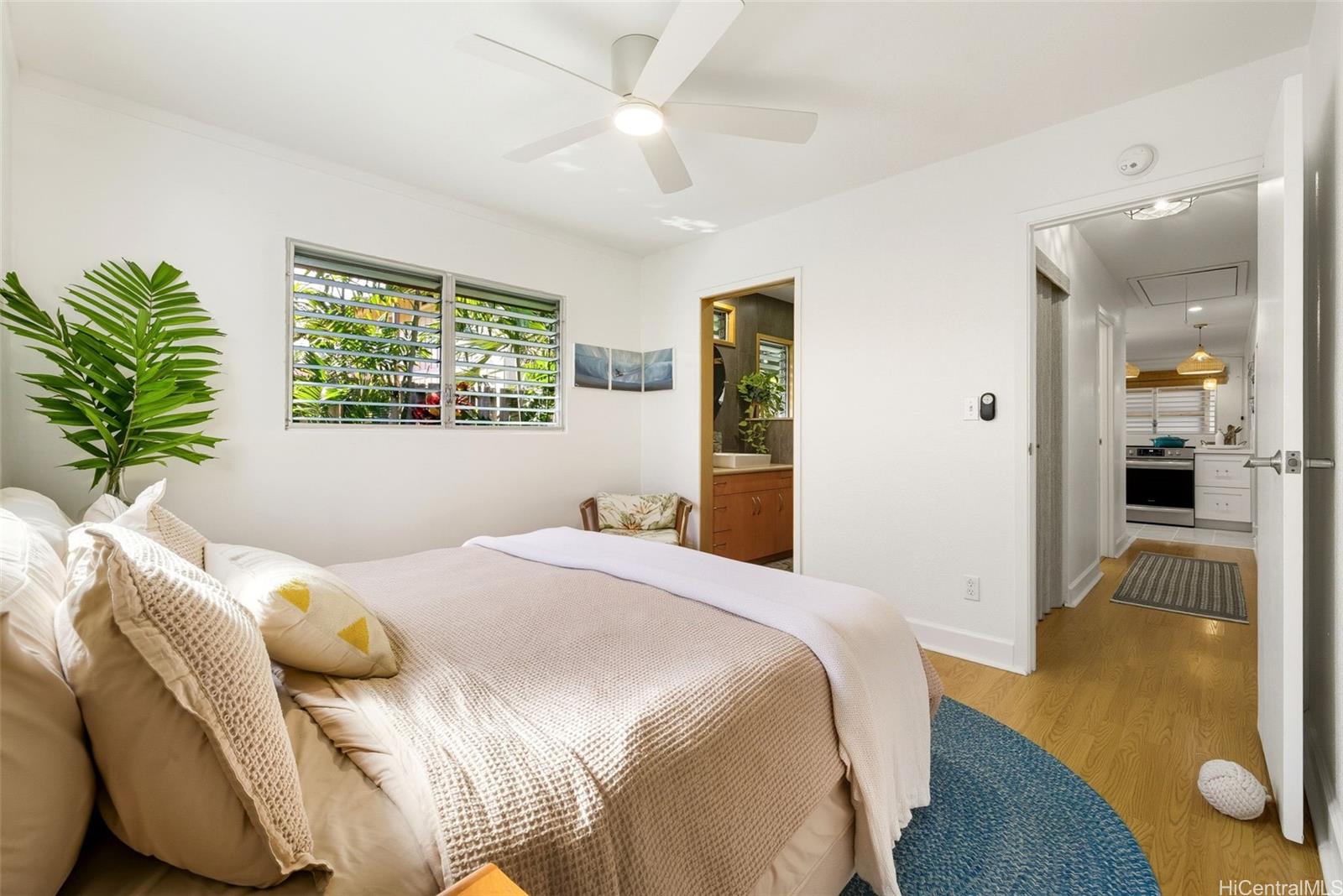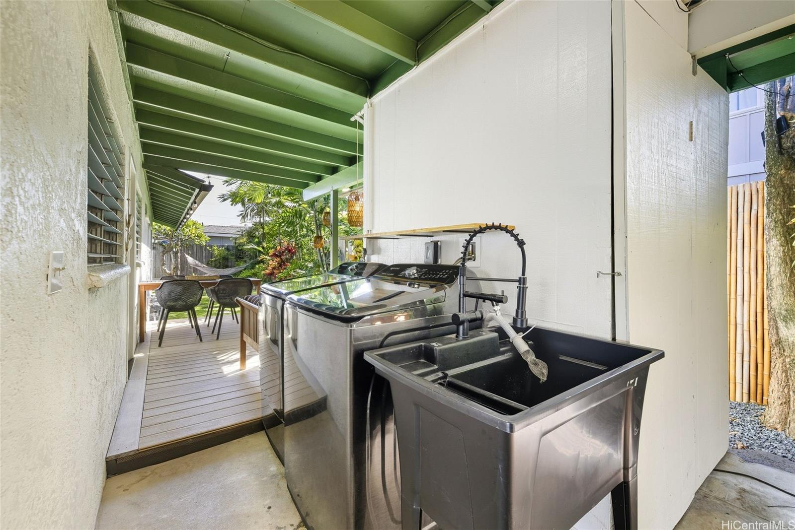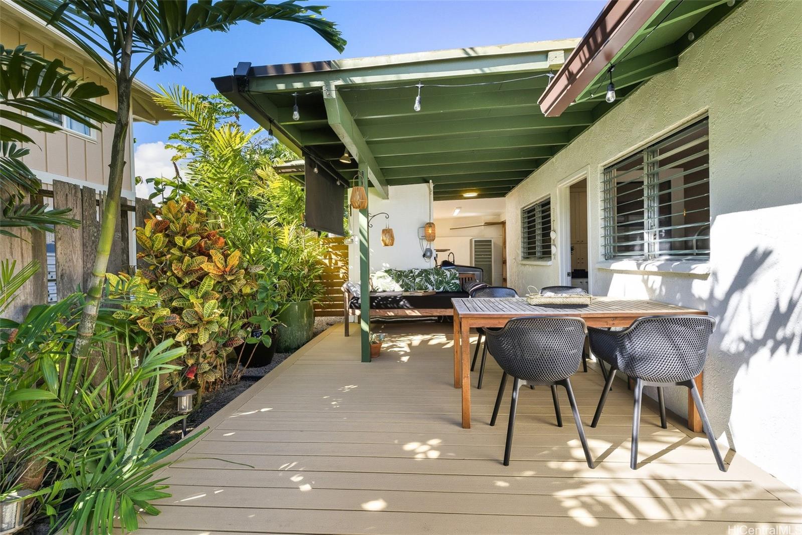 True turn key gem in the heart of Coconut Grove, Kailua. This 3 bedroom 2 full bath is perfectly situated to catch the trade winds, the concrete construction keeps it cool all year long with no termite worries. Kitchen recently remodled with stainless steel appliances, new Bosch fridge freezer and a dishwasher. Upgrades continue with custom cabinets and closets in all 3 bedrooms, new roof, outdoor shower and a brand new solar water heater. Outside is a beautiful landscaped yard, new timber tech deck and an automatic sprinkler system. Thoughtful storage throughout the house, an attic space with flooring and drywall and large tool/surfboard shed in the garage. The home is connected to the neighbor property via the carport wall and is located at the end of a private lane which adds safety and privacy, NO HOA. The neighborhood is quiet, peaceful and you can hear the waves crashing at night. Great relationship with neighbors including a care home with very nice tenants. 5min drive to Kailua town with shops, restaurant and supermarkets. 25min drive to the airport and 35min to Honolulu. Perfect low maintenance home with low insurance and low property tax. Come have a look for yourself! Listing by: Compass (808) 376-9187