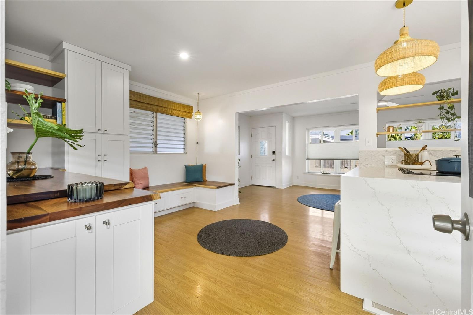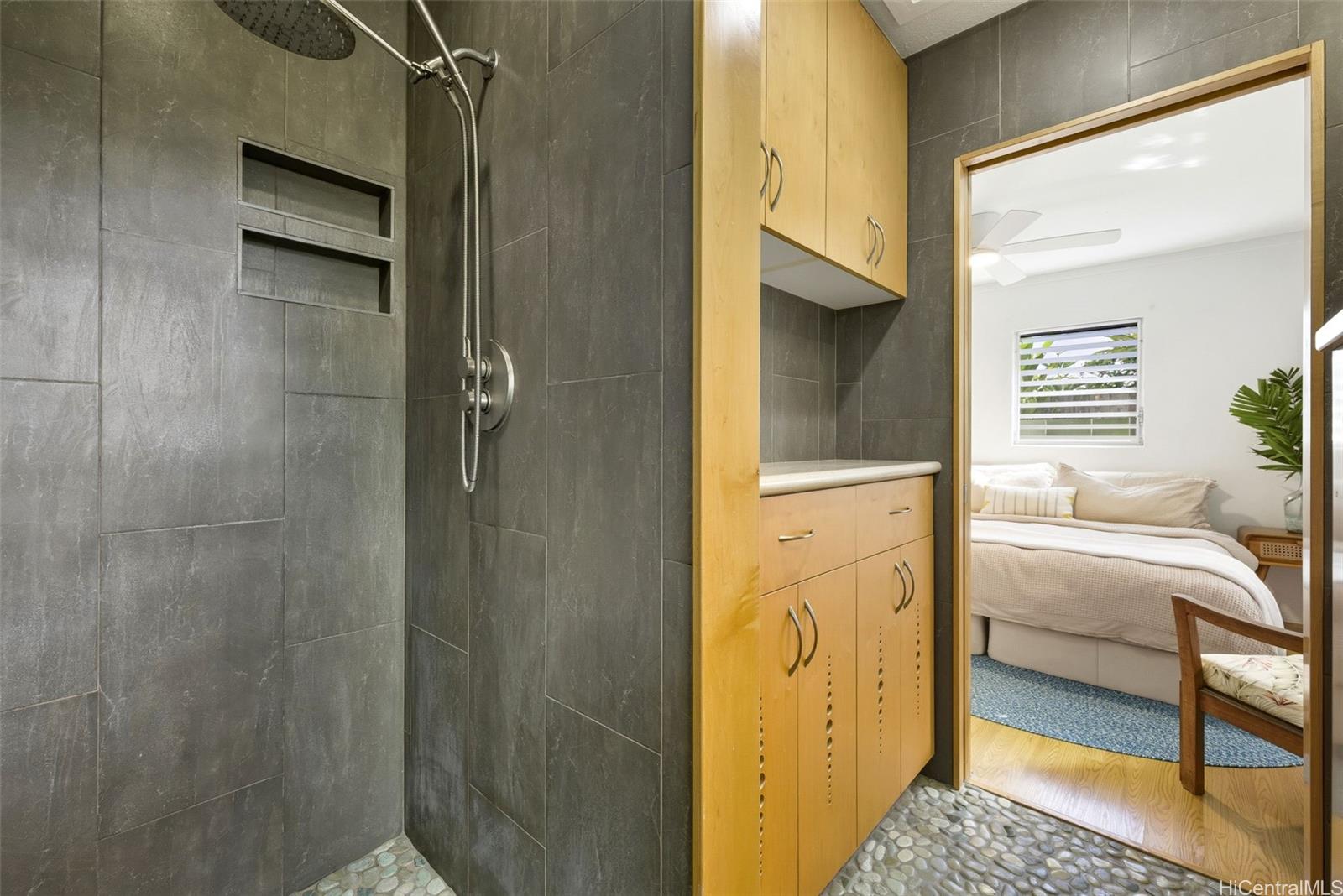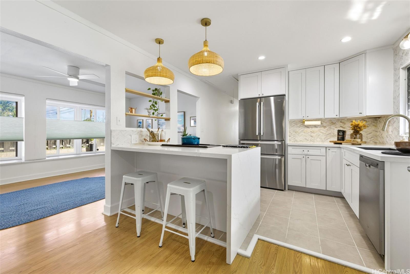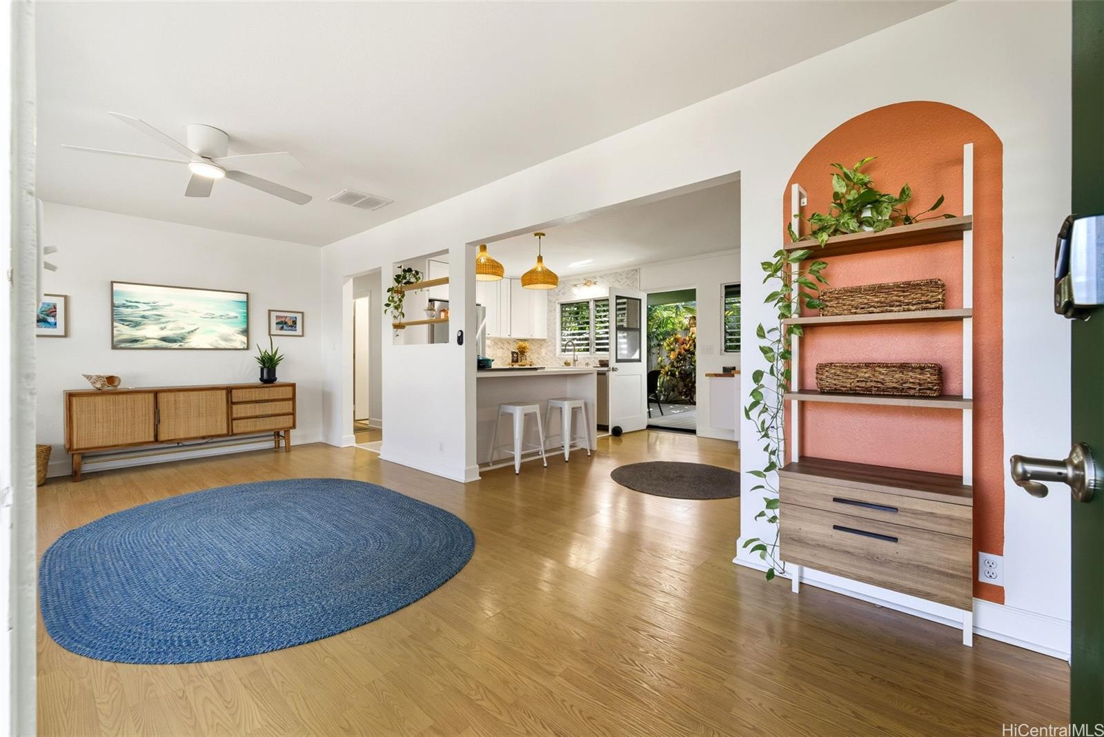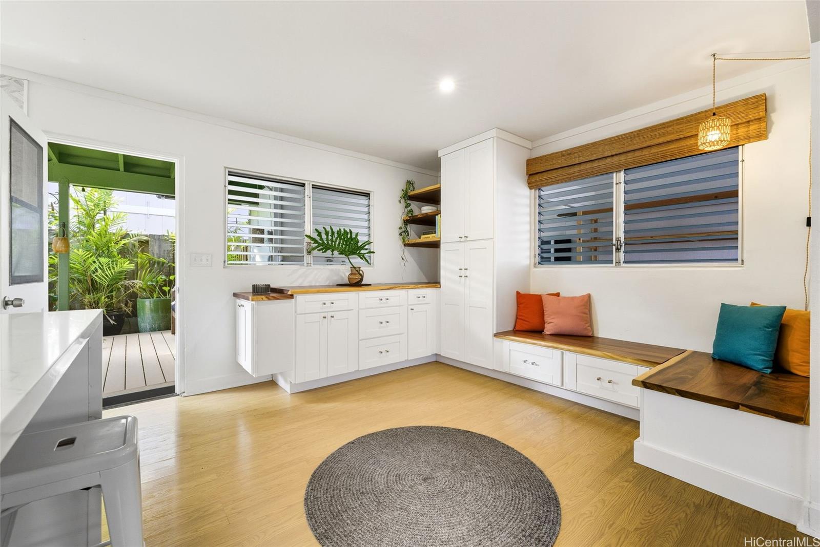 [0] => True turn key gem in the heart of Coconut Grove, Kailua. This 3 bedroom 2 full bath is perfectly situated to catch the trade winds, the concrete construction keeps it cool all year long with no termite worries. Kitchen recently remodled with stainless steel appliances, new Bosch fridge freezer and a dishwasher. Upgrades continue with custom cabinets and closets in all 3 bedrooms, new roof, outdoor shower and a brand new solar water heater. Outside is a beautiful landscaped yard, new timber tech deck and an automatic sprinkler system. Thoughtful storage throughout the house, an attic space with flooring and drywall and large tool/surfboard shed in the garage. The home is connected to the neighbor property via the carport wall and is located at the end of a private lane which adds safety and privacy, NO HOA. The neighborhood is quiet, peaceful and you can hear the waves crashing at night. Great relationship with neighbors including a care home with very nice tenants. 5min drive to Kailua town with shops, restaurant and supermarkets. 25min drive to the airport and 35min to Honolulu. Perfect low maintenance home with low insurance and low property tax. Come have a look for yourself!