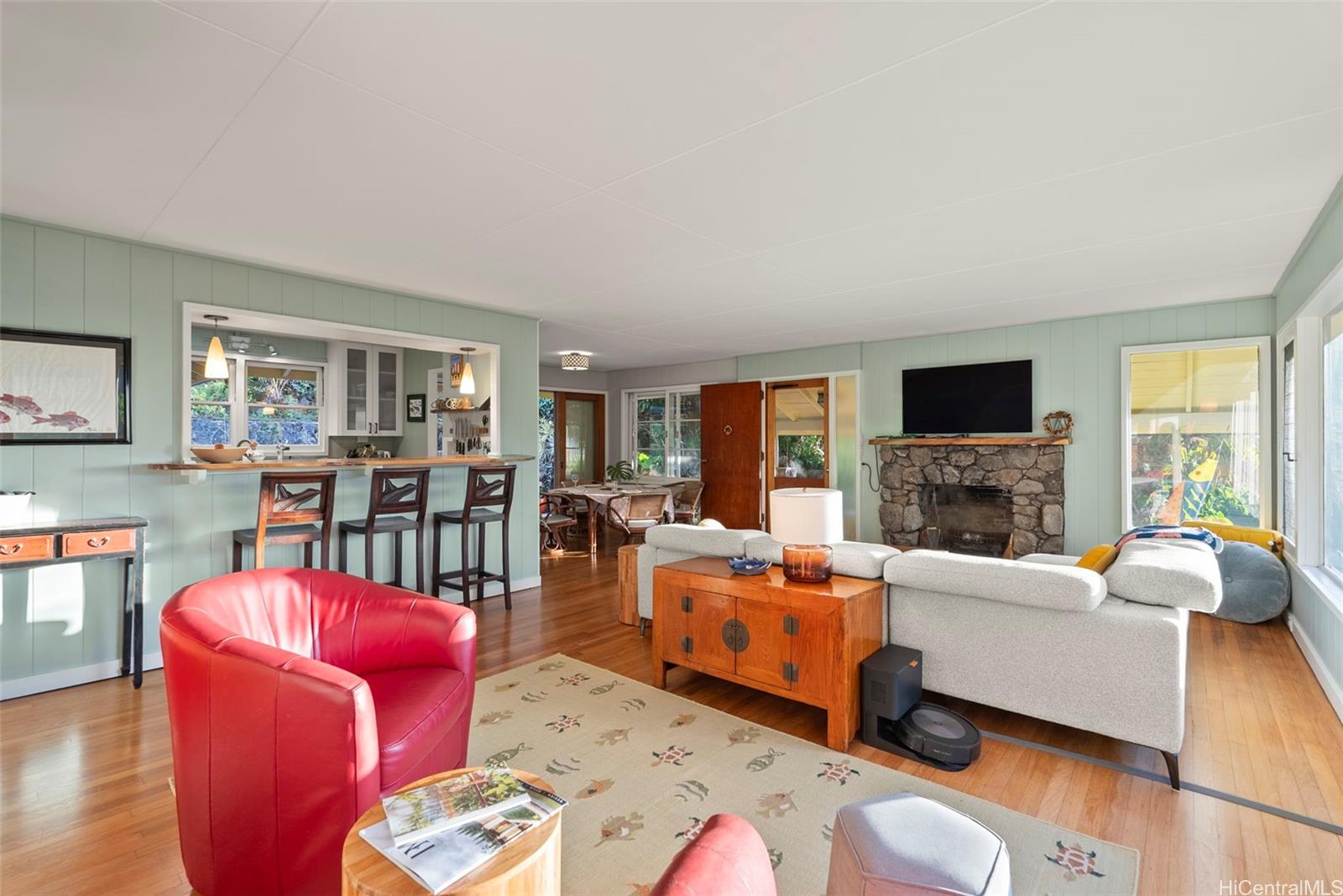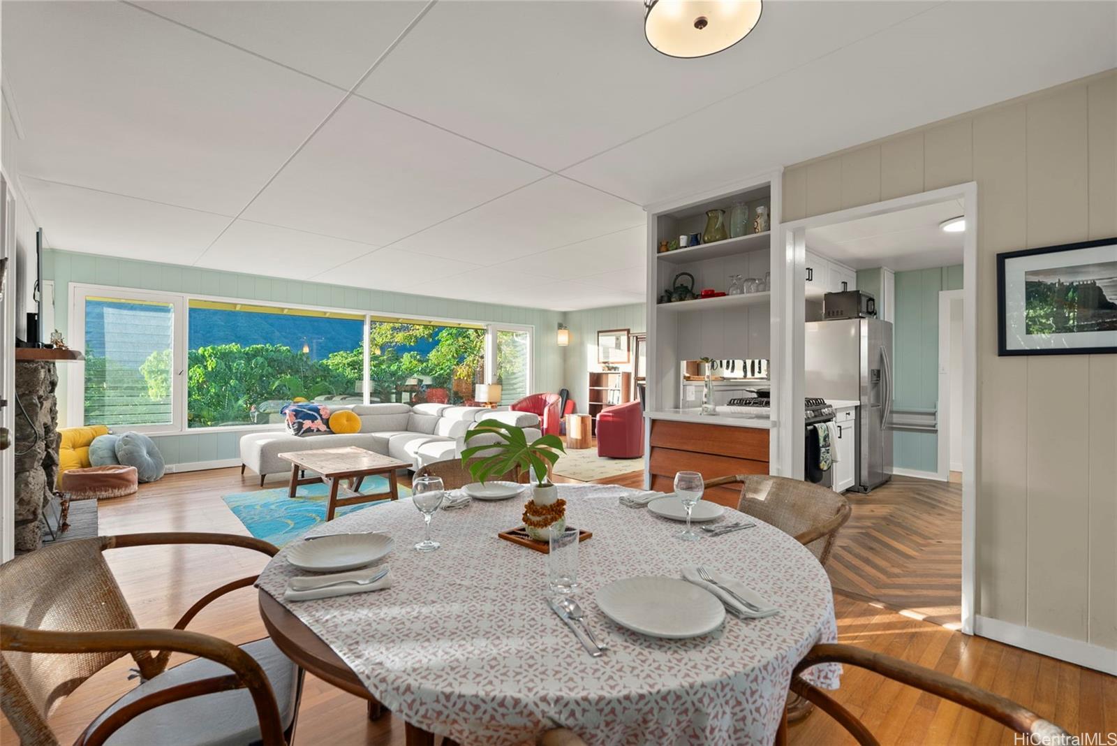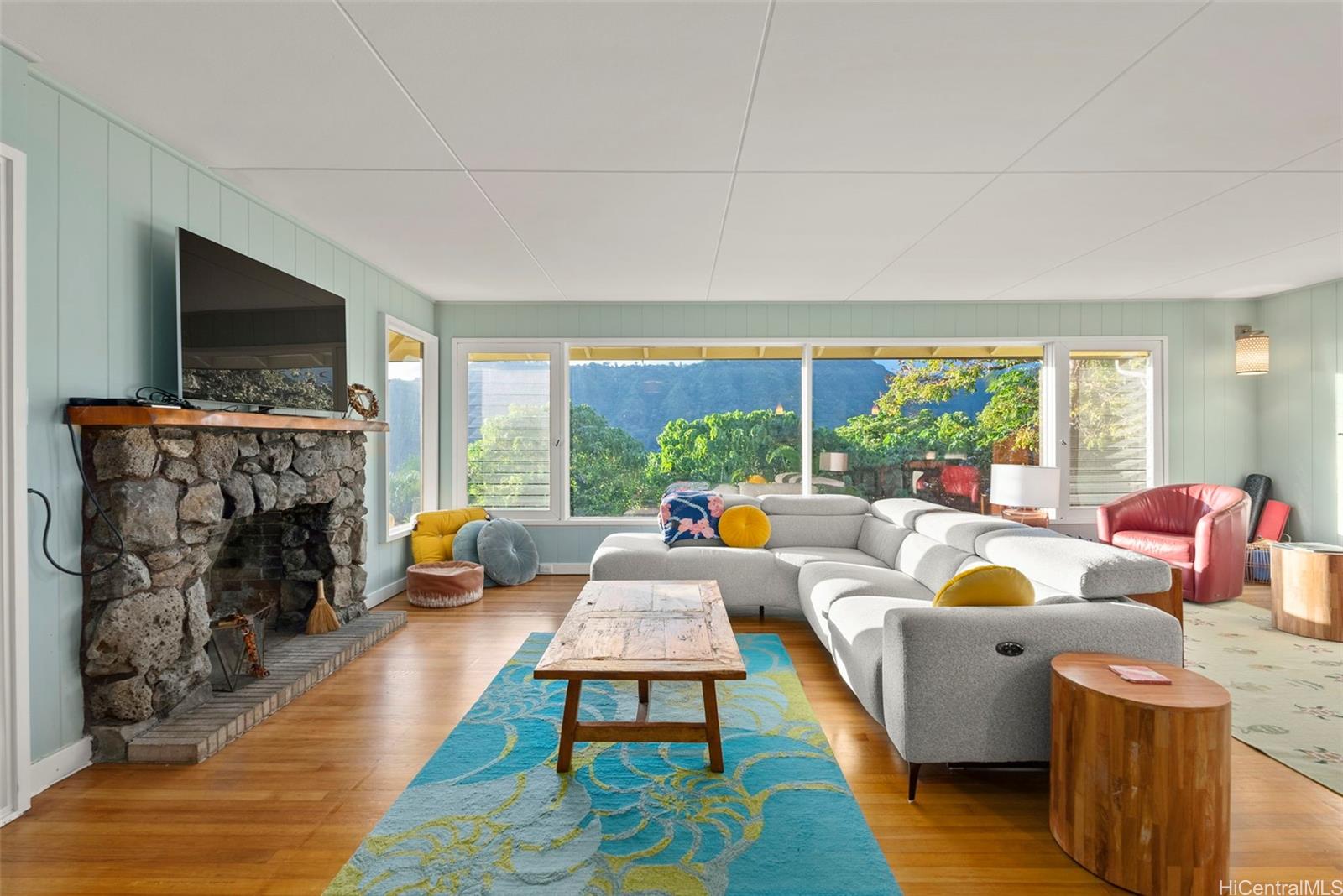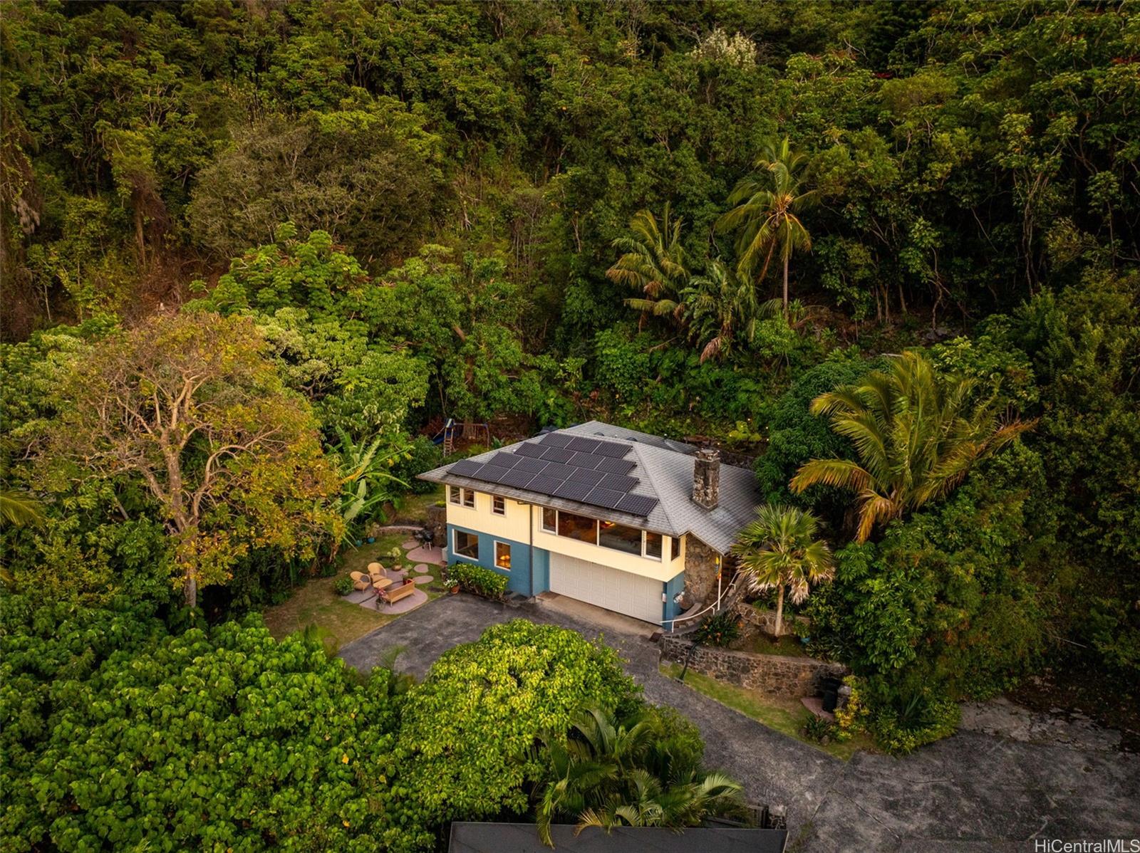 Experience the rare chance to own a private retreat that radiates the charm of old Hawaii, in beautiful Manoa. Situated on a sprawling 39,487 sq. ft. lot at the end of a private road, this exquisite 3-bed, 2-bath home offers peaceful seclusion while being just minutes from Manoa Market Place, University of Hawaii, Waikiki, & more. Thoughtfully upgraded & maintained, this home offers flexible living options, including a 3/1 upstairs with the potential for a 1/1 guest suite with a separate entrance downstairs. Enjoy panoramic mountain-to-Ala Moana views, 19 owned PV panels, tesla battery, EV charger, a remodeled kitchen with gas range/oven, & updated bathrooms. Original oak floors have been lovingly refinished, complemented by travertine, ceramic, & engineered wood in other areas. Restored details include double-hung windows, wooden screens, & mahogany stacking doors that open the dining area to a lush, outdoor lanai, blending indoor-outdoor living . The centerpiece lava rock fireplace adds warmth to the living and family room. Complete with an oversized garage w/ room for potentially up to three cars, this one-of-a-kind home is a must-see. Watch the video & schedule your tour today! Listing by: REMAX Hawaii (808) 330-6725