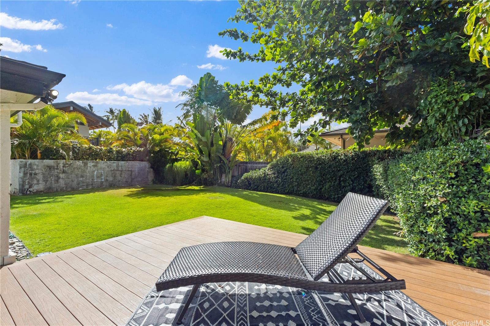 Enjoy 918 sq. ft. Lanai that invites seamless indoor-outdoor living, overlooking a large backyard filled with lush tropical landscaping for a tranquil Hawaiian retreat. Rinse off after the beach in your outdoor shower, host with ease thanks to extra guest parking, and relax in comfort with Mitsubishi split A/C units and PV panels for energy efficiency.