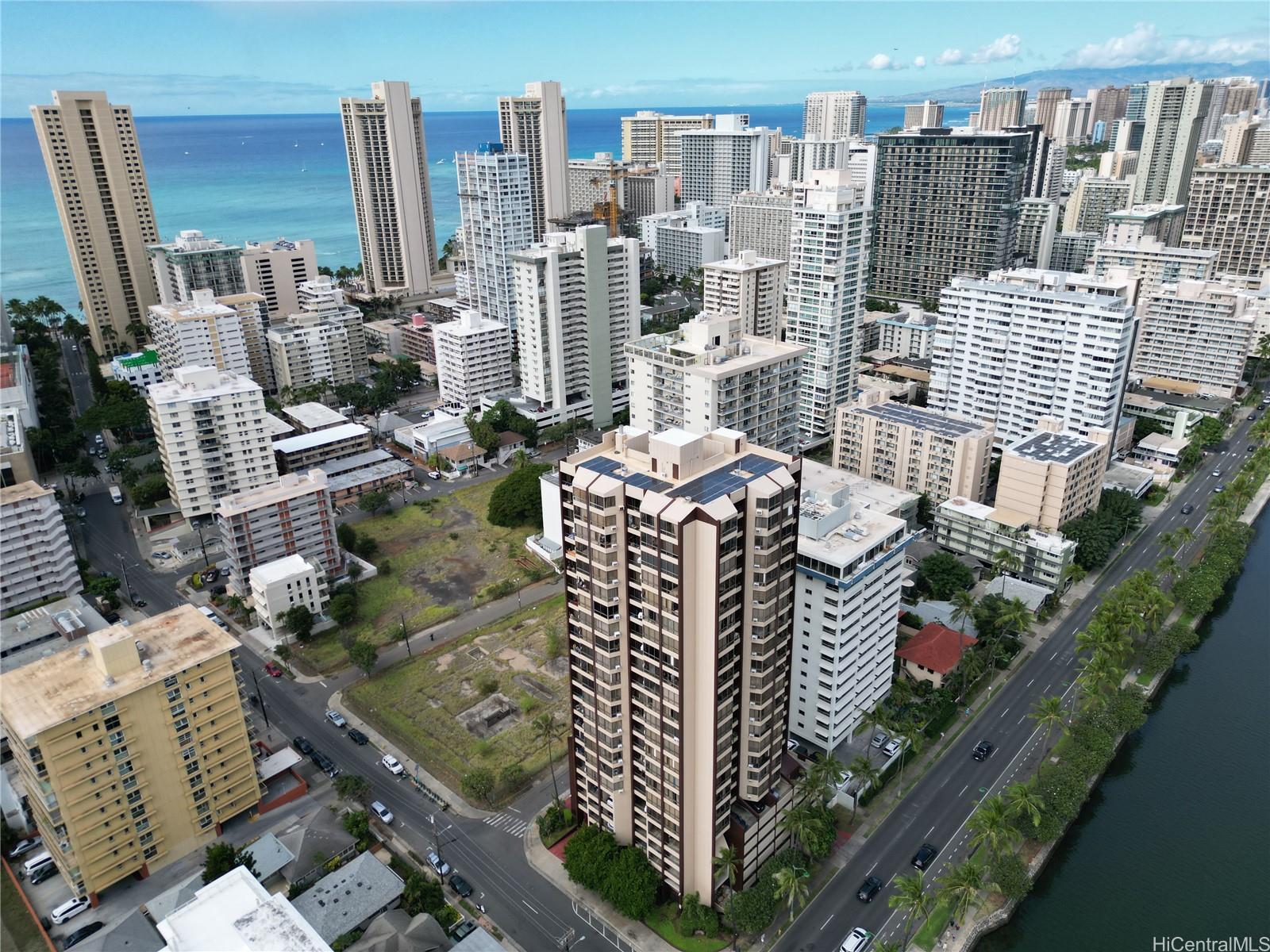 Tenant occupied. lease until 5/30/2026. Excellent investment property with the unobstructed view of Ala Wai golf course and canal and the mountains from the living room and the primary bedroom! Includes 2-bedroom, 1-bathroom, and 1-parking stalls. The building offers a swimming pool, a recreation area and BBQ as amenities. Gated parking and keyed entrance to the building and the elevator. Everything is within walking distance, from the beach to the shops and to the restaurants. Don't miss the opportunity to own a condo. 48 hrs notice to show. Listing by: HI Choice Realty (808) 545-4989