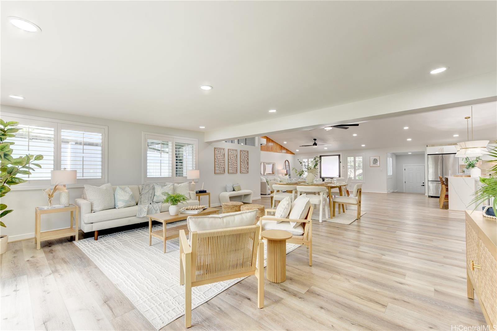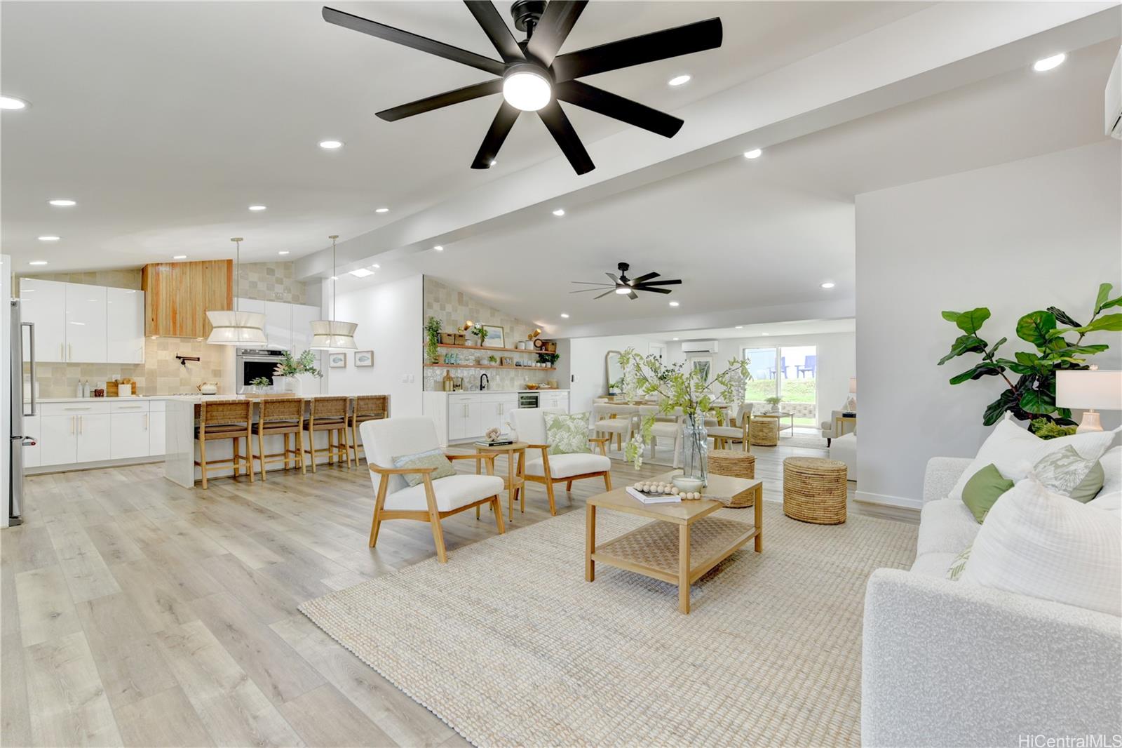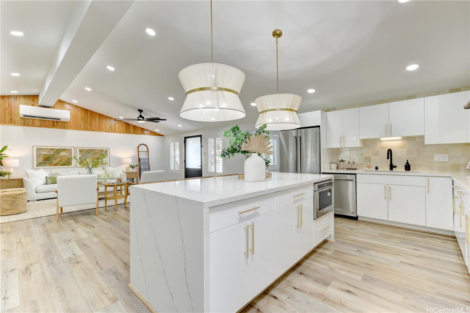 Fall in love with Kailua living in this beautiful home with luxury upgrades in the highly desirable Kalaheo Hillside neighborhood. The open floor plan and spacious layout with vaulted ceilings invite light and connection, seamlessly flowing into the living and dining areas creating the perfect gathering space. Appreciate the modern kitchen with quartz countertops, white cabinetry, and stainless steel appliances with luxury vinyl plank flooring and split AC throughout, providing both luxury living and comfort. The spacious yard invites outdoor gatherings also offering the potential for a legal ohana unit with included architectural plans. Perfectly situated for ocean lovers, this home is just minutes from Kailua Beach, Kaneohe Bay, and Kaneohe Yacht Club perfect for surfing, paddling, sailing, or simply enjoying the turquoise waters. The prime location offers everyday convenience with Aikahi Shopping Center, Kaneohe Marine Base, and quick access to H-3. This home enjoys access to schools including Aikahi Elementary, Kailua Intermediate, and Kalaheo High. Experience the best of island living where comfort, convenience, and coastal lifestyle come together in one exceptional home. Listing by: Coldwell Banker Realty (808) 738-3904