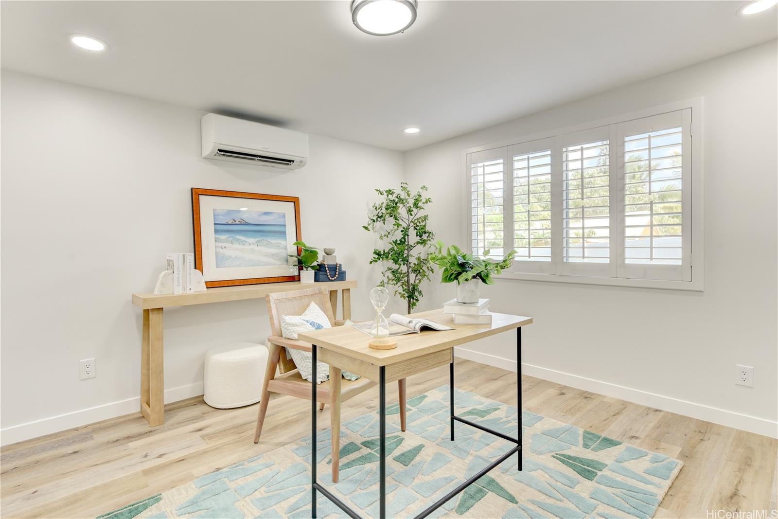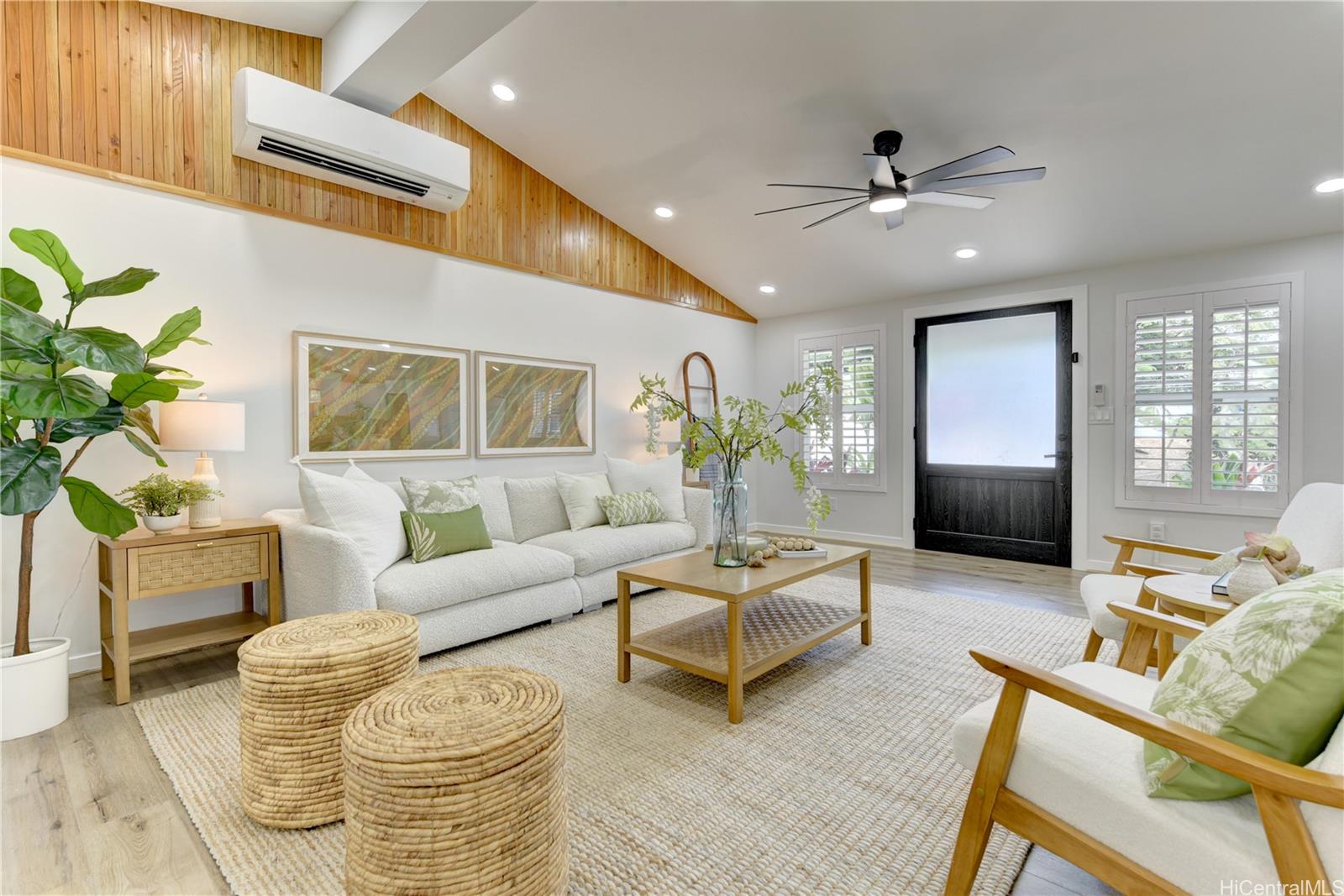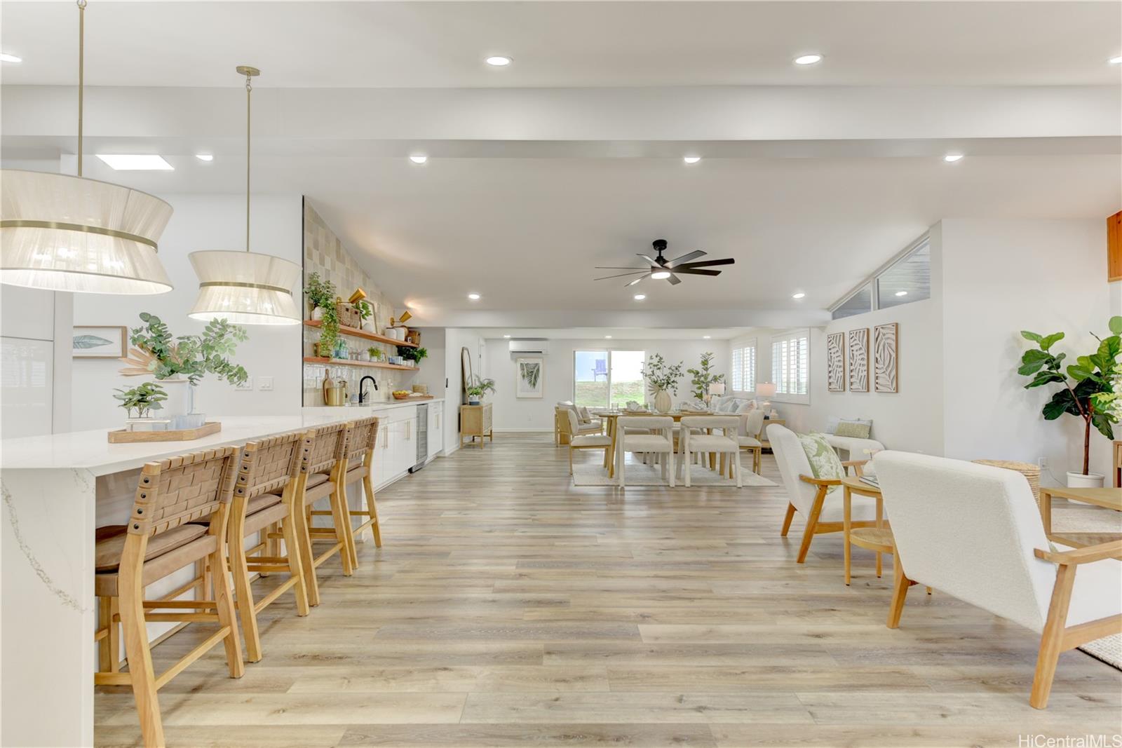 Fall in love with Kailua living in this beautiful home with luxury upgrades in the highly desirable Kalaheo Hillside neighborhood. The open floor plan and spacious layout with vaulted ceilings invite light and connection, seamlessly flowing into the living and dining areas creating the perfect gathering space. Appreciate the modern kitchen with quartz countertops, white cabinetry, and stainless steel appliances with luxury vinyl plank flooring and split AC throughout, providing both luxury living and comfort. The spacious yard invites outdoor gatherings also offering the potential for a legal ohana unit with included architectural plans. Perfectly situated for ocean lovers, this home is just minutes from Kailua Beach, Kaneohe Bay, and Kaneohe Yacht Club perfect for surfing, paddling, sailing, or simply enjoying the turquoise waters. The prime location offers everyday convenience with Aikahi Shopping Center, Kaneohe Marine Base, and quick access to H-3. This home enjoys access to schools including Aikahi Elementary, Kailua Intermediate, and Kalaheo High. Experience the best of island living where comfort, convenience, and coastal lifestyle come together in one exceptional home. Listing by: Coldwell Banker Realty (808) 738-3904