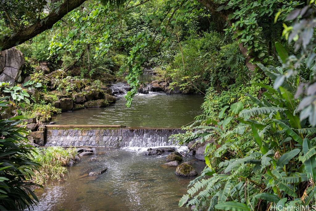 neighborhoods. Set just above Nuuanu Stream, the property enjoys the gentle sounds of cascading water and the