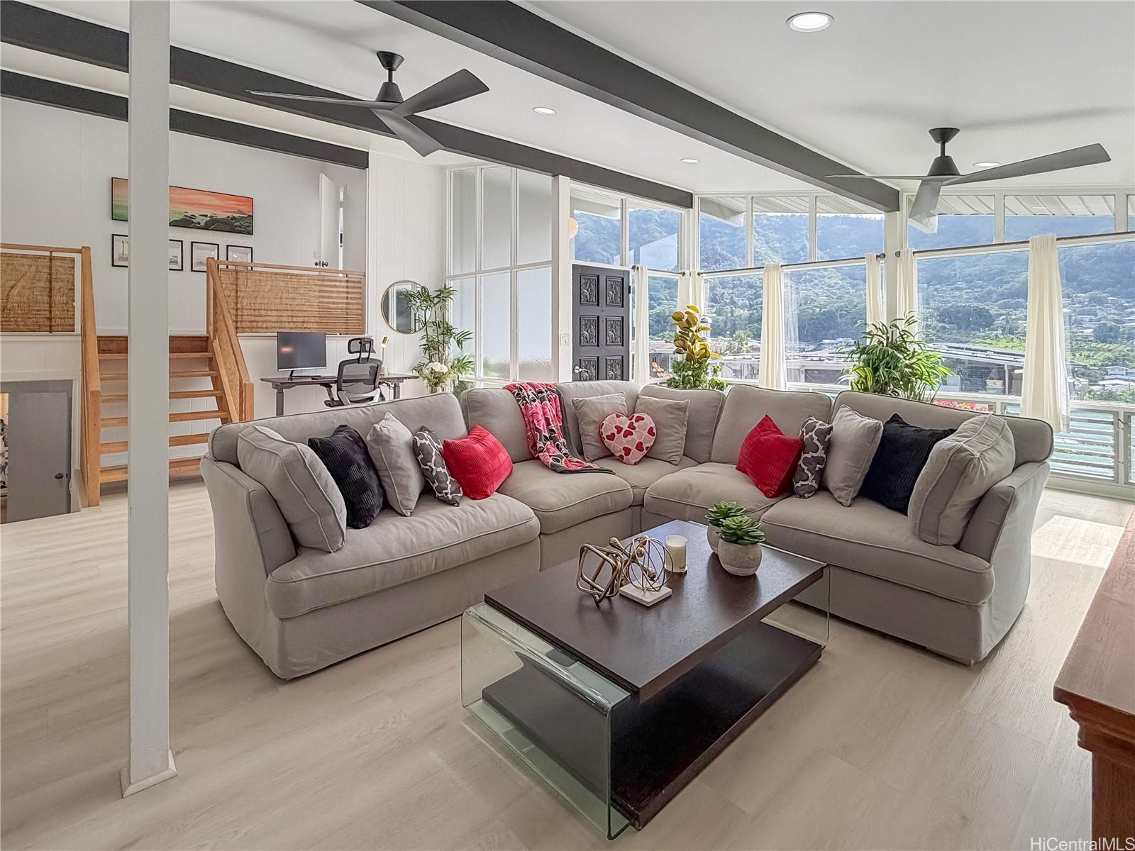 Beautifully renovated 4-bedroom, 2-bath split-level home in desirable Manoa featuring expansive windows, mountain views, and bright open-concept living. Fully remodeled in 2024, the main living area flows seamlessly to the dining space and a designer island kitchen featuring quartz countertops, GE Monogram appliances, and a professional-grade gas range. Ideal for everyday living and entertaining.