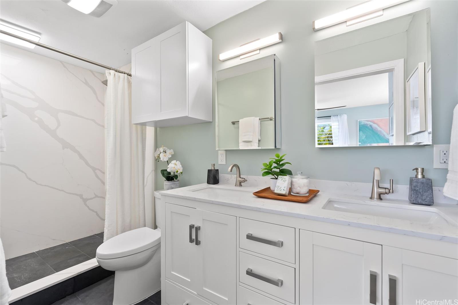 [0] => Beautifully remodeled in 2024, this coastal-chic Kailua home offers flexible living in one of Hawai‘i’s most desirable beach towns. Tucked on a quiet cul-de-sac, this breezy property features three separate living areas—perfect for multigenerational living, rental income potential, or a separate home office / home school / home gym. The second-floor main home includes a bright 3BD/2BA layout with sea-glass designer tones, while the ground level offers a stylish 2BD/1BA unit plus a spacious studio. Enjoy 6 bedrooms, 4.5 baths, two full laundries, an extraordinarily spacious garage, and a carport. Live in one space and rent the other two with ease. Just moments from windsurfing paradise Kailua Beach. One lot away from the world-famous Kawainui Marsh. This beautiful home embodies easy island living with room for everyone. Short walk to Kailua town with lots of beachy boutiques and popular dining options. Peace of mind with the fresh remodel and home warranty. Tenants on month to month leases.