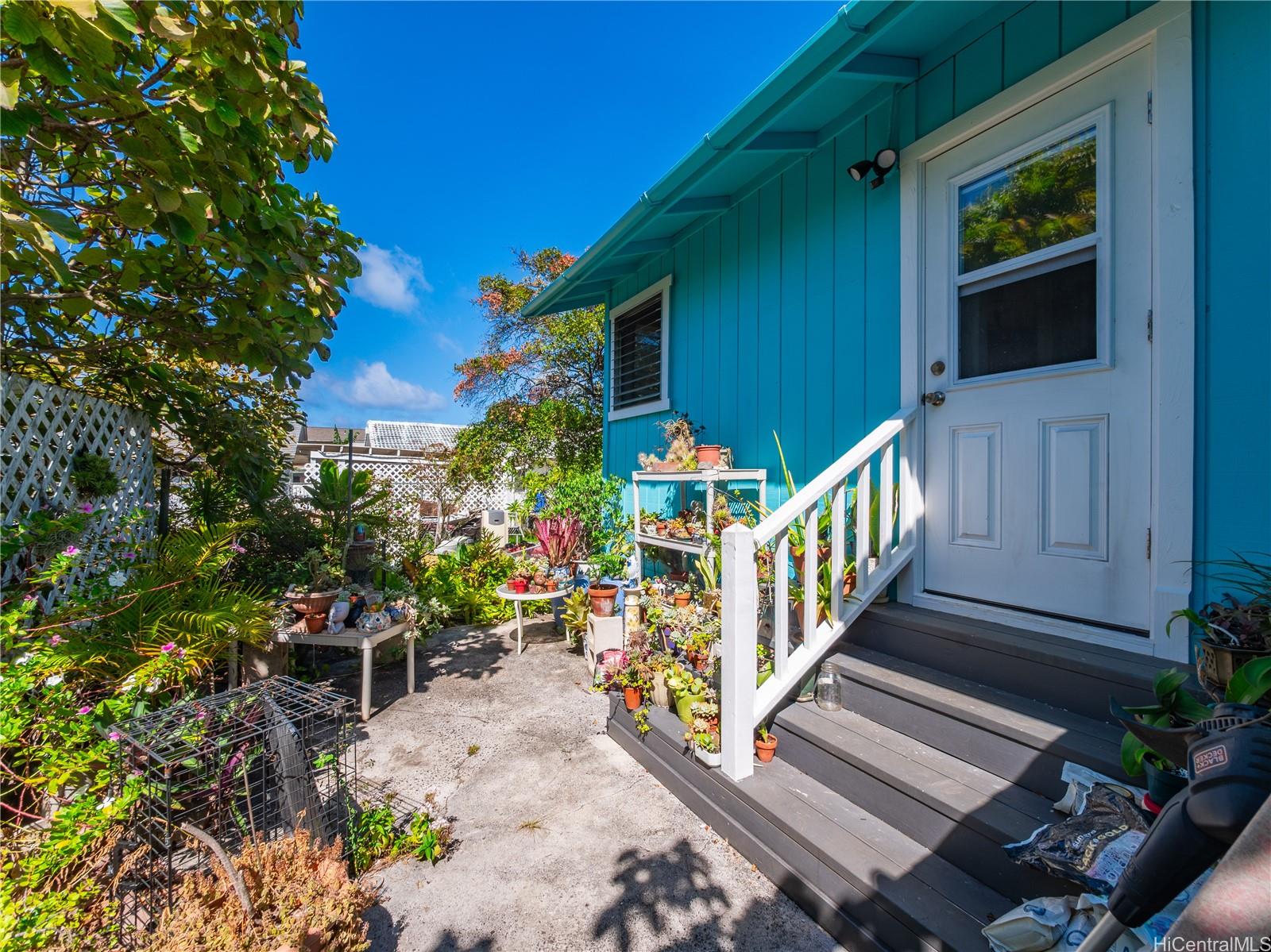 Kailua Fixer Upper in Coconut Grove with Desirable Large Lot at End of Lane! Massive Opportunity to Own a Hawaii Tropical Oasis with great proximity to the Beach & Kailua Town Cafe & Boutique Eateries & Shopping! Charming 2-bedroom, 1-bath single-family home is set back from the street & features a fully fenced yard, ideal for pets, gardening, or relaxing weekend BBQs. The open interior layout welcomes natural light and provides a great foundation for your personal updates & design creativity. Leased Solar PV adds energy efficiency. Surrounded by tropical plants & mature trees, the Vibes of this Home will be enjoyed with a kitchen & bath renovation or maybe a future extension.