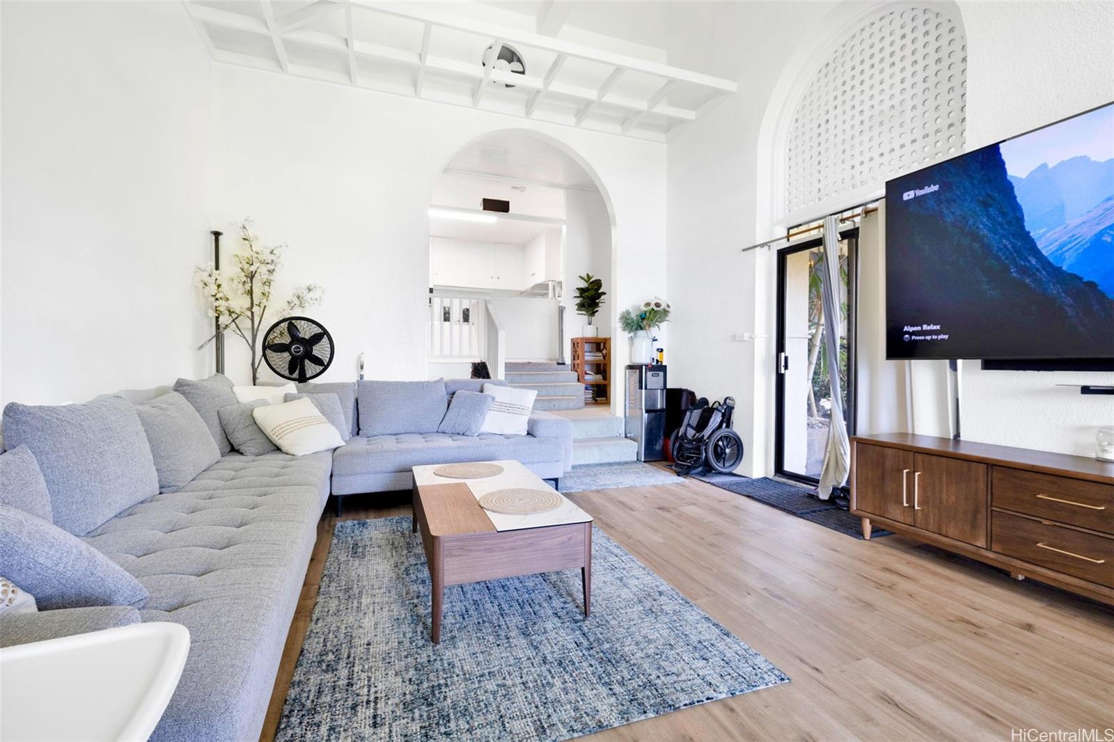 [0] => BREATHTAKING OCEAN VIEWS take center stage from the moment you step through the front doors of this elevated Spanish-style retreat at the base of world-renowned Diamond Head. Perched above neighboring homes, the property offers rare privacy, open sightlines, and the feeling of a private villa. Inside, graceful arched doorways, soaring ceilings, rich ohia wood floors, and beautiful carpentry reflect the home's timeless character. The layout features multiple living areas, a commercial-style kitchen with stainless steel counters, and three ocean-view bedroom suites with vintage bathrooms, and cedar-lined closets- offering a wonderful opportunity to update and personalize while honoring the home's original charm. Originally built by the Magoon family as a gathering space, the lower level includes two one-bedroom units and a studio, each with separate entrances and access to a shared laundry area. These spaces open to a lush, enclosed garden with fruiting trees and greenery, adding flexibility, income potential, a serene outdoor setting in one of Honolulu's most iconic locations.