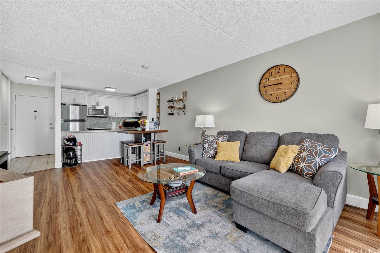 [0] => ***VA Assumable Rate @ 3.00%*** Experience resort-style living high above Waikiki in this beautifully upgraded 1-bedroom condo at Villa on Eaton Square. Perched on the preferred side of the building, this high-floor unit captures panoramic ocean, Diamond Head, city, and mountain views from your private lanai. Inside, enjoy a freshly remodeled bathroom, new flooring, and crisp new paint throughout. The open-concept kitchen flows seamlessly into the living area, maximizing space and light. This pet-friendly, secure condominium offers all-inclusive utilities included in the HOA fee, simplifying ownership and enhancing value. The rooftop amenities rival any resort: a heated pool, fitness center, sauna, BBQ area, yoga studio, recreation lounge, and library, all surrounded by 360° island views. Perfectly located just moments from Ala Moana Center, Hilton Lagoon, beaches, parks, restaurants, and world-class shopping, this home embodies the best of Waikiki living.