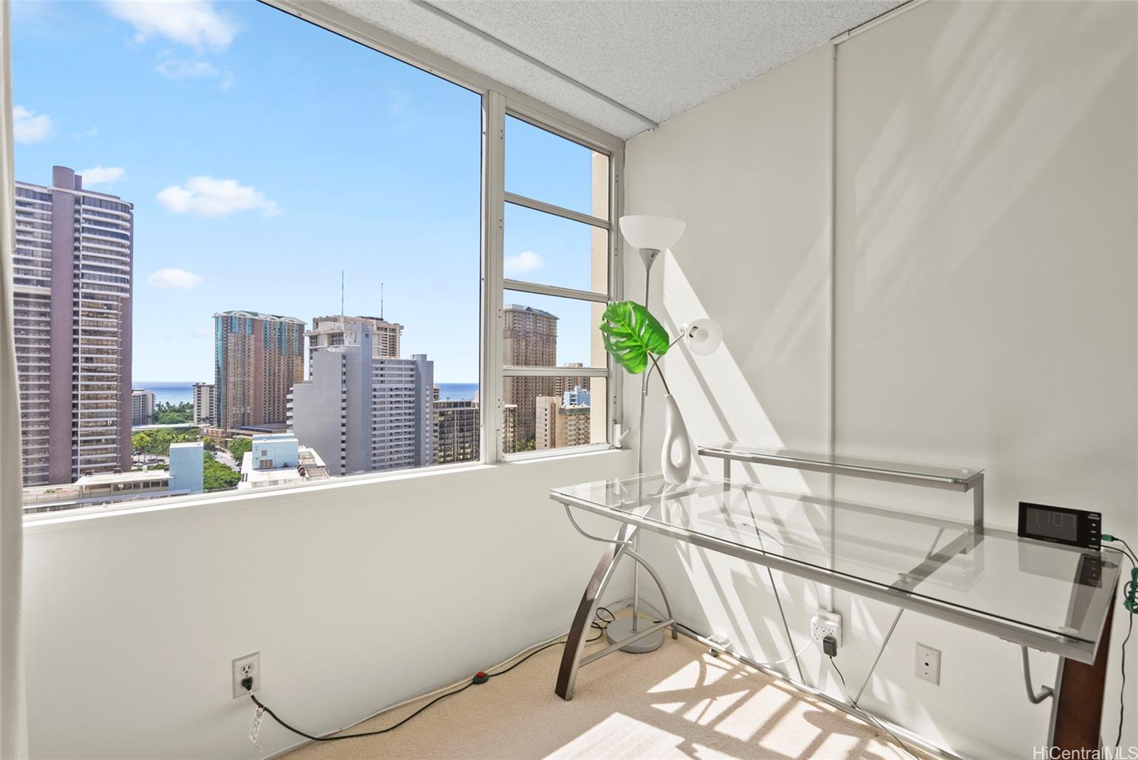 [0] => Beautiful 1-bedroom, 1-bath, 1-parking unit in a highly desired building w/stunning OCEAN mountain, and DIAMOND HEAD views. This EAST-FACING unit is on the COOLER, preferred side of the building, where you can enjoy gentle morning sunlight on your LARGE lanai. One of the few buildings in Waikiki with ROOFTOP AMENITIES —including a pool, fitness center, BBQ area, recreation space, yoga studio, and 360° island views. Don’t miss this incredible opportunity to LIVE, LOVE, Waikiki!