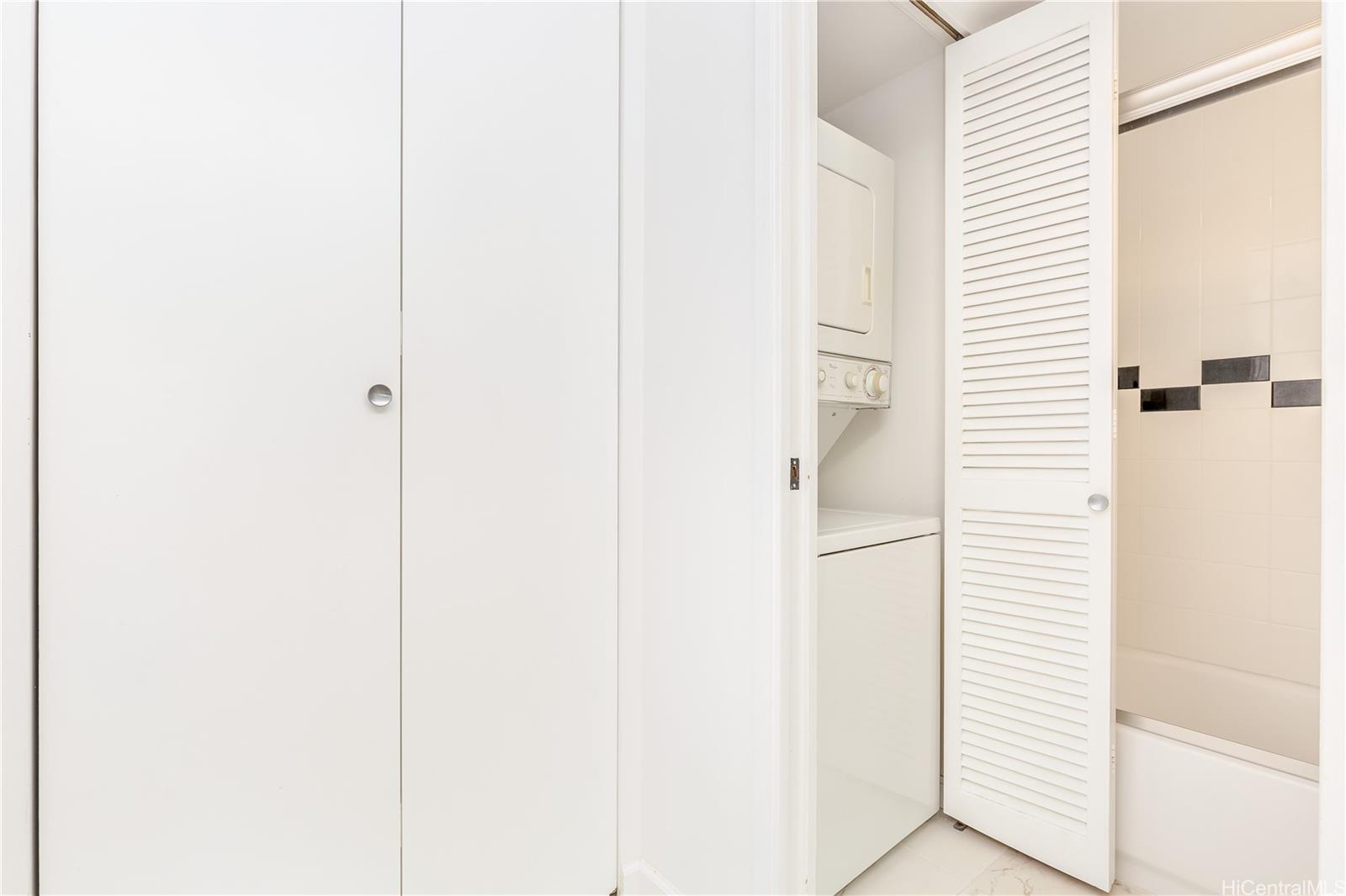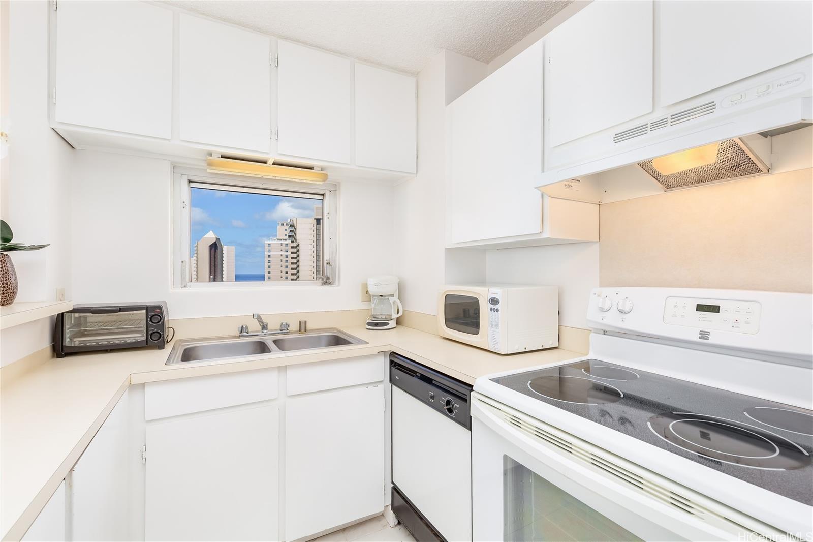 There are a washer and dryer in the bathroom, and one unassigned parking stall and assigned storage. The rooftop has a pool with views from Waikiki to Ala Moana, a gym, a yoga room, and a common BBQ area. The commercial space on the first floor of the building includes a Supermarket, Rice ball Shop, Mexican cuisine, and Japanese cake shop "KuluKulu", the second floor there are Beauty Salon, Post Office, etc., making it very convenient. Special Assessment will be end in Dec. 2024."