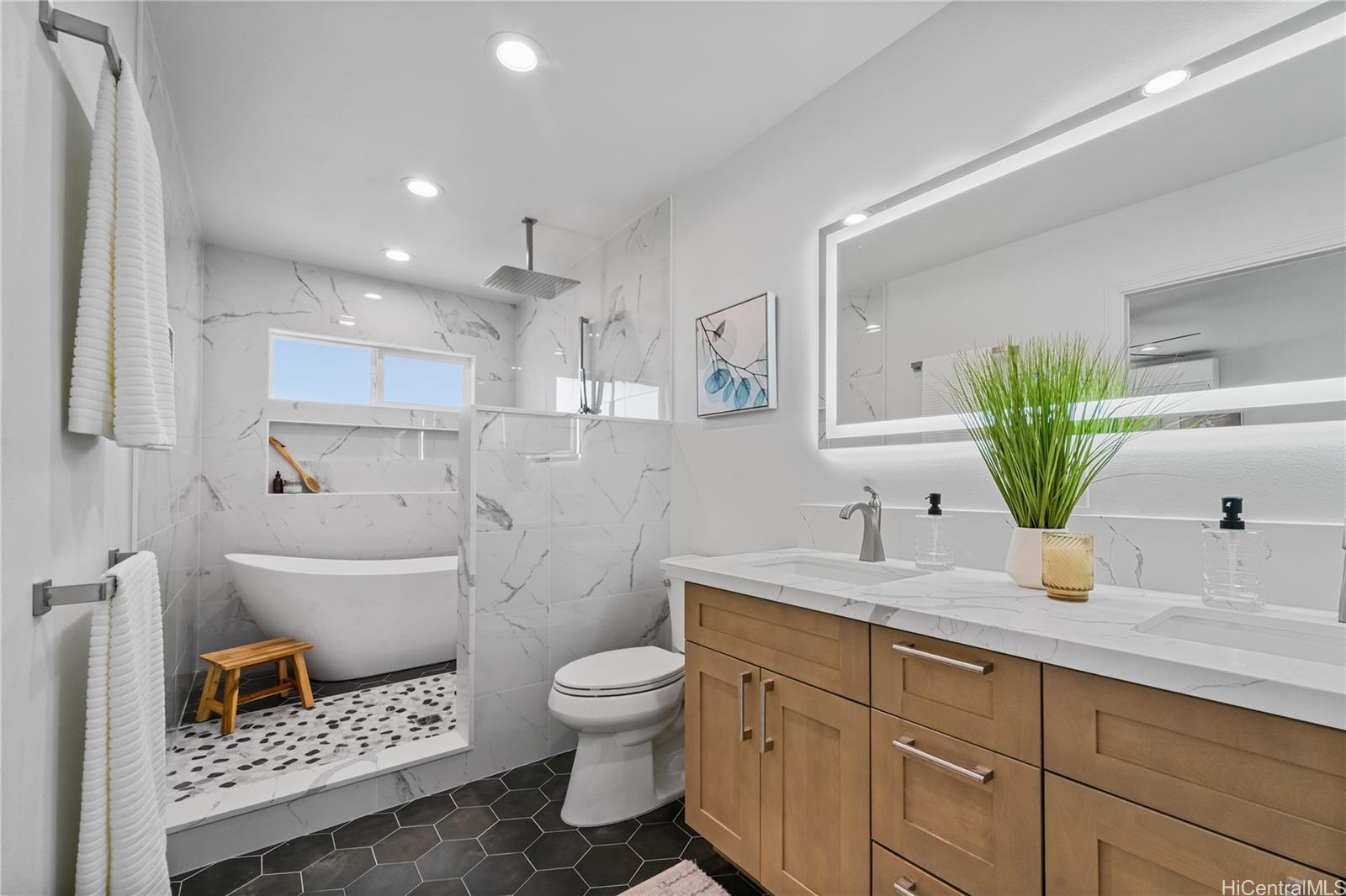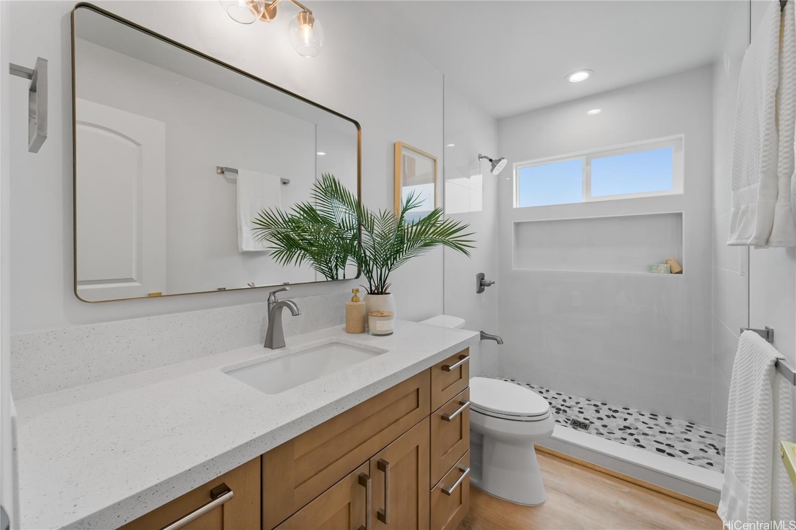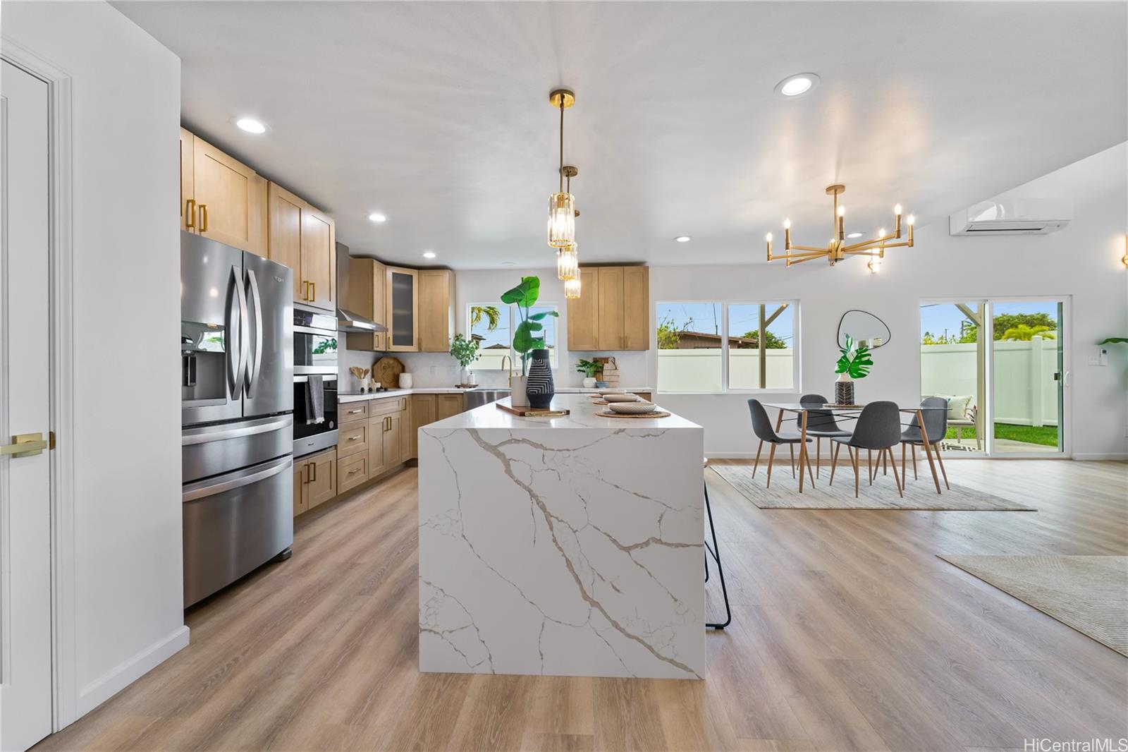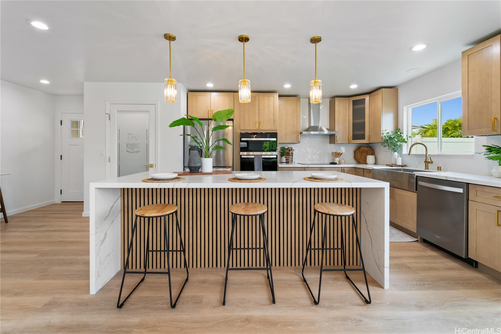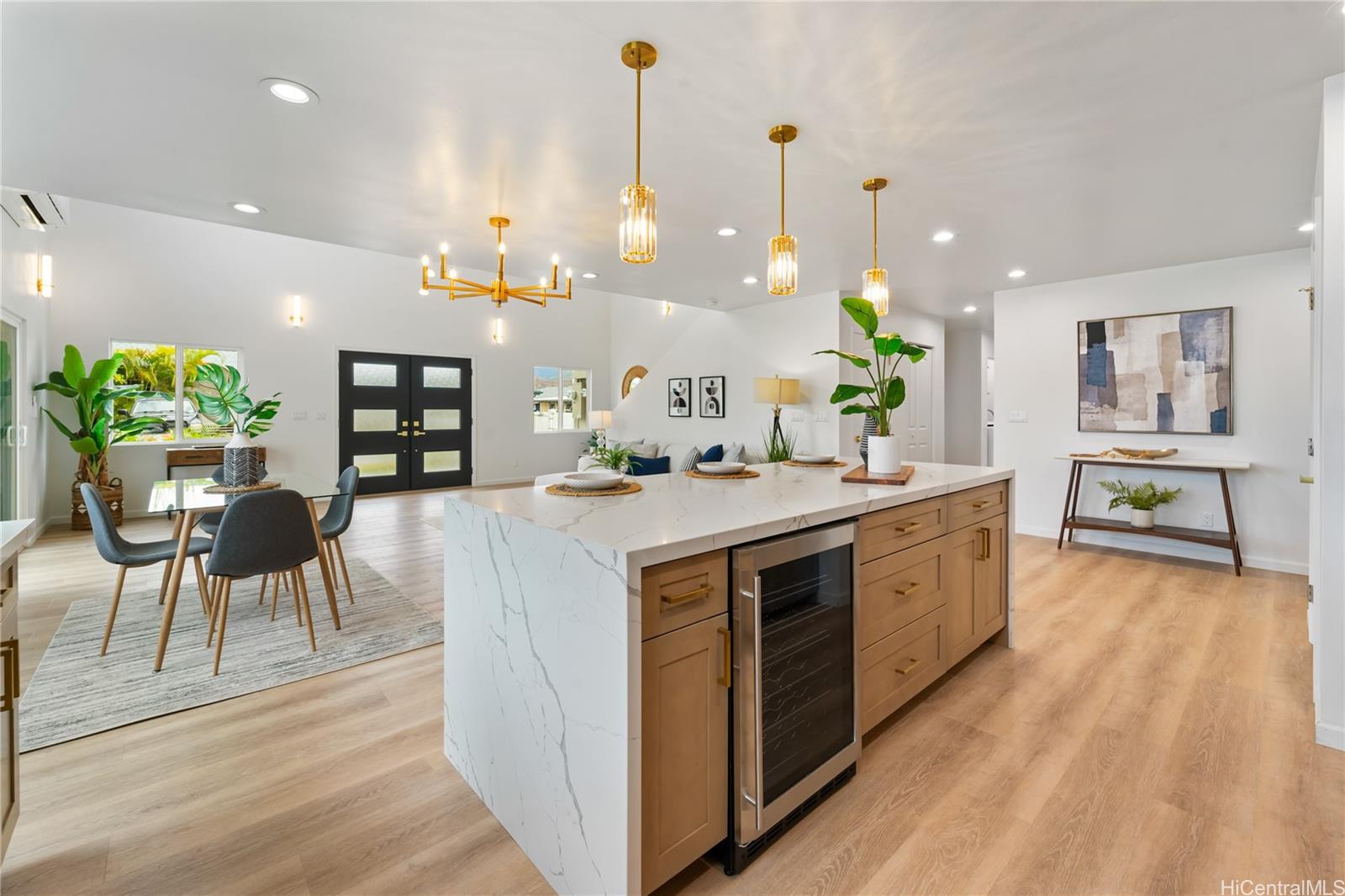 BRAND NEW CONSTRUCTION WITH ADU, a few blocks to Kalama Beach Park. Opportunity to live in a brand new home, high quality construction with lovely finishes throughout. This expansive floor plan offers many possibilities and is ideal for multi-generational living and rental income potential. This beautiful brand new build boasts a total of 6 beds/4 baths, a wetbar, 2 kitchens, 2 laundry facilities and 2 separate electric meters. Other features include shaker cabinets, quartz countertops, stainless steel appliances, wine fridge, pantry, split AC, LVP flooring, solar water heater, sprinkler system and 220 outlet for your electric car. Main living room with high ceiling and sliding door opens out to a trellis with yard where you can spend time with family and friends, great for barbeque and entertainment. Enclosed 3 car garage with extra parking. Minutes away to Target, Whole Foods, Buzz’s steak house, Kalapawai Market, schools, parks, golf course, eateries and shops. Easy access to H-3, Likelike & Pali Hwy. Listing by: MG Hawaii Realty, LLC (808) 489-5227
