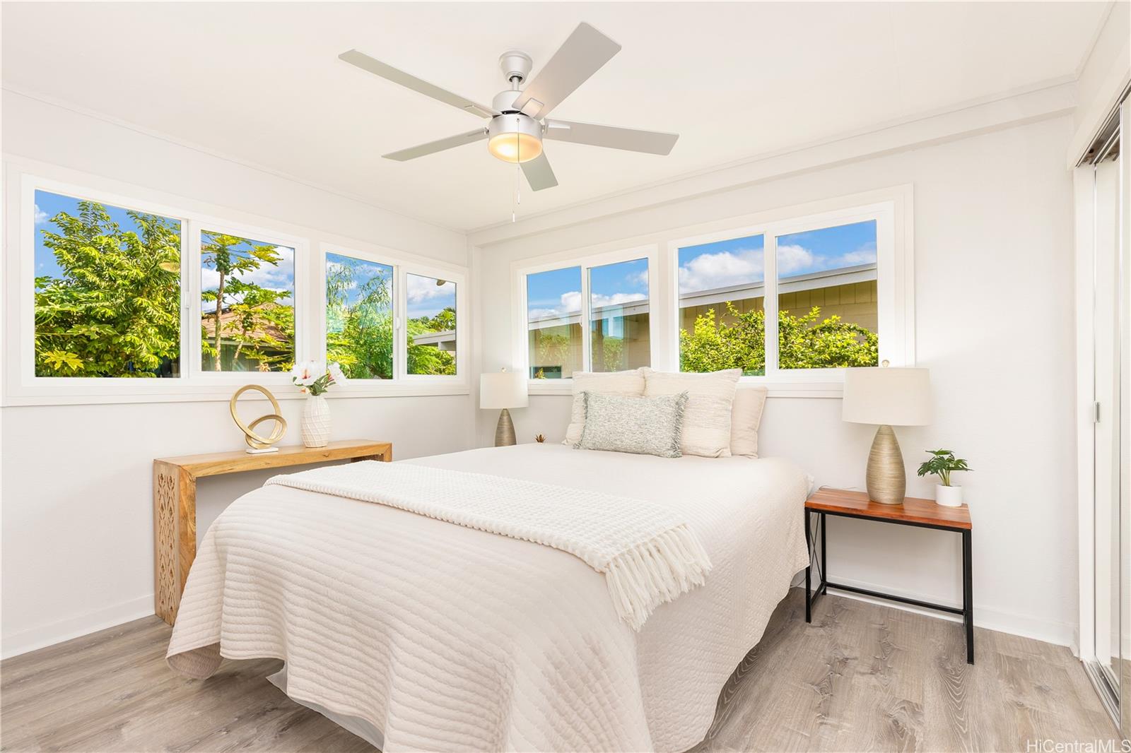 Welcome Home! Superb location in the heart of Kailua’s iconic Coconut Grove community offering unparalleled convenience to Kailua Town, excellent school district and world class Kailua Beach nearby. Extensive renovations with tasteful upgrades just completed. All new kitchen cabinets, quartz countertops, appliances, bathroom, windows, vinyl plank flooring, interior/exterior paint. Property survey, Tent Fumigation and Sentricon baiting system fulfilled recently.