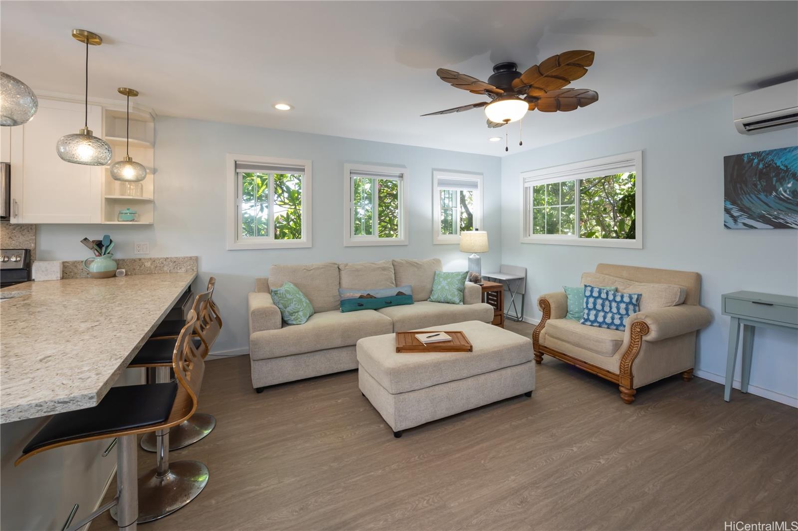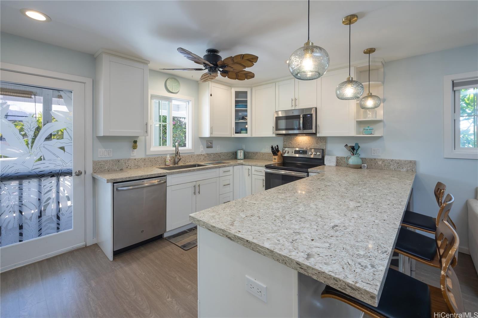 [0] => Experience the Best of Kailua Living in this beautifully upgraded 4-bed/3.5 bath home featuring a legal ADU on a large, custom landscaped lot. Designed for comfort and functionality, this property offers stylish high-end finishes, an open layout, & seamless indoor-outdoor flow. The main house welcomes you with 3 bed/2.5 bath & cooling trade winds perfect for enjoying the island lifestyle. The chef’s kitchen is a true delight, perfect for entertaining or everyday living. It boasts KraftMaid cabinets, double-wall oven & granite counters. Retreat to the primary suite with its soothing bathroom and walk-in California Closet. The custom-designed legal ADU was thoughtfully crafted with meticulous detail to provide long-term comfort and independence for the owner’s parent. The huge outdoor lanai extends this living space & is ideal for extended family, guests, or rental income. Energy efficiency abounds w/ 38 owned PV panels, 2 storage batteries and 2 solar water heaters. Add'l features include a laundry room, split AC’s, workshop, cvrd parking for a boat, outdoor shower & a fully fenced yard w/ an automatic gate for privacy. Wonderful location just min. from world-famous Kailua Beach!