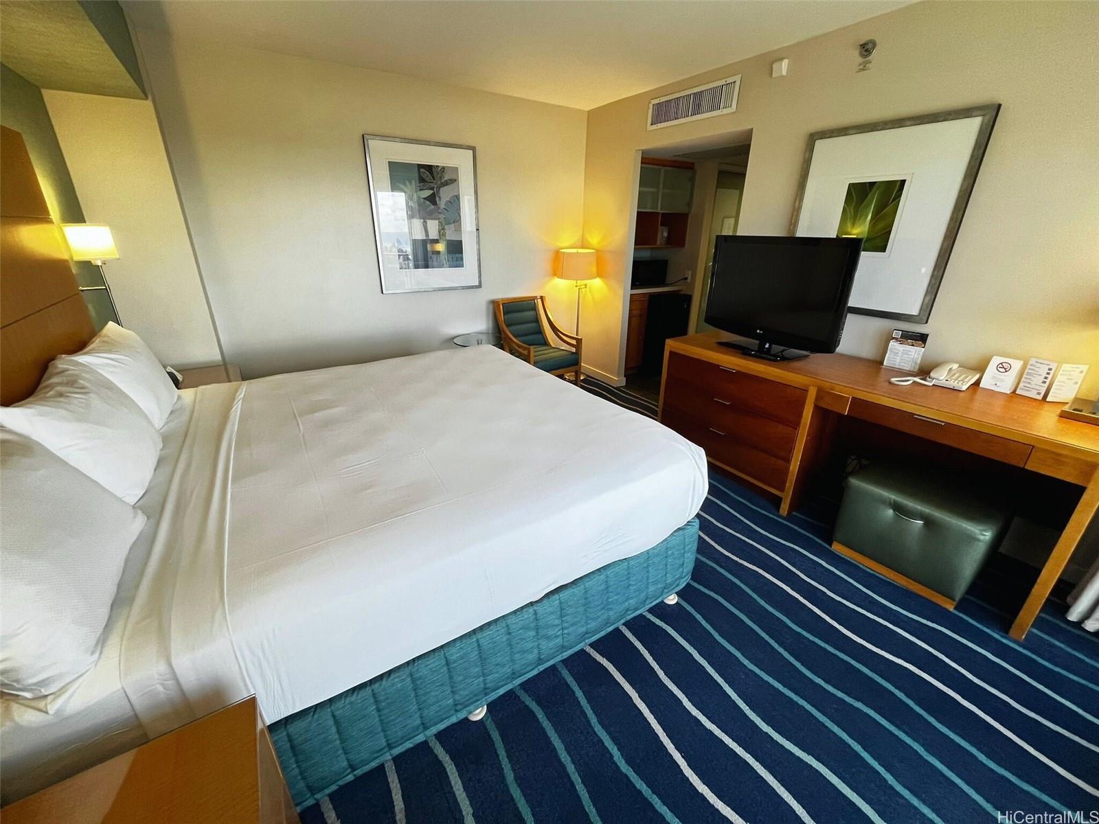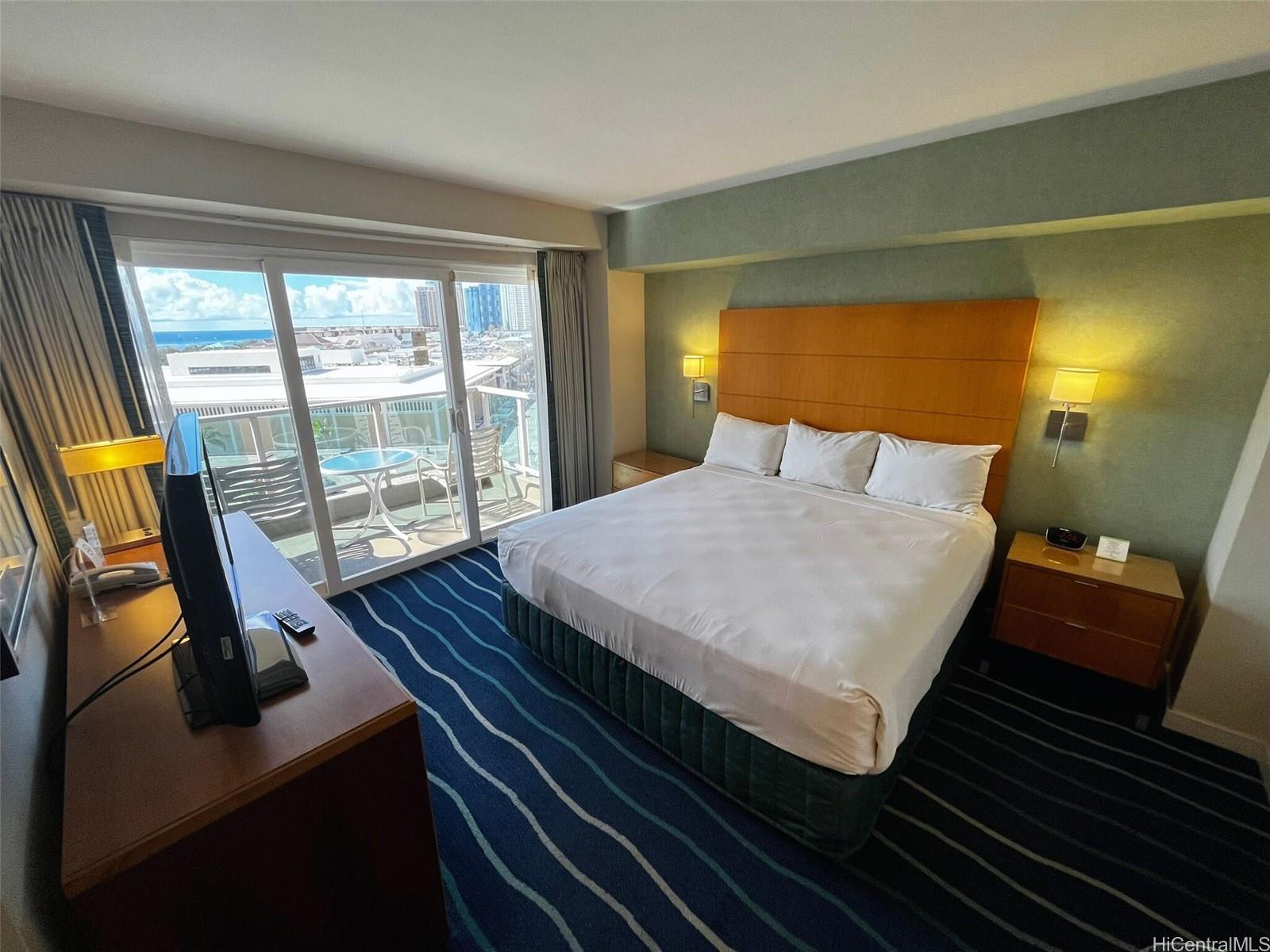 [0] => Waikiki Tower, Diamond Head side. This popular island-style hotel-condo offers an unbeatable location with easy access to Ala Moana Center, just steps from Ala Moana Beach Park, the Hawaii Convention Center, and an array of shopping, dining, and entertainment options in both Waikiki and the Ward area. The property features an array of hotel amenities, including a concierge, activities center, meeting rooms, pool, gym, and valet service. Owners benefit from the hotel program, offering great flexibility and perks for travelers, making it an excellent investment for those seeking both convenience and income potential. The room renovation scheduled for this unit has been completed.