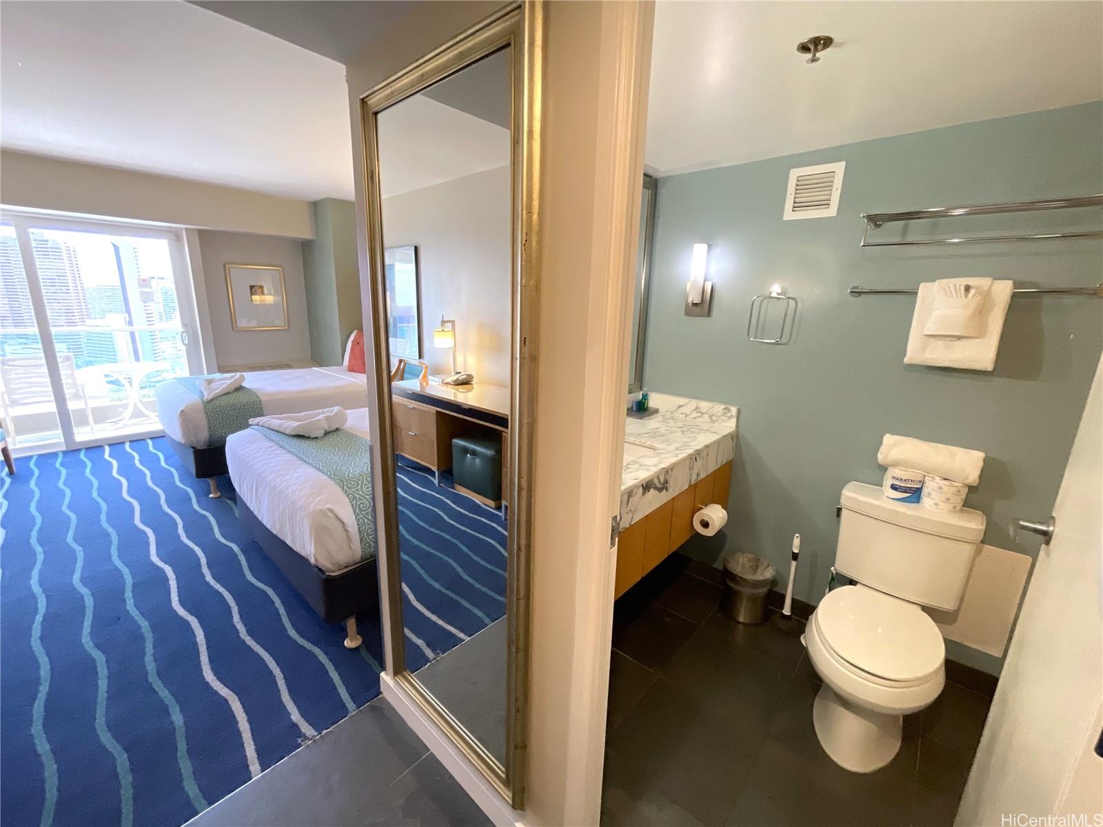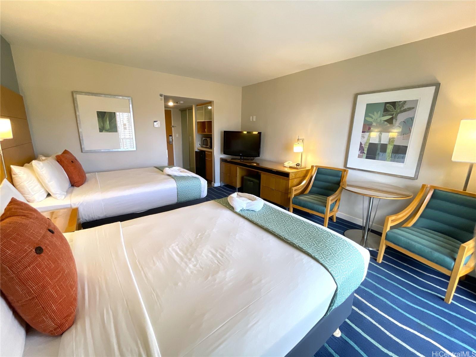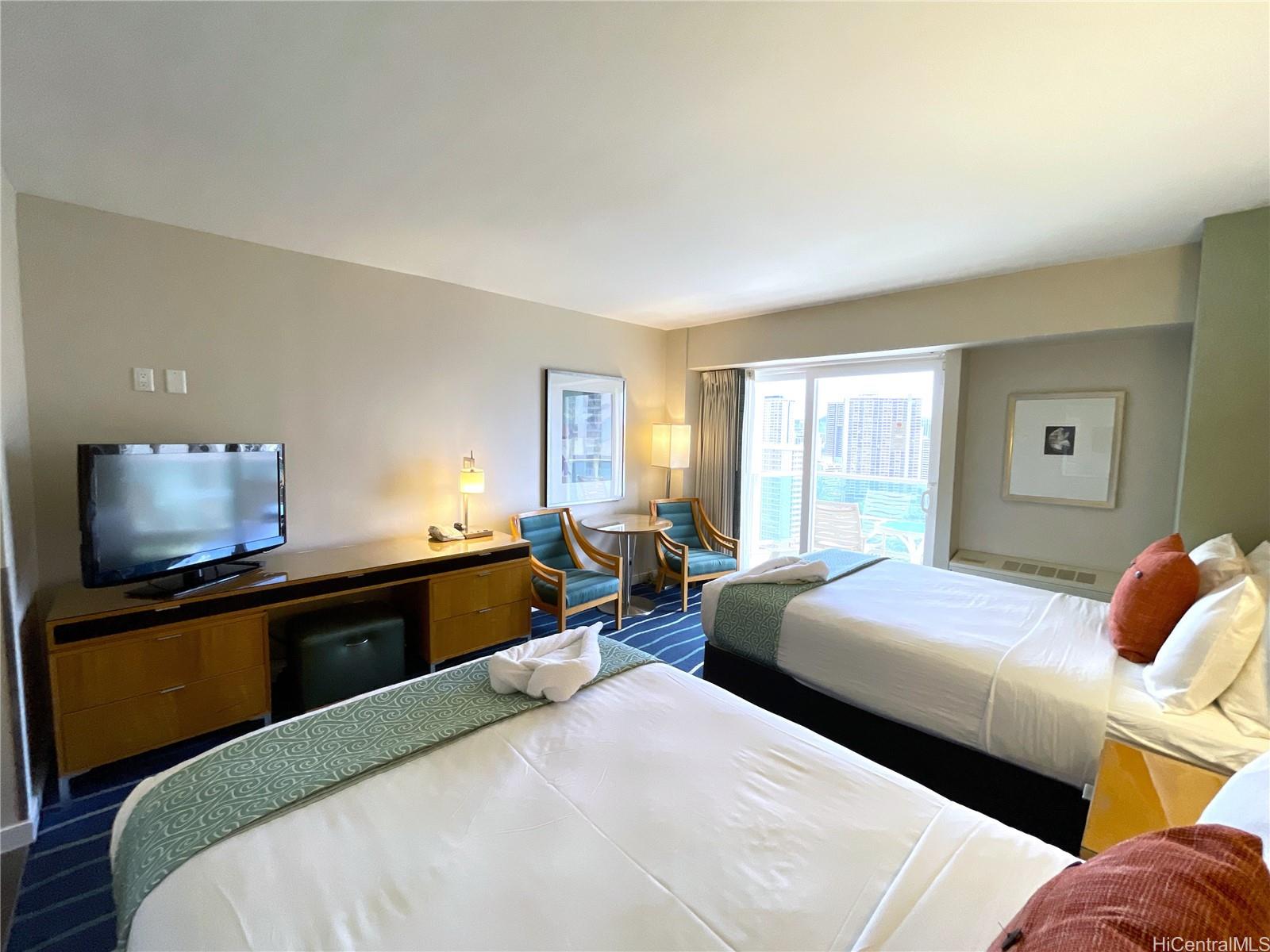 This high-floor modern studio offers 345 SQF of luxury living with an ocean view. Enjoy world-class hotel amenities, ensuring every comfort is met. Centrally located near the beach and Ala Moana mall, indulge in shopping, dining, and entertainment within walking distance. With its vacation rental potential, you can earn income when not enjoying the island life yourself. Plus, Ala Moana Hotel allows outside management companies, to maximize income and minimize hassle. Don't miss this opportunity to own a slice of paradise that's both lucrative and luxurious! Please first check out the virtual tour. Prearranged and prepaid renovation finished in May - a bonus for any new buyer. Listing by: Damon HI Pac Intl Prop LLC (808) 358-2331
