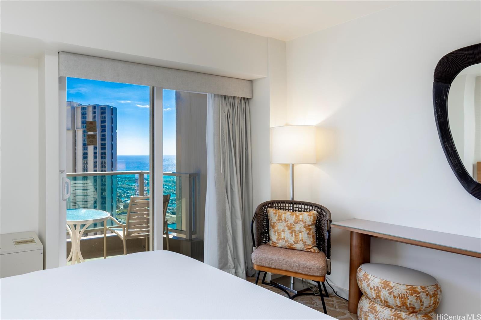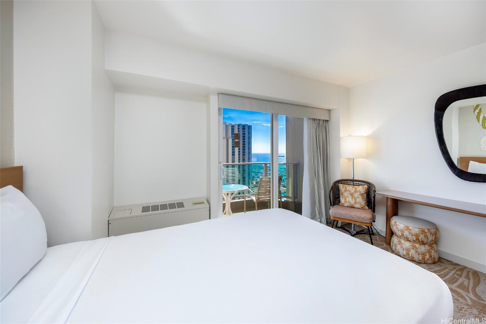 Discover panoramic Pacific Ocean, Magic Island, Ala Wai Harbor, and Honolulu city views from this residence in Ala Moana Hotel. This 27th-floor unit has just received a hotel renovation package with new carpet, wallpaper, paint, furniture, drapes, lighting, and more. Inside, a bright island-modern design studio + 1 bath residence welcomes you with partial Pacific Ocean views from your residence, as well as stunning Pacific Ocean panoramas from your private lanai. Unit renovation completed in 2025, with the pool, amenity deck, exercise room, & lobby renovation finished in 2020. Ala Moana Hotel & Condominium sits in the heart of Honolulu, attached to Ala Moana Center, the world's largest outdoor shopping mall, and directly across the street from Ala Moana Beach Park. Starbucks, Signature Steakhouse, Pint + Jigger, & more on property, with many shops, entertainment, casual & fine dining options nearby. This well-established icon is sought out by vacationers and business travelers. Inquire for investment performance. Listing by: Sachi HI Pacific Century Prop. (808) 596-8801