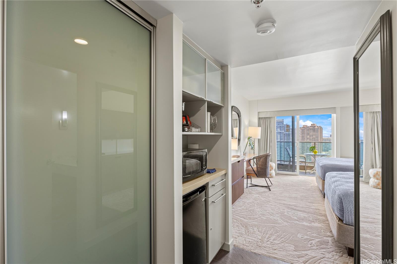 Own a piece of paradise with Unit 3024 at the iconic Ala Moana Hotel Condo, 410 Atkinson Drive, Honolulu, HI 96814. This legal short-term rental studio, perched on the 30th floor of the Waikiki Tower, boasts breathtaking ocean views and underwent a full renovation in March 2025, featuring sleek modern finishes. This unit was renovated in March 2025. Resort style living, this turnkey unit includes a kitchenette with fridge and microwave, perfect for investors or vacation home seekers. Enjoy world-class amenities: a revamped pool, fitness center, sauna, concierge, and dining options like Signature Steakhouse and Starbucks. Steps from Ala Moana Center, Ala Moana Beach Park, Waikiki, and Kakaako, this prime location ensures high occupancy. Buyers can join the hotel rental pool, hire a property manager, or self-manage for maximum flexibility, with up to 90 days of personal use annually. Recent hotel upgrades include a modernized lobby and pool deck (2020). Maintenance fees cover water, sewer, and common expenses. Contact for rental performance details and seize this opportunity in Honolulu’s premier condo hotel! Listing by: Central Pacific Properties Inc (808) 721-8098