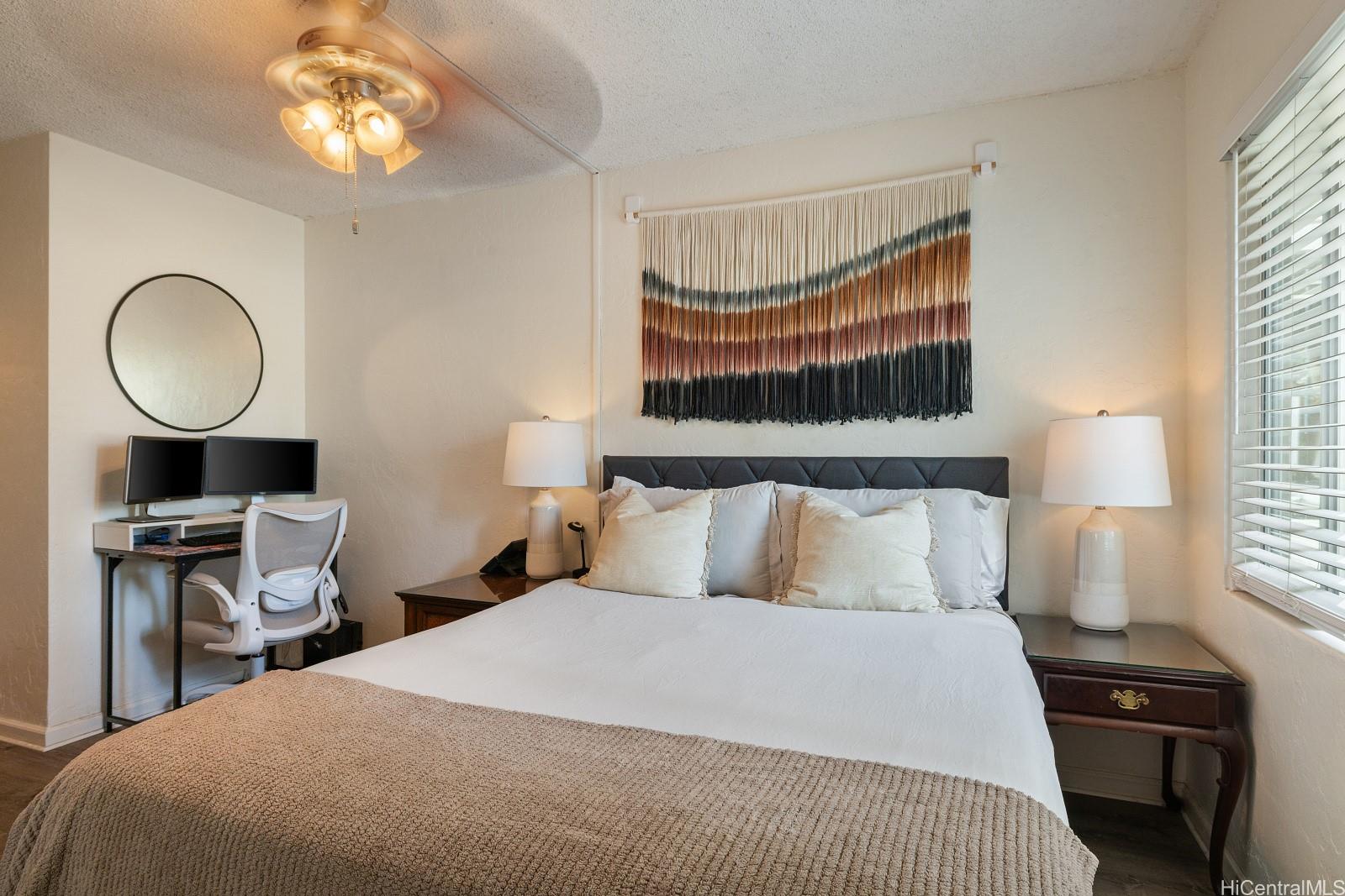 Own your slice of paradise with this renovated 1 bedroom, 1 bathroom leasehold condo in the heart of Waikiki! 411 Kaiolu is a hidden gem, and it's pet friendly! Oven and glass cooktop, LVP flooring, fresh paint throughout, and blinds in each room done in Aug 2023. The unit also has a split AC, ceiling fans, good closet space, and it's an end unit with lots of light! Unit comes furnished. Enjoy the sunny pool and community laundry. This is a boutique building in Waikiki but on a less busy side street, it's convenient to walk to Waikiki beaches, shops, restaurants, and many bus lines. The long land lease allows for a 15- or 20-year mortgage. May be possible to rent parking nearby. Request at least 48 hours' notice for showings due to tenants. Listing by: 20 Degrees North Real Estate (808) 227-8030