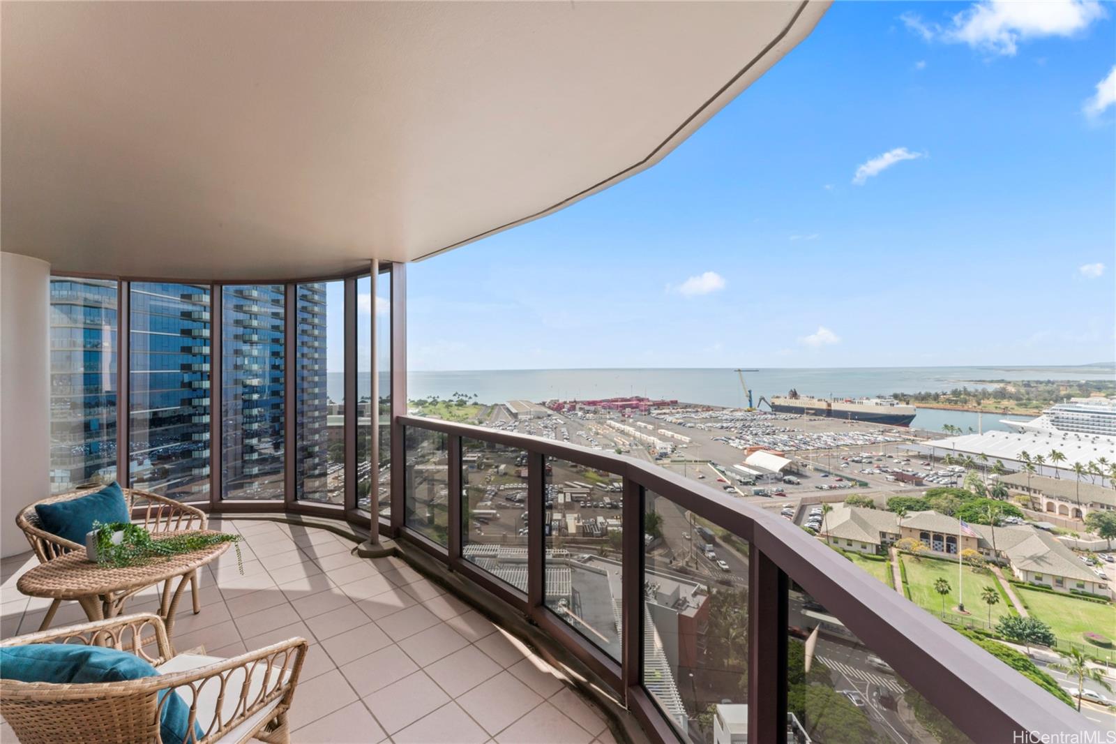 Sweeping ocean, mountain and city views from this 24th floor unit. Gorgeous, cool stone flooring throughout. This is your opportunity to live in the heart of Kakaako at a well established building. Restaurants, grocery stores, coffee shops, gyms, salons, and boutique shopping just outside your door!