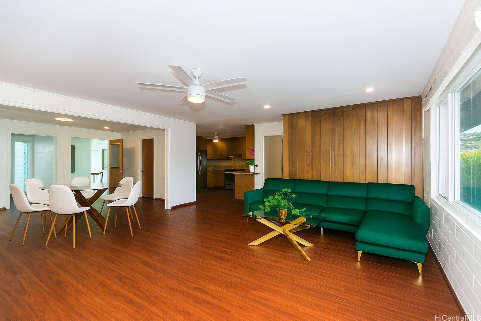 Move into your all level, modern, forever home. A solid, concrete-built investment for savvy investors to enjoy Kahala's shopping, dining, and beautiful beaches and parks. Your exclusive private patio with skylights protects you from sun/rain. Use the patio as your private home gym, outdoor dining room, hot tub spa, or massage/yoga therapy studio... the options are unlimited! The easy-care stone garden with real grass lawn and mature trees welcome you home to a lush landscape. The useful access ramp is perfect for groceries/strollers/wheelchairs. Close to Kahala Mall & Theater, Whole Foods, restaurants, gyms, tennis and pickleball courts, hiking/running trails, and farmer's markets/fine dining at KCC. $5K credit available for painting the home in your favorite color. Remodeled windows, chef's kitchen, dining room, and bathrooms. Huge, accessible shower in Primary bathroom. Private, split ACs in every bedroom. All-new kitchen appliances, water heater, and interior flooring. 2 car garage with 3rd parking/car-wash stall. So much street/lot parking for hosting family/friends. Staging furniture, home gym, home theater system, massage chair, and hot tub are negotiable. Enhanced photos. Listing by: Hawaii Golden Realty (808) 282-0250