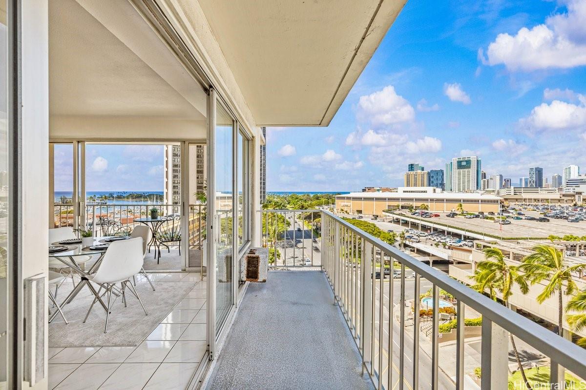 Ocean View. Great Location-Across Ala Moana Shopping Center and steps to the Beach. 900 sq ft interior. 239 sq ft
