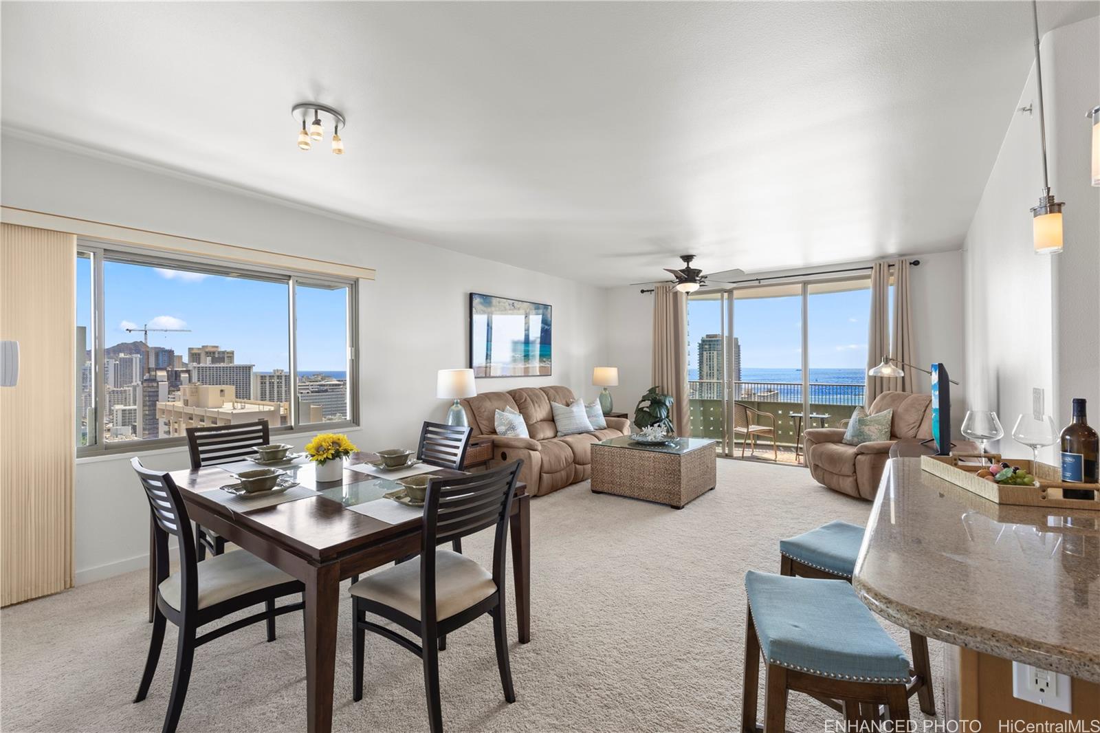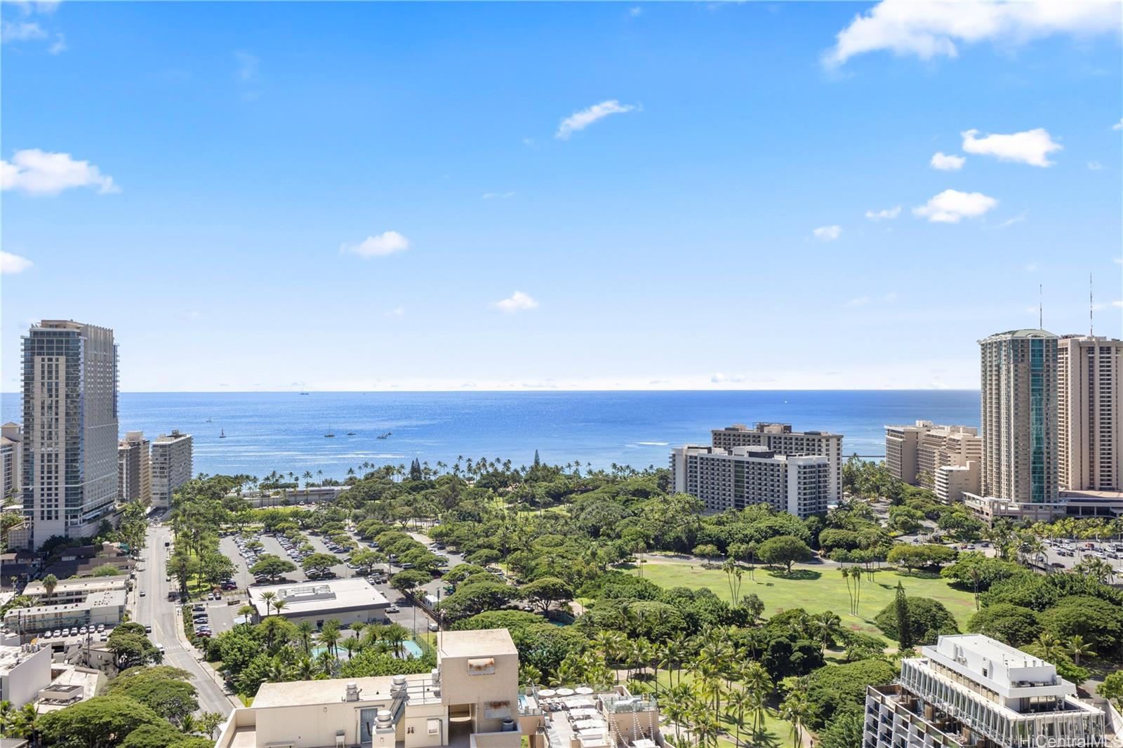 Beautiful views of ocean and mountain from this high floor freshly painted corner unit. Relax on the large lanai and enjoy the views. Luxury condo offers paradise living. Enjoy the amenities - swim and BBQ with family and friends. 24-hour security. Lanikea is conveniently located at the entrance of Waikiki and has only four units per floor. There are some staging items, but the large furniture's are negotiable. Listing by: ILC & Swell Realty LLC (808) 951-4177