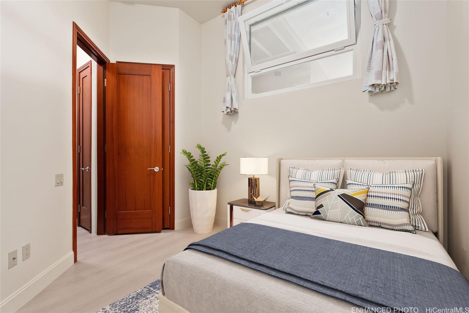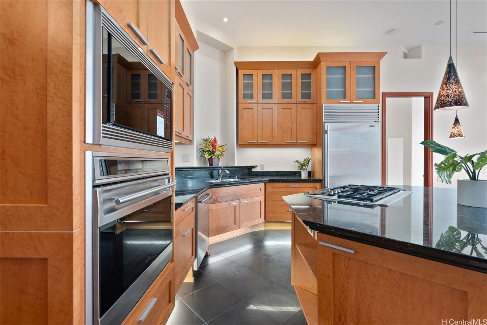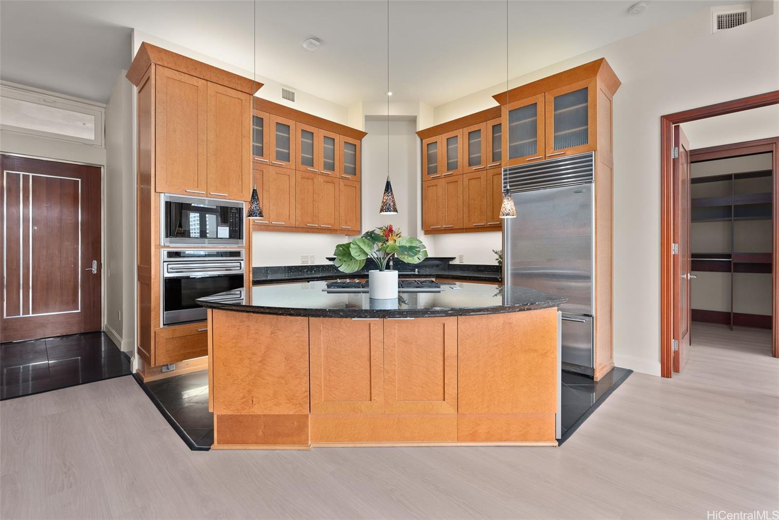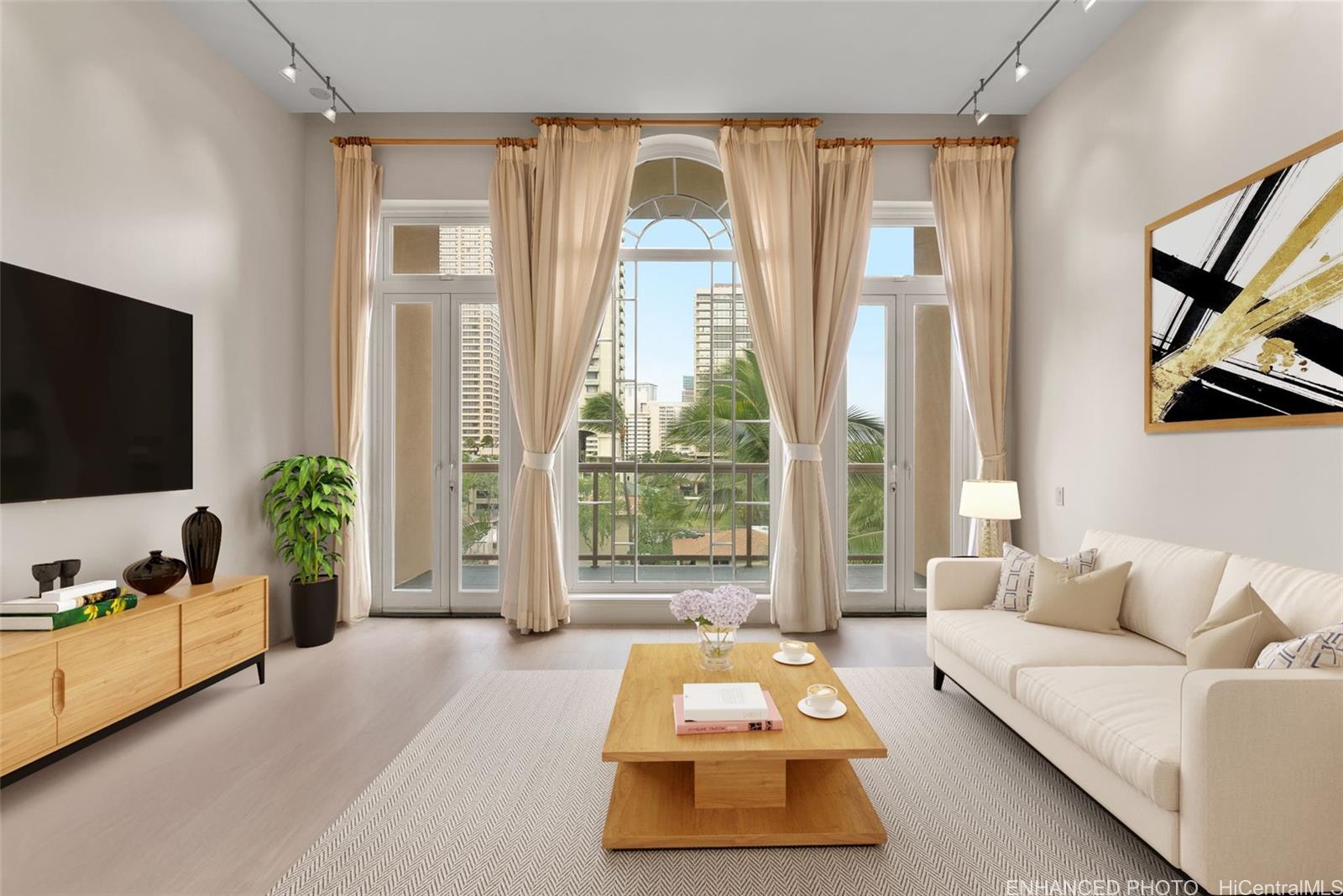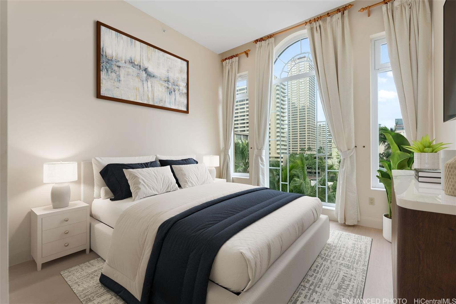 Experience refined island living at LOFT at Waikiki. Offering a 2BD/2BA residence with high 12' ceilings on the 5th floor, just blocks from Waikiki Beach. Recently refreshed with new interior paint and luxury vinyl plank flooring throughout. Open kitchen features a large granite island and high-end built-in appliances, including Sub-Zero refrigerator and Wolf 5-burner gas range. Spacious primary bedroom with custom closet system and ensuite bath offering a soaking tub and large walk-in shower. Central AC throughout and French-style lanai doors open to a private balcony. Resort-style amenities include lush landscaping, pool, hot tub, putting green, and BBQ areas. Includes 2 secured, covered parking stalls on ground level next to the elevator. Listing by: Hilina'i Homes Incorporated (808) 387-8000