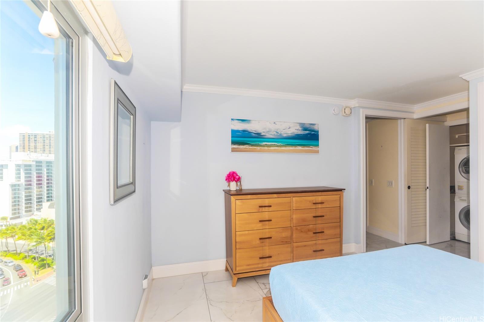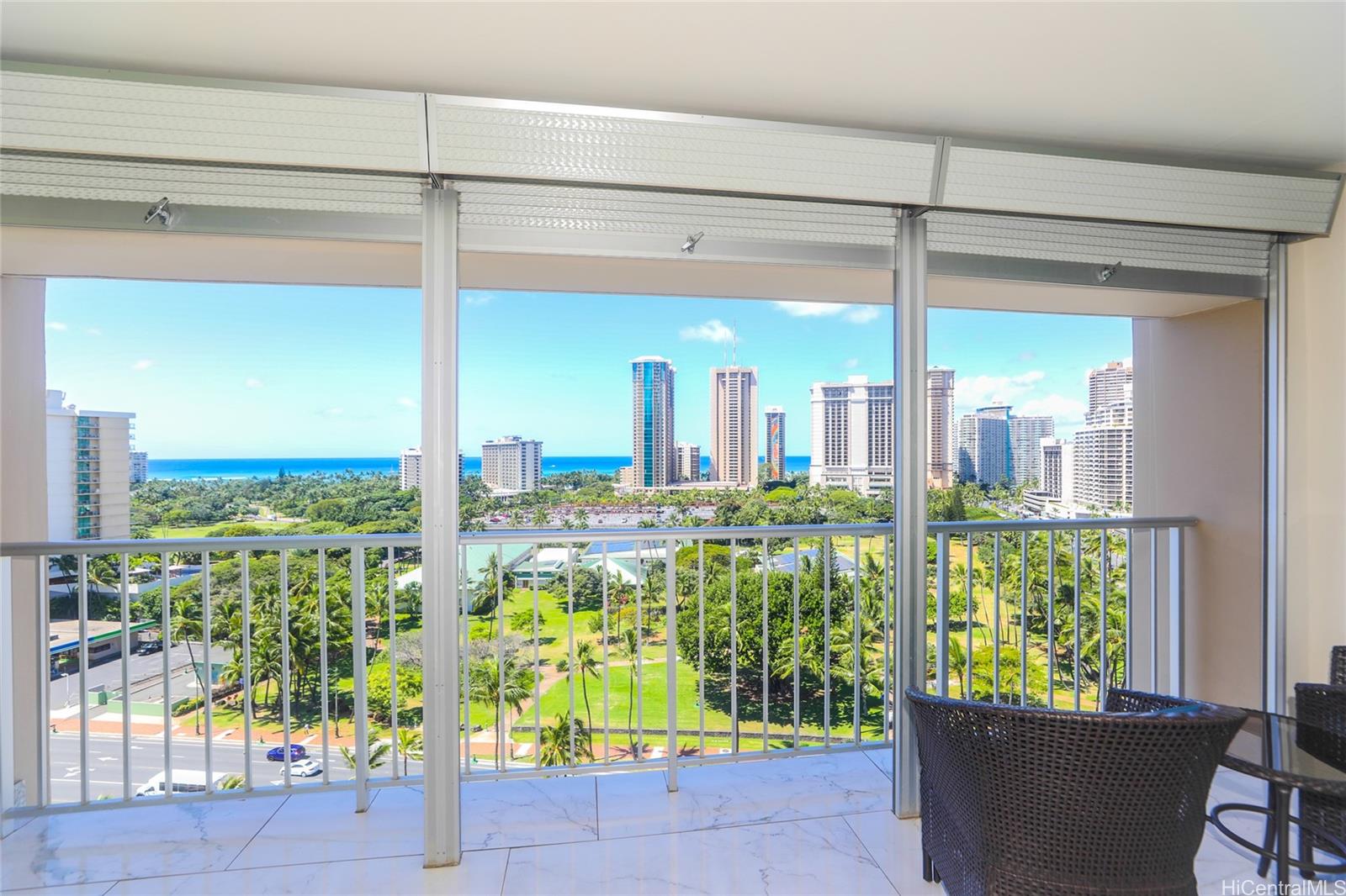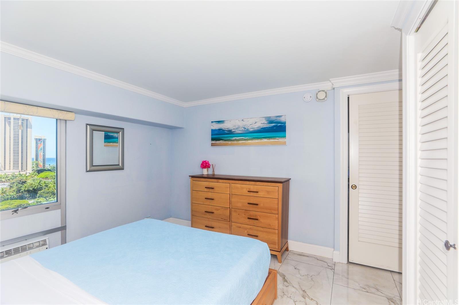 string(888) "Enjoy the beautiful ocean views, Fort DeRussy park and the glitter of the city lights, add on the Friday night fireworks and it's nothing but spectacular. (Originally a 2 bedroom) it was converted to a large one bedroom. This entire unit was remodeled with quality materials. All new tile flooring, counter tops, cabinets, shower with custom glass doors and vanities. All of the windows have been replaced, sliding lanai doors are triple paned creating a very quiet living environment. All you need is to bring your personal belongings, complete turnkey. Furniture included. Keoni Ana has completed their plumbing project, elevators and is a fully insured, very secure building. Enjoy the Rooftop views.