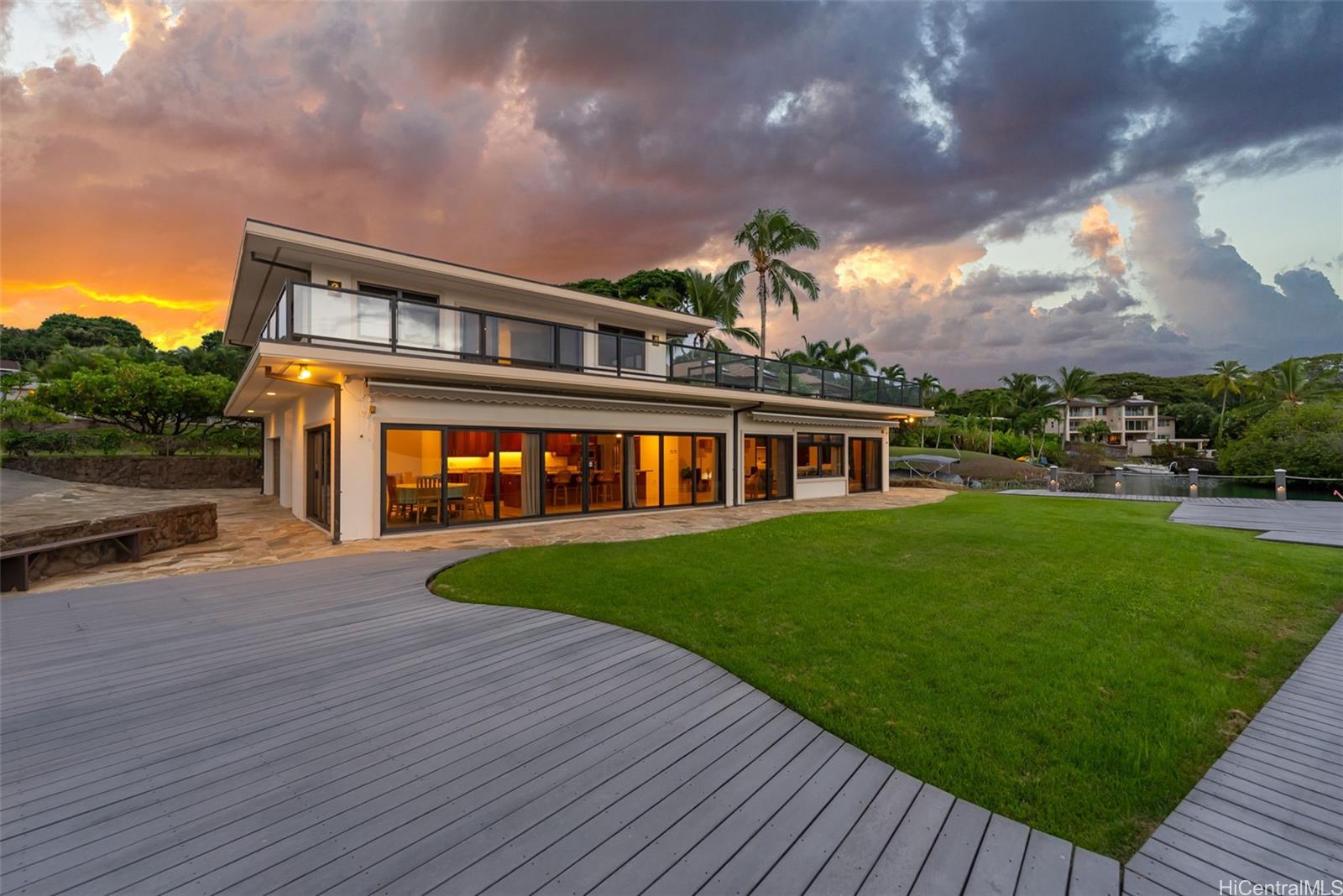 Spectacular Oceanfront property! 33,428 sq. ft. with 2 houses and a boathouse, oceanfront deck, deep water dock with cleats to secure a large boat. Upper House: 1,949 sq. ft. of living space. Newer oceanfront home, 3,337 sq. ft. 2 story with an elevator, large 2nd floor lanai, accommodating 10+ for outdoor dining, ocean/sunset views. Ground floor designed for entertaining, indoor/outdoor living, sliding glass doors open to lawn and oceanfront deck. Tiled ramp to ocean for kayaks, paddle boards, etc. which can be stored in the boathouse. A compound for a large family with development potential (subdivision/renovation potential described in architect opinion letter). Consider building 2nd floor on the Upper House for unobstructed views of the ocean and Ko'olau mountains. R10 zoning, well-maintained adjacent homes and private wide concrete driveway offer privacy/exclusivity protecting property values. Net sales proceeds will go to the Henry and Colene Wong Foundation, a 501 (c) (3) non profit, to benefit women and children and those in need of food and shelter in Hawaii. Lot 28,565 sq ft. Driveway 4,863 sq ft. Please watch the video and Matter port linked. Listing by: Real Broker (808) 381-6990