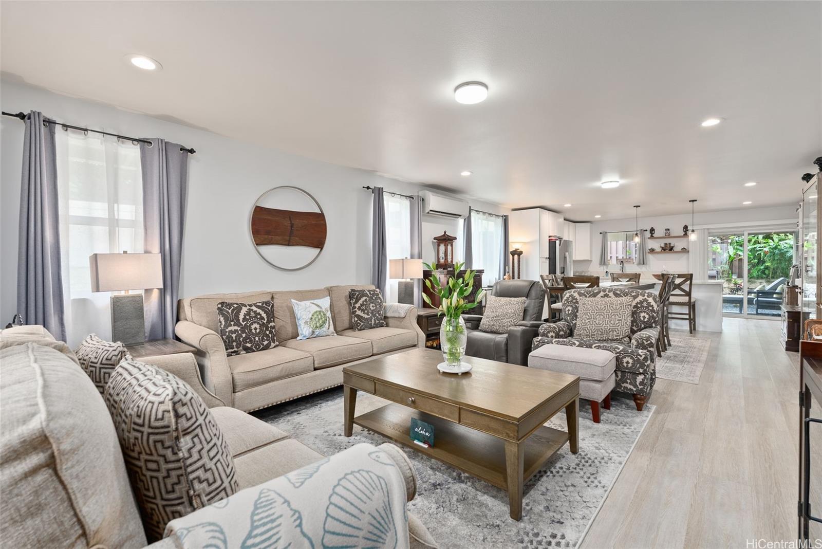 [0] => Welcome to this modern immaculately maintained luxury residence, positioned at the end of a quiet cul-de-sac offering refined design, privacy and contemporary comfort. This home features a modern spacious kitchen with stainless steel appliances, quartz countertops, and plenty of space for dining and entertaining. The living room flows seamlessly from the kitchen and dining area to create an open and inviting space for everyday living and enjoyment. The residence features 4 generously sized bedrooms, also a versatile suite with a private entrance, full bath and kitchenette - ideal for extended family, guests or rental option. There are six new split A/C systems for enhanced comfort. The backyard area offers a welcoming outdoor space designed for relaxation, and outdoor gatherings. Don't miss the opportunity to own this home nestled in the heart of Kaneohe minutes from Windward Mall, theaters and restaurants. Close to H-3, Marine Corps Base Hawaii, Camp Smith, Hickam Air Force Base and Pearl Harbor. FIRST OPEN HOUSE, January 18th, 2-5pm. SEE VIDEO LINK