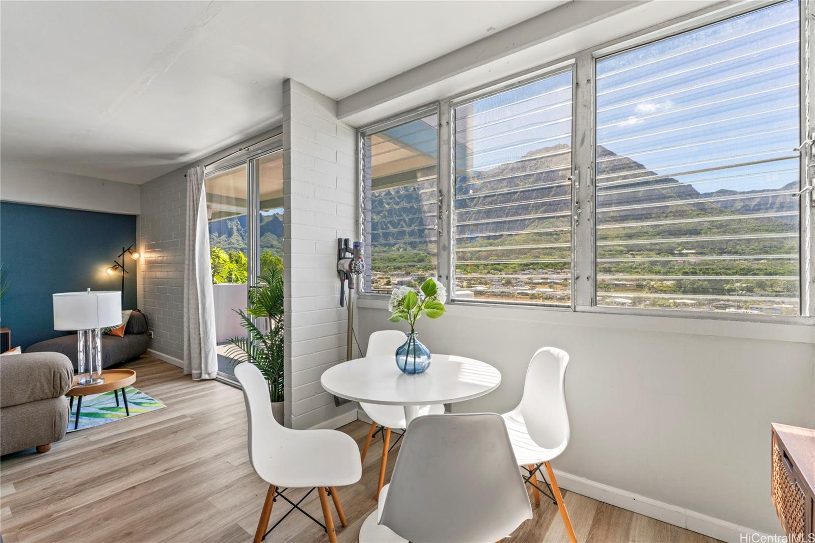 ***Wake Up to the Best of Kaneohe***ocean views greet you as you walk to your front door, while the lush Ko'olau Mountains frame your living room and covered lanai. This 2-bedroom, 1-bath, 5th floor condo offers a rare blend of convenience and scenery, Just 0.6 miles from Ho'omaluhia Botanical Garden and moments from shopping, dining, freeway access and Military Bases. Inside, new luxury vinyl flows through the main lining areas, creating a fresh, low-maintenance space. Two owner-access elevators make daily life easy, and the unit includes the option to assume a VA loan at 4.75% interest with minimal cash gap-an opportunity that's hard to match in today's market. Whether you're sipping coffee on the lanai or strolling to the gardens, this home connects you to the beauty and ease of Windward living. Listing by: eXp Realty (808) 725-2794
