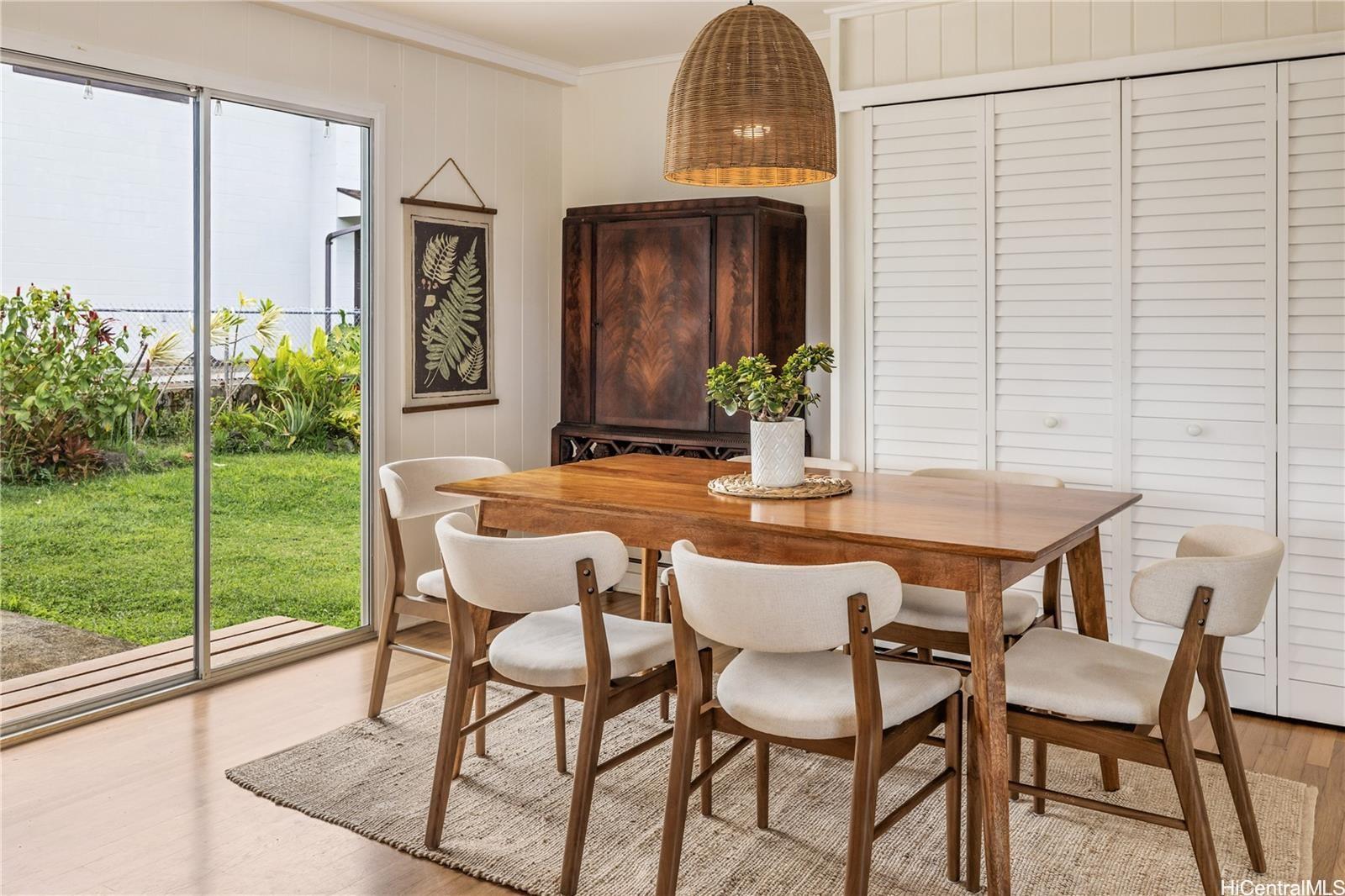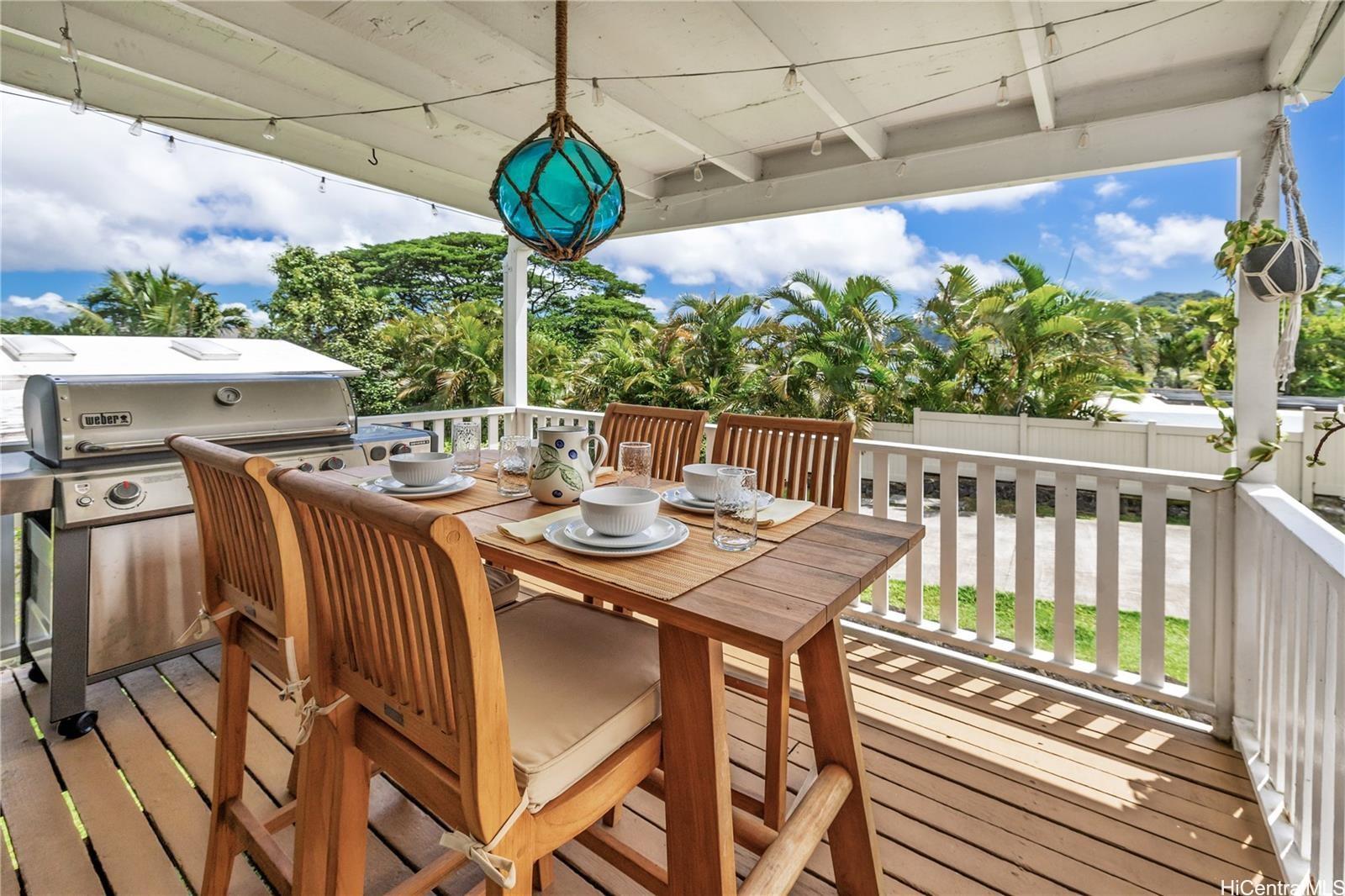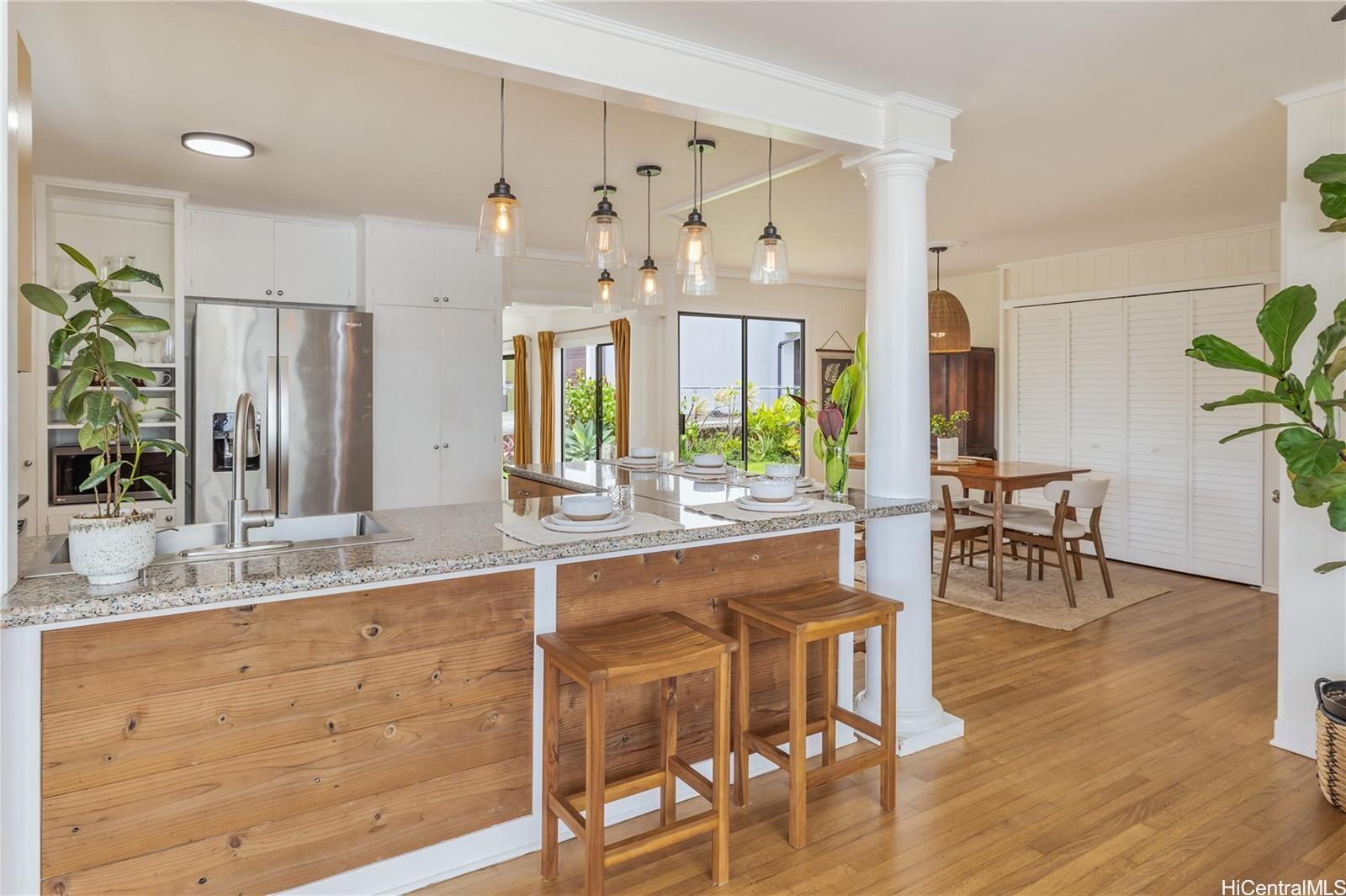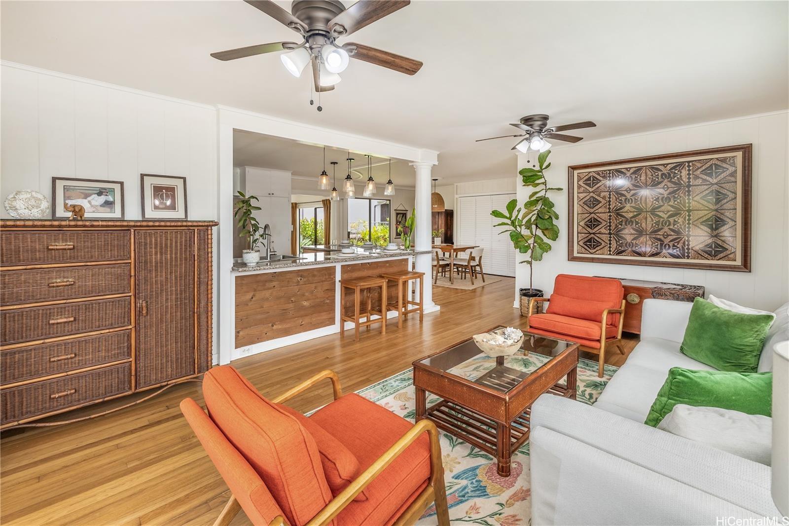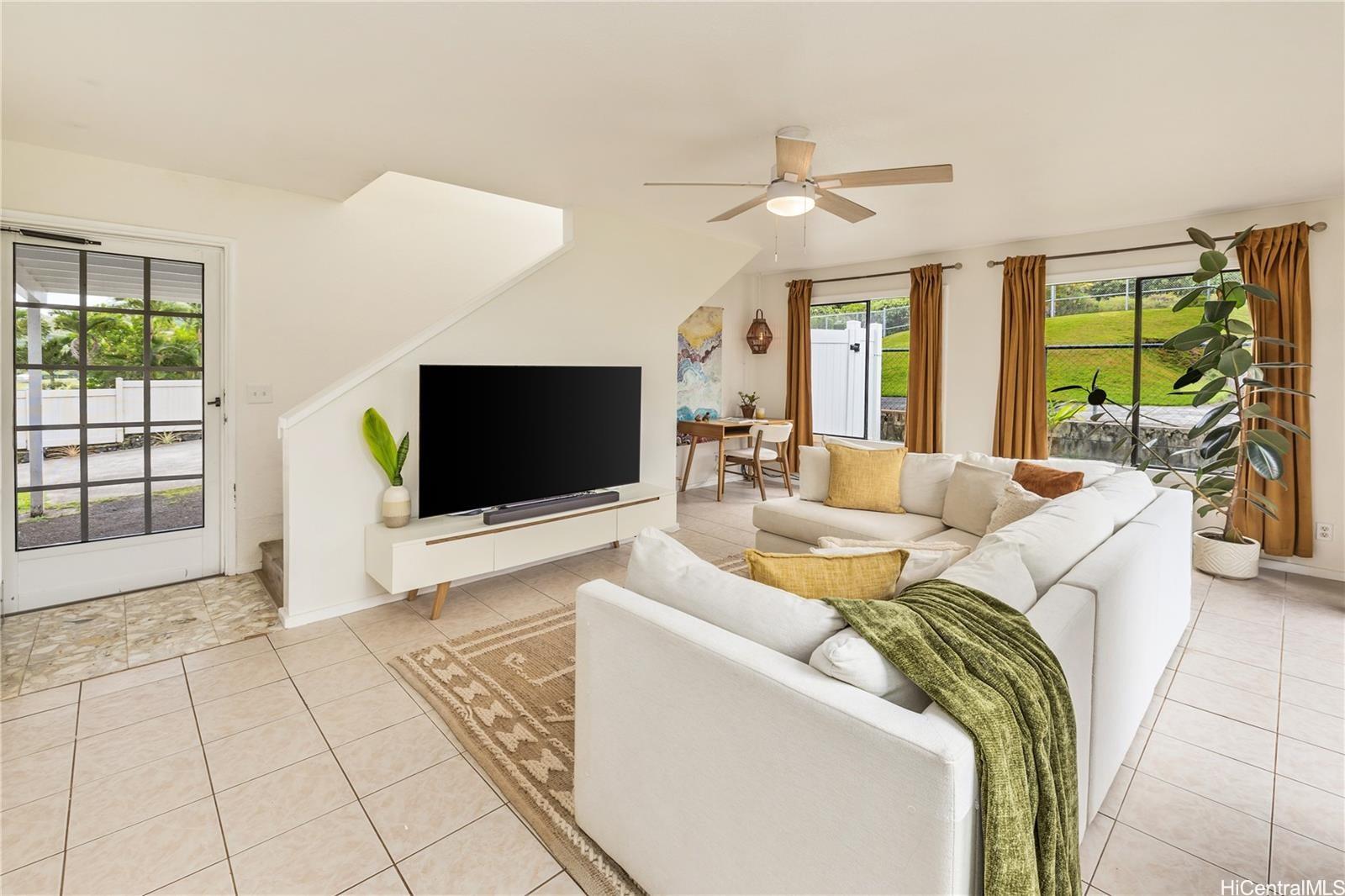 string(1191) "Gorgeous Ko`olau mountain views from this double sized property! The expansive, fenced, lush backyard features fruiting avocado and ulu trees. Two lots, which were purchased separately, were recently combined, creating one TMK. The wonderful front covered lanai opens to the living room and kitchen, perfect for indoor/outdoor living. The kitchen, in the heart of the home, offers expansive countertop seating for 5, a separate dining area, and views into the living room. The entertainment room is just off the kitchen area with large windows and a sliding door to the vibrant backyard. The main primary bedroom suite is on the top floor with incredible views of the striking mountains from the large windows, a high ceiling, split AC, ceiling fan, and en-suite bath. The main level features hardwood floors, great breezes, a second primary bedroom suite with an en-suite bath and walk-in closet, and two other bedrooms, all of which have split AC, hardwood floors, and ceiling fans. This wonderful home is conveniently located close to Kaneohe town, Kailua beaches, a dog park, Windward Mall, Le Jardin Academy, freeway access, and beautiful Ho`omaluhia Botanical Gardens. A must-see home!"