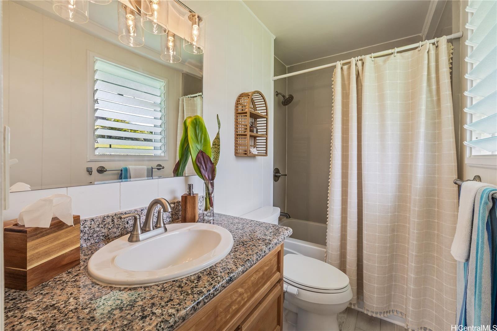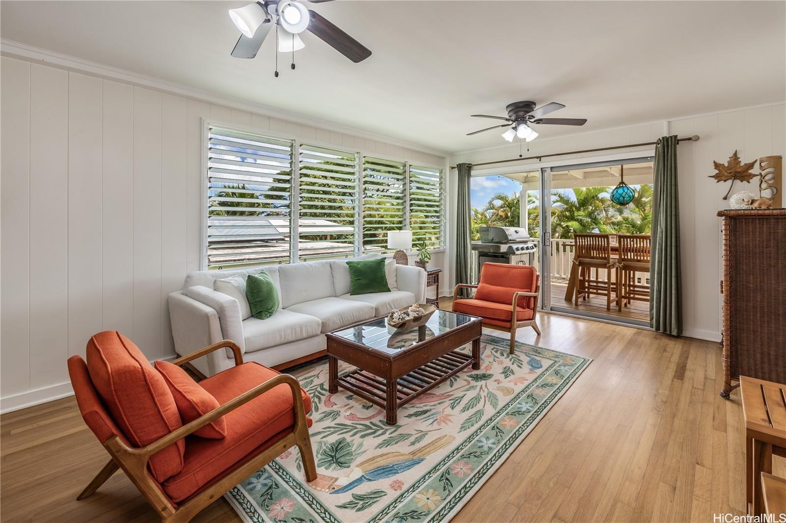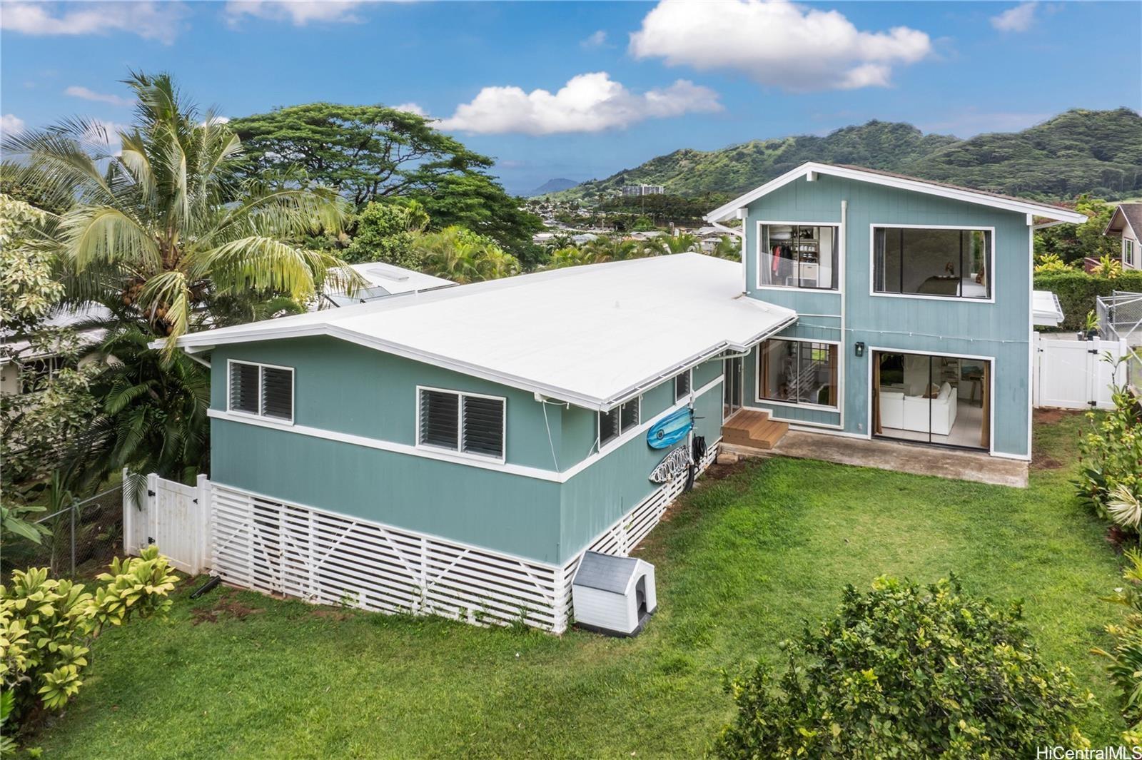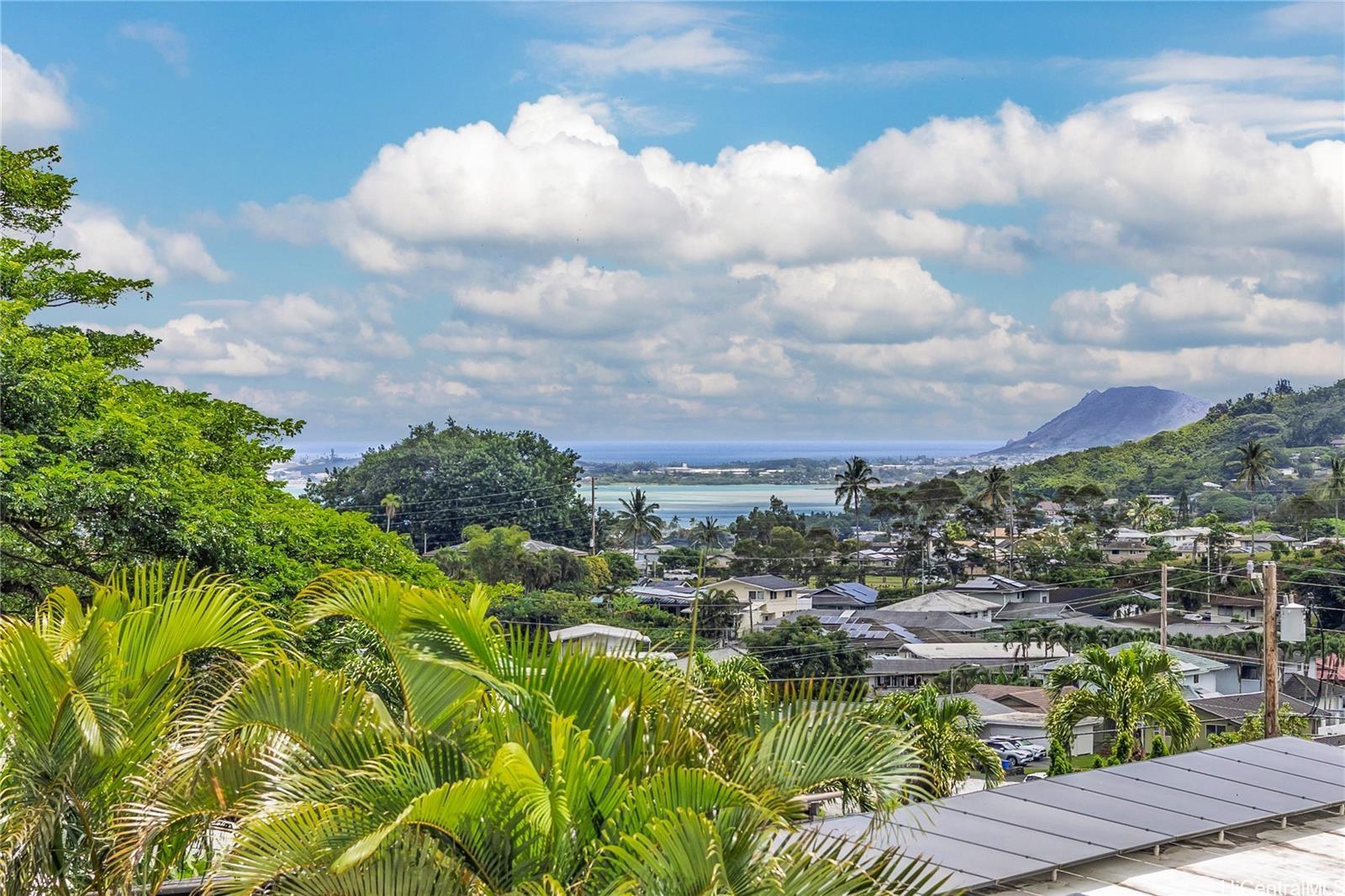 Gorgeous Ko`olau mountain views from this double sized property! The expansive, fenced, lush backyard features fruiting avocado and ulu trees. Two lots, which were purchased separately, were recently combined, creating one TMK. The wonderful front covered lanai opens to the living room and kitchen, perfect for indoor/outdoor living. The kitchen, in the heart of the home, offers expansive countertop seating for 5, a separate dining area, and views into the living room. The entertainment room is just off the kitchen area with large windows and a sliding door to the vibrant backyard. The main primary bedroom suite is on the top floor with incredible views of the striking mountains from the large windows, a high ceiling, split AC, ceiling fan, and en-suite bath. The main level features hardwood floors, great breezes, a second primary bedroom suite with an en-suite bath and walk-in closet, and two other bedrooms, all of which have split AC, hardwood floors, and ceiling fans. This wonderful home is conveniently located close to Kaneohe town, Kailua beaches, a dog park, Windward Mall, Le Jardin Academy, freeway access, and beautiful Ho`omaluhia Botanical Gardens. A must-see home! Listing by: Coldwell Banker Realty (808) 738-3904