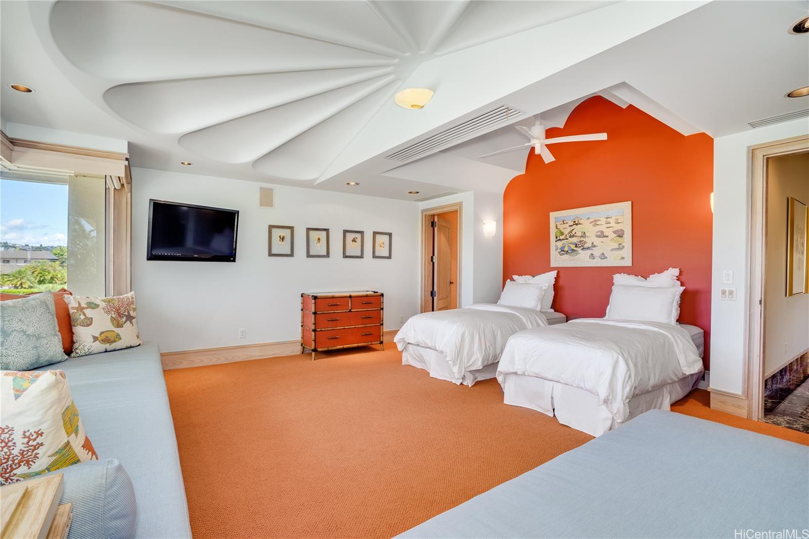 This home is an exceptional buy for the Kahala market. Priced below replacement cost for this INCREDIBLE & RARE to see craftsmanship! Completed in 1993 & built from quality materials & impeccably detailed carpentry. The original décor & finishes of each room was created as a series of elaborate fantasies from Shakespeare to the travels of Napoleon. A dramatic entry boasts soaring ceilings impeccably detailed; a sweeping staircase highlighted by walls of glass; & an extensive use of fine marble & granite throughout. Wide pocketing glass doors joins the interior to the outdoor spaces & pool for relaxing in this splendid residence. The first level includes a grand dining area with a reflective mirrored ceiling, a service bar with a spacious lounge for social gatherings, a library/media room & two bedroom ensuites. On the second level is a billiard area with a step down cozy seating area for spectators to relax. To the right & left of the billiard room are two additional bedroom ensuites. The home includes a 3-car garage & lots of storage areas. Located across the street from the former Weinberg Estate & a direct access to sandy beach for a stroll along the ocean. Listing by: Hawaii Life (808) 255-7143