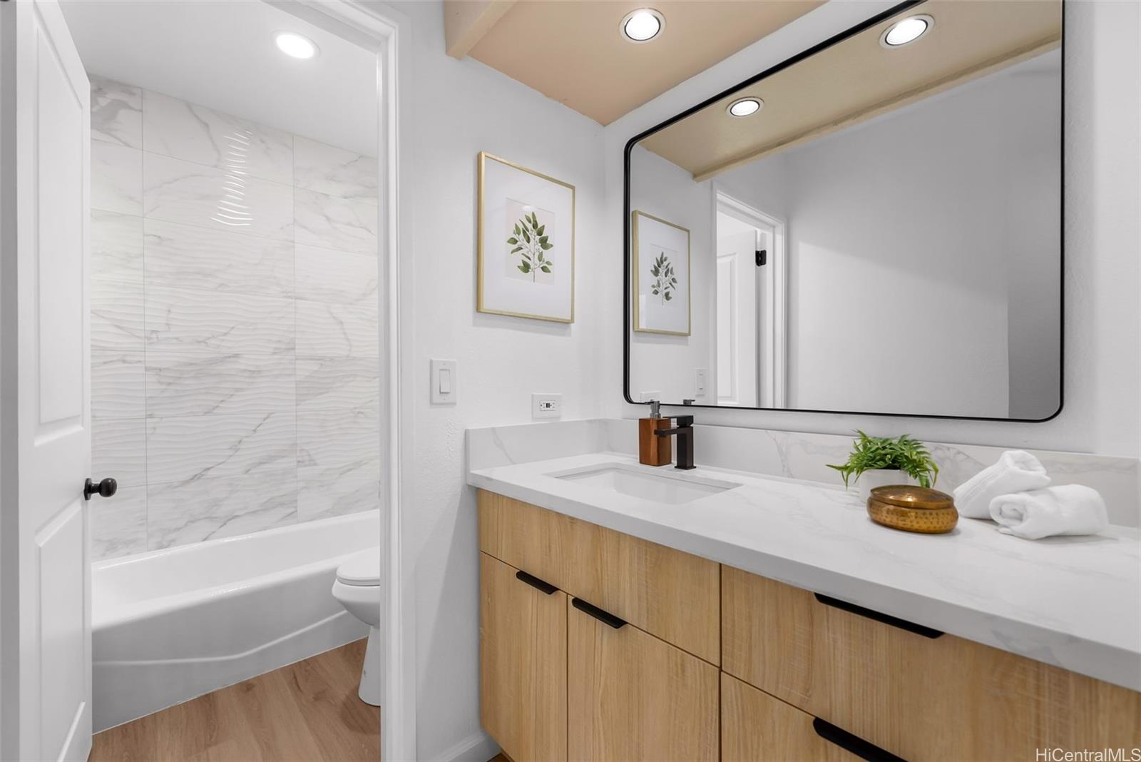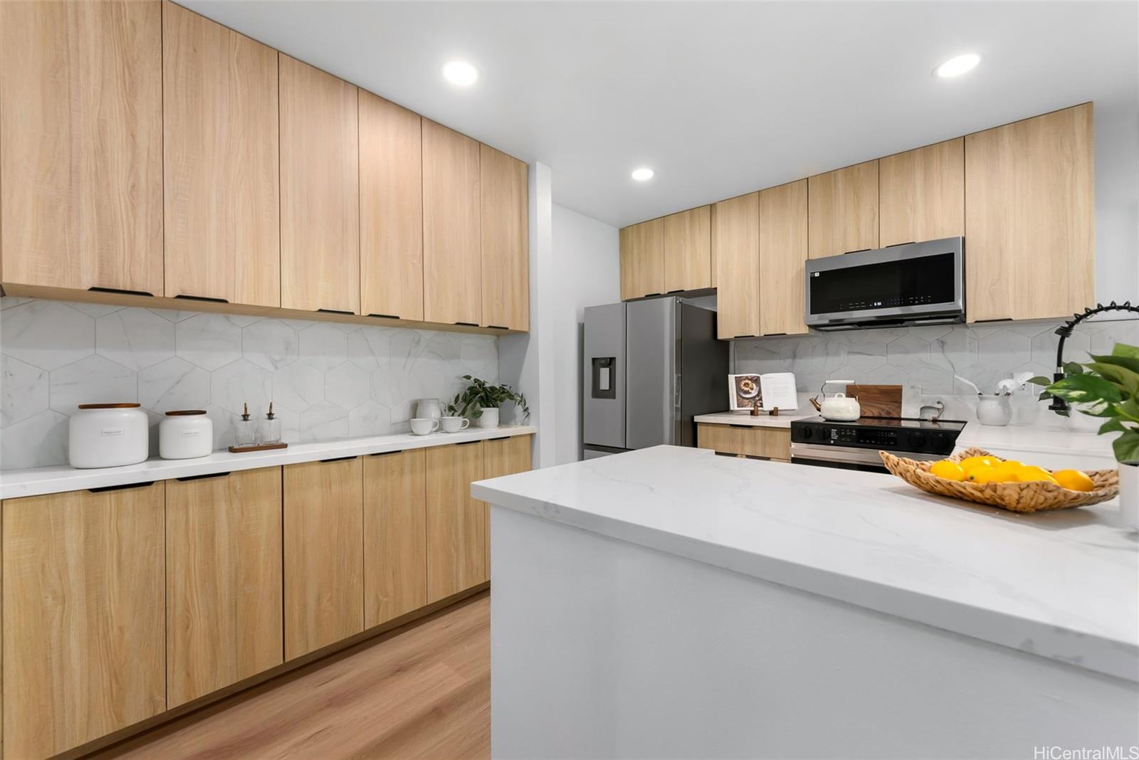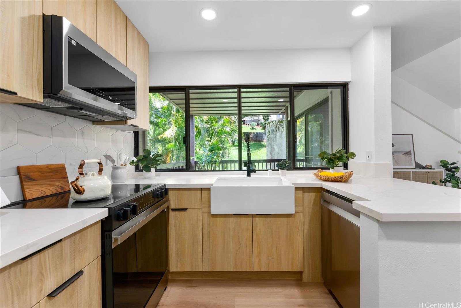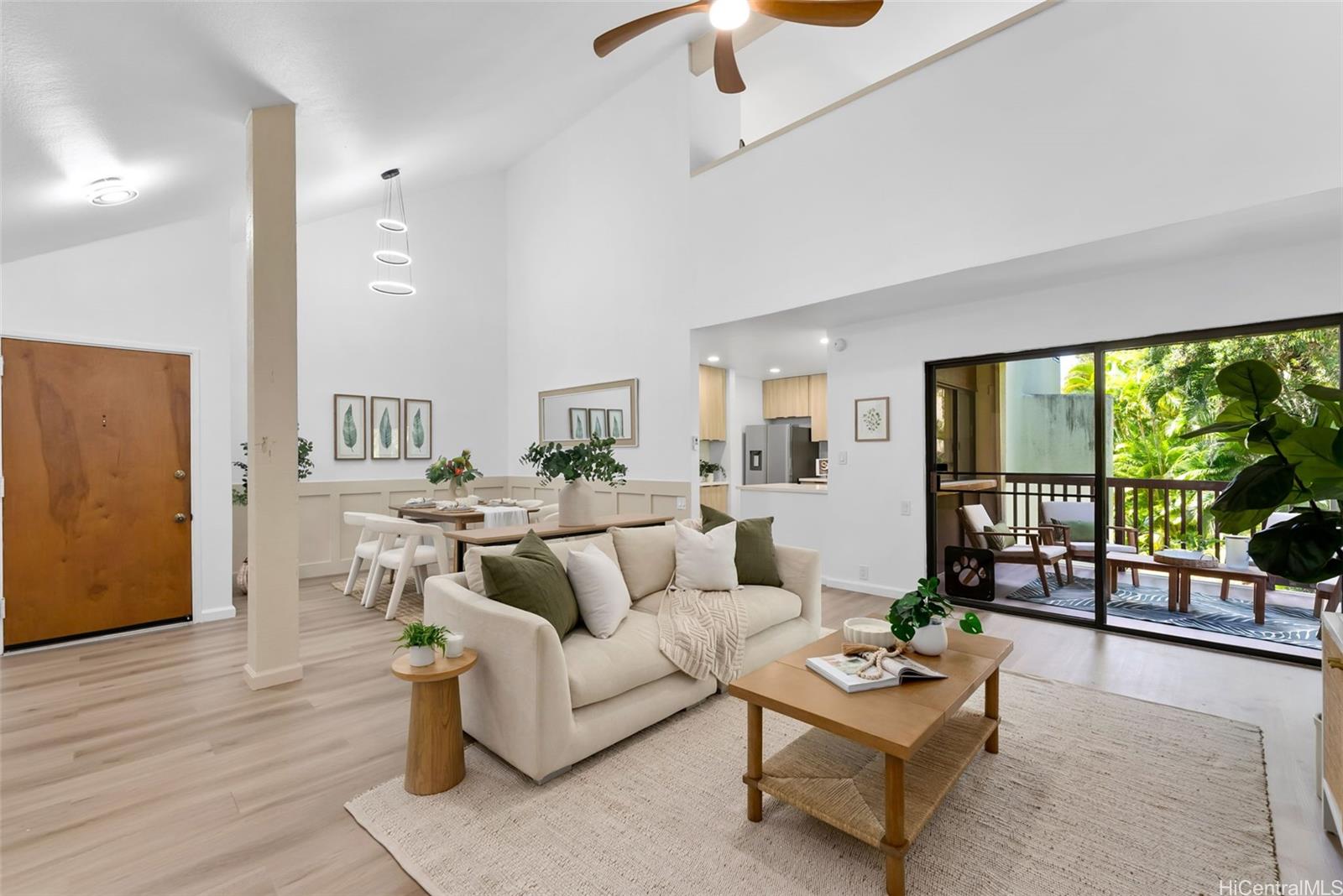 Welcome to Puu Alii - an EXCEPTIONAL community. This beautifully + fully renovated 2-bed, 2-bath townhome offers a modern + stylish living space. Situated in the highly sought-after Puu Alii neighborhood, this WELL-PRICED unit provides convenient walking access to grocery stores, Windward Mall + a variety of dining options. Featuring a spacious open layout + with vaulted ceilings, complete with a walk-in closet and in-unit washer/dryer for added convenience. Enjoy tranquil views of the koi pond from your private lanai, perfect for relaxation and unwinding. Your side-by-side parking spaces ensure ease of access + ample guest parking for your friends + family to visit. Offering resort-style amenities + granting access to ALL Puu Alii phases + Poha Kea Point, you can indulge in 3 separate pools, hot tubs, rec areas, sauna, tennis + pickleball courts, multiple jogging paths, BBQ areas + much more on the well-managed grounds. With easy access to H-3, Likelike + Pali highways, explore the vibrant surroundings of Kaneohe + take a short drive to world-renowned beaches in Kailua. Don't miss the opportunity to own a piece of paradise in this well-maintained + highly desired community. Listing by: Compass (808) 386-4487