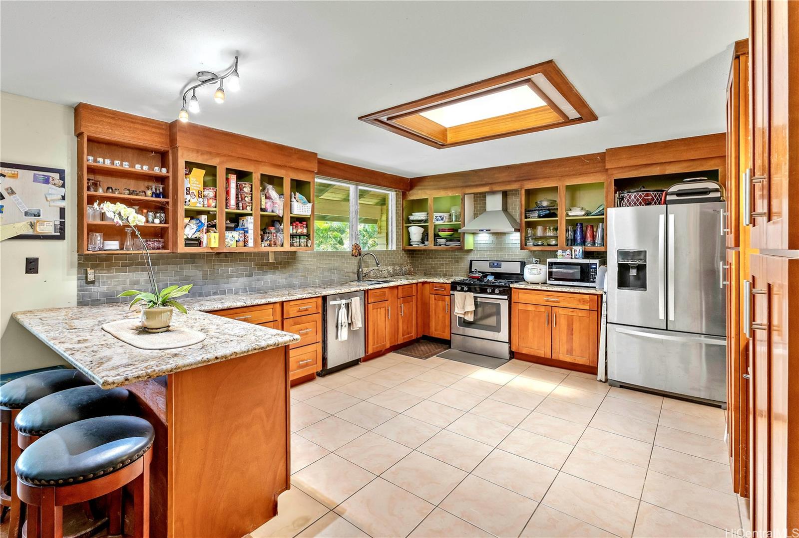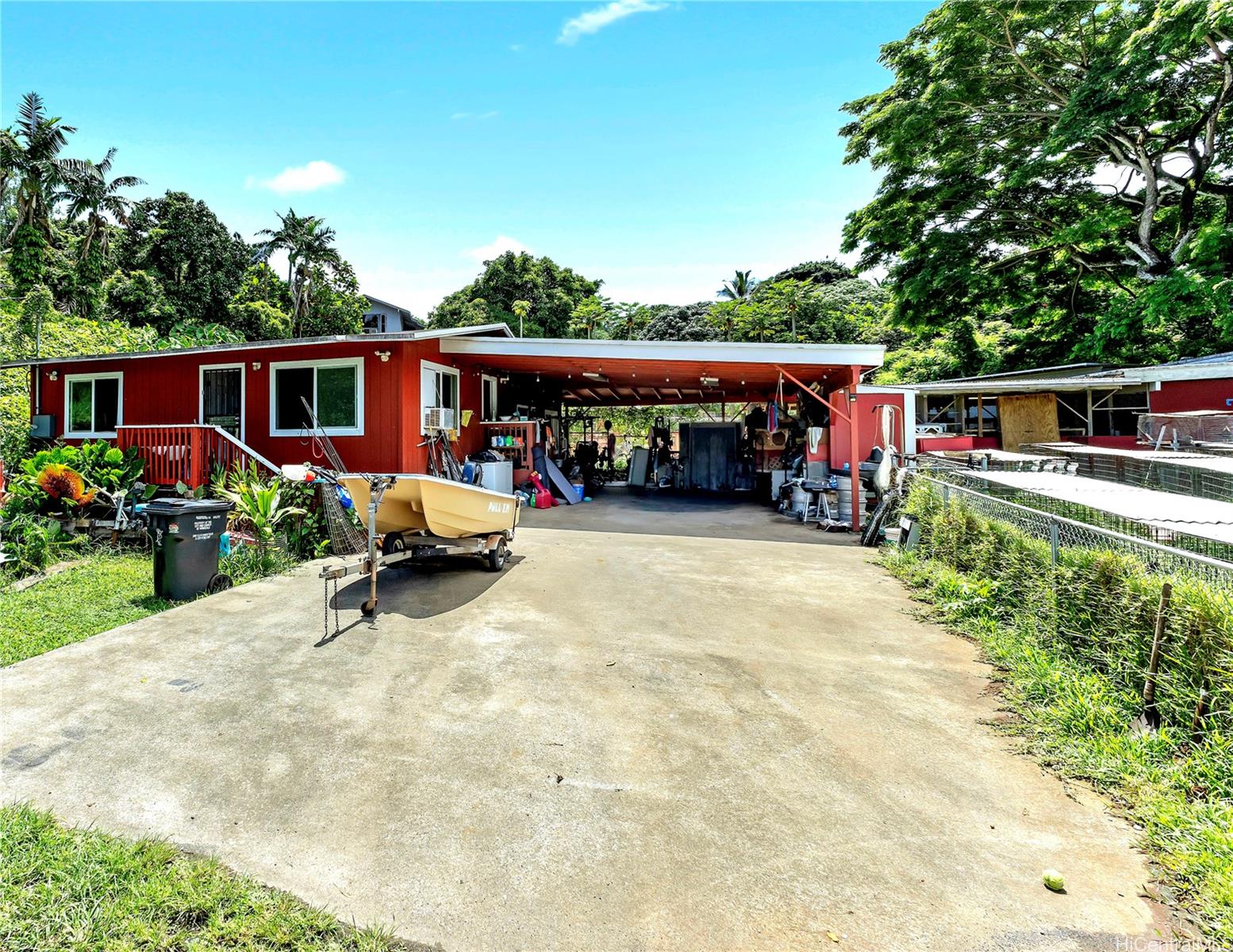 This is your chance to own a truly unique property in a peaceful, low-traffic neighborhood. Nestled on 1.456 acres, this expansive property features a spacious concrete/masonry home perched to capture the beautiful views of Ahuimanu and the majestic Koolau Mountain range. Perfect for entertaining, the home includes a large living room with soaring ceilings, a separate family room, a generous sized kitchen, and an expansive covered wrap around lanai-ideal for indoor/outdoor living. The lower level offers a private one-bedroom, one-bathroom guest suite with it's own kitchenette. A leased photovoltaic (PV) system is also included to help reduce your monthly electric costs. Don't miss this rare opportunity to own a special piece of Windward Oahu. Bedroom and bathroom count may not match tax records. Listing by: The Agency-Oahu (808) 728-1698