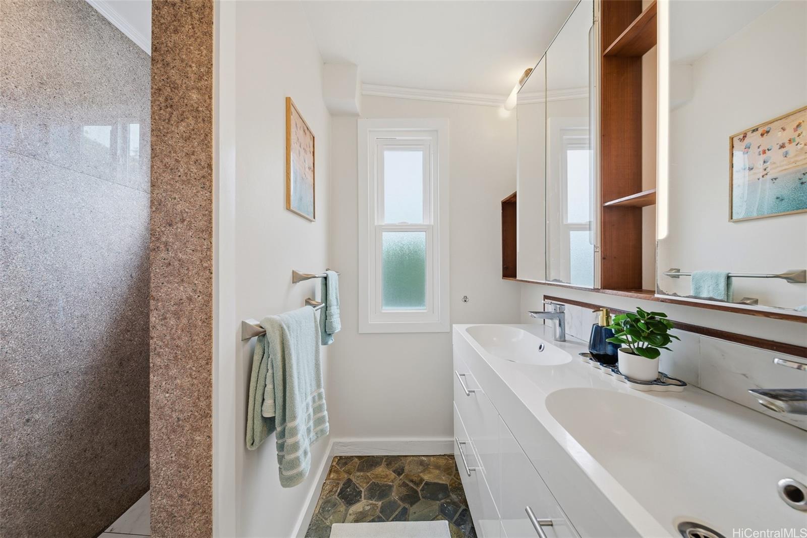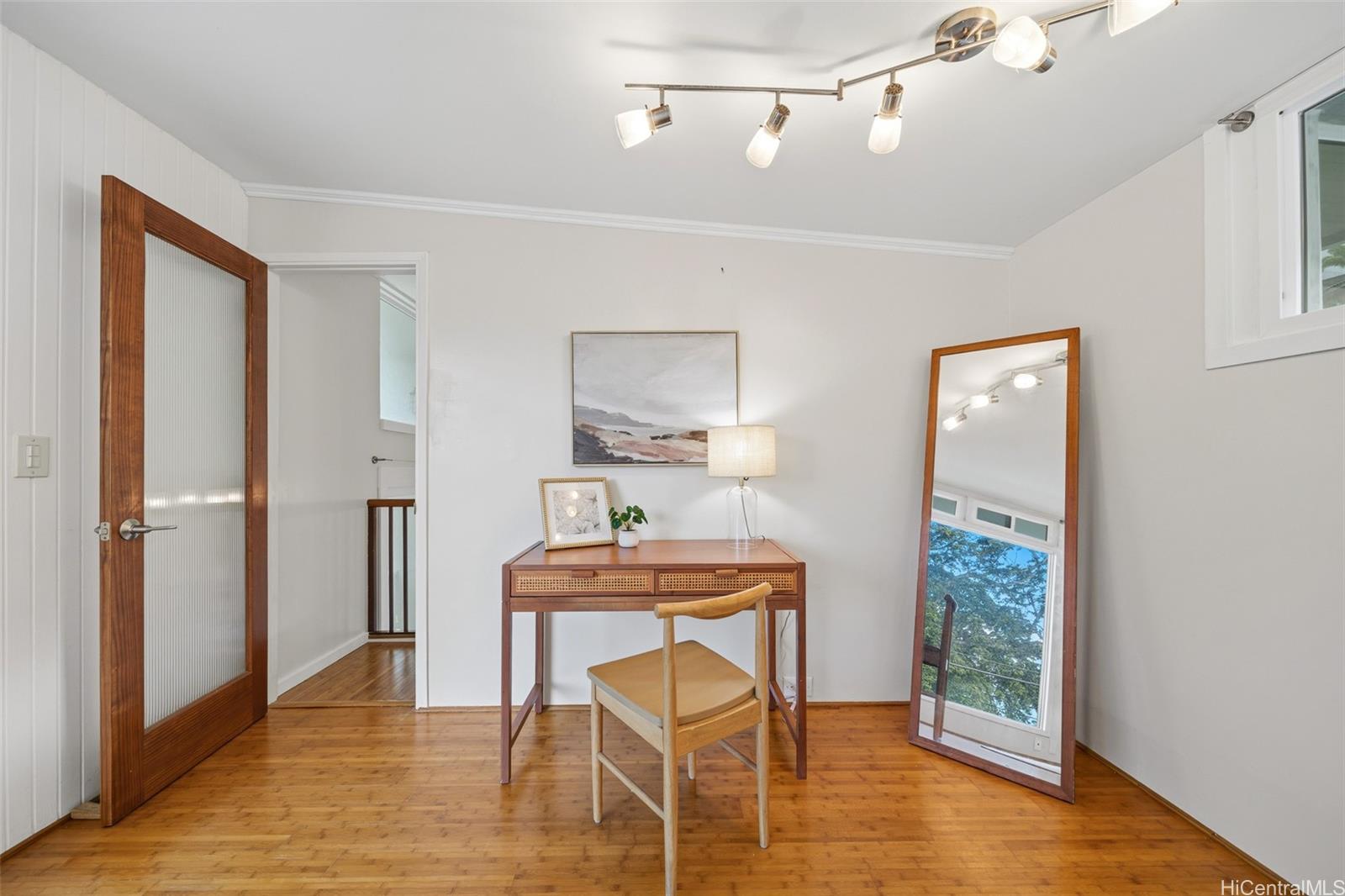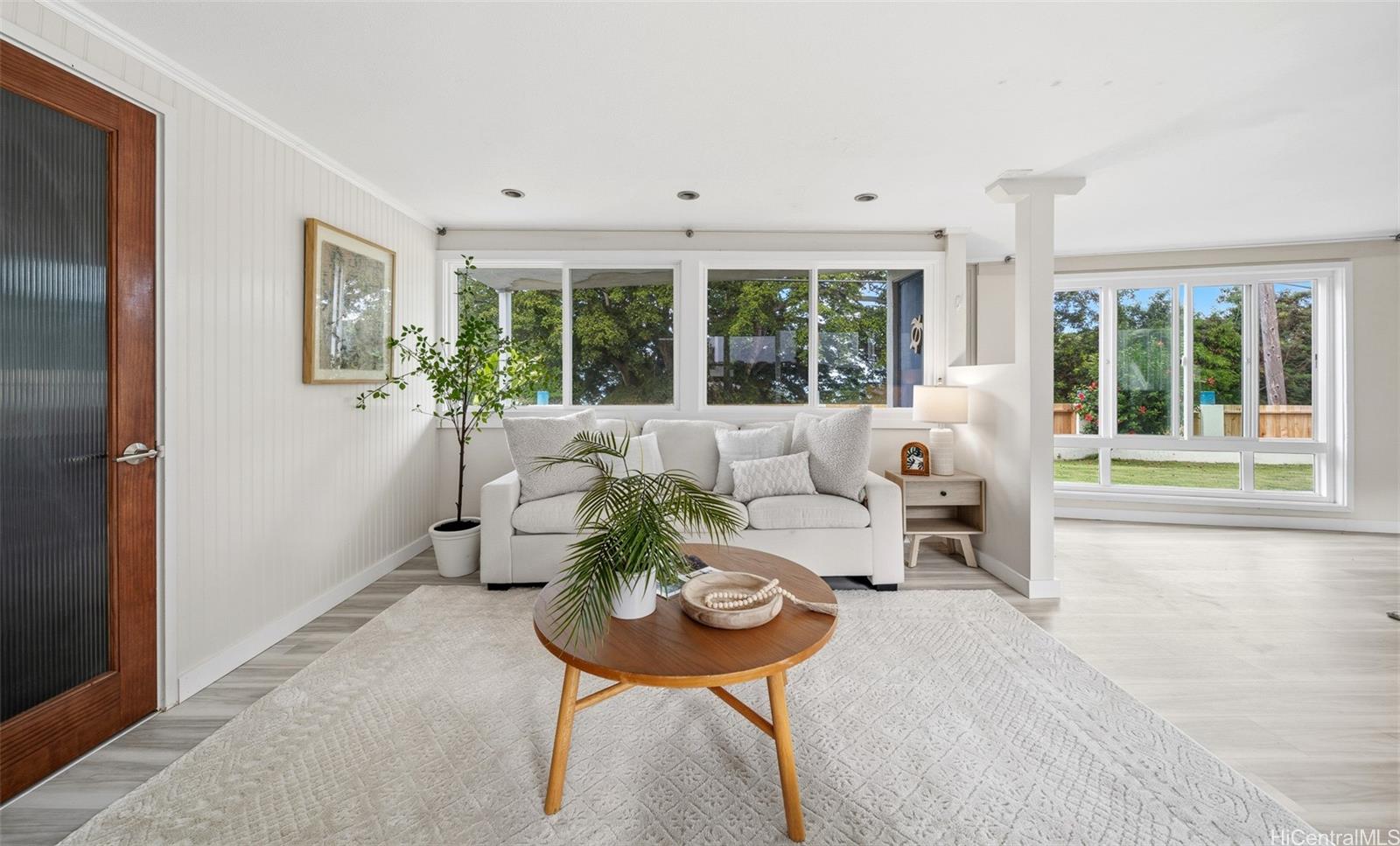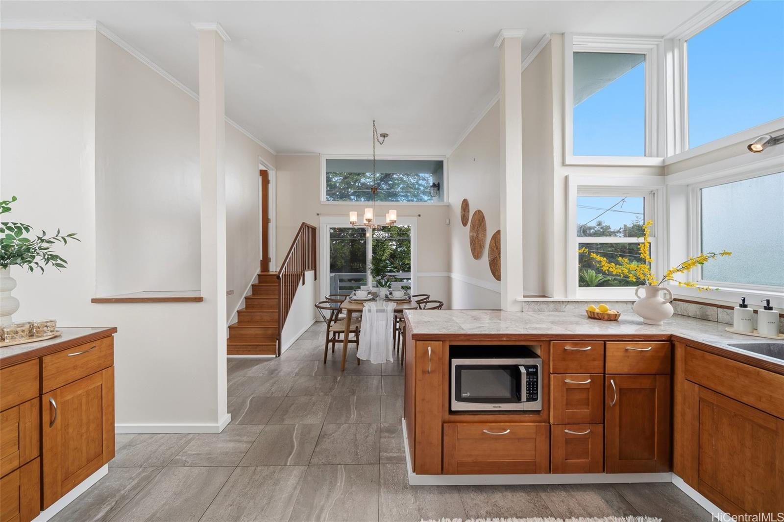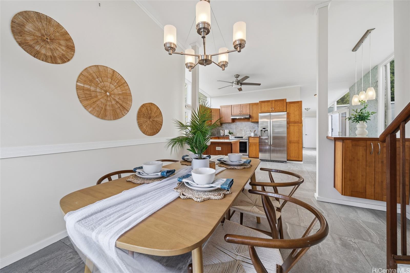 string(856) "Tucked in Lulani Ocean, perched above Kaneohe Bay, this mid-century modern gem blends islander living with timeless design. Not your cookie-cutter home, it embodies character, flow, and spaces that just feel good. The kitchen and baths have been updated over the years and the indoor/outdoor connection makes entertaining effortless. Multiple lanais open to cool breezes, mountain views, and a lush and expansive 10,710 sq ft lot that might be perfect for that ADU you've dreamt about. Downstairs, a separate living area with its own entrance offers flexibility for extended living or creative space. Lounge by the pool, take in the Koolau's, or launch your kayak from nearby Laenani Neighborhood Park. Two-car garage plus extra parking and generous storage make this one both functional and fun. A true coastal lifestyle, without the oceanfront price tag."