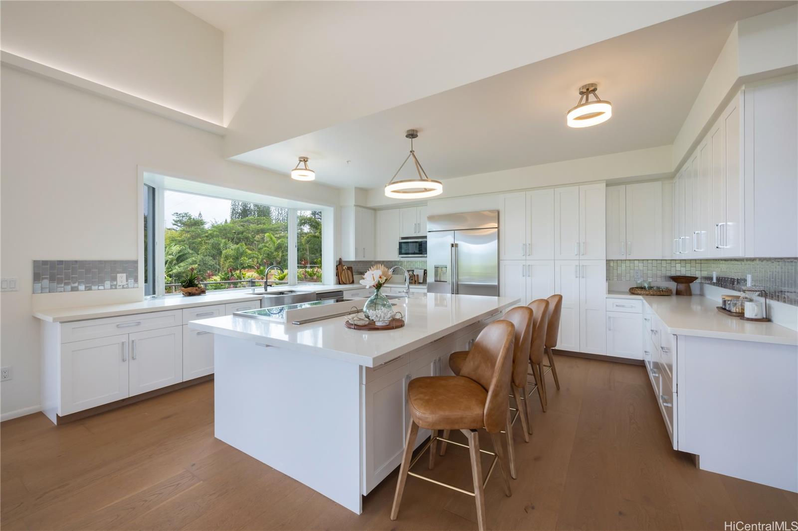 string(1179) "Prominently situated at the base of the Ko‘olau Mountain, a newly built Luxury Country Estate is a rare opportunity for a discerning Buyer seeking views, land, location, & privacy. Spanning over 4 acres above a neighborhood of Cacao Farming, this private Retreat offers breathtaking panoramic views of the ocean, and lush mountain cliffs. A thoughtfully designed residence showcasing soaring ceilings, mahogany framed glass doors from floor to ceiling for seamless indoor-outdoor living. Custom finishes include monkeypod stair treads, tigerwood lanais, custom LED recessed lighting (converts to 12 volts), and 8’ doors throughout. The Chef’s kitchen features 2 sinks, an oversized island - perfect gathering area for the Holidays or entertaining, a 6-burner range/2 ovens with pop-up hood. Primary suites, 1 on each level, offer spa-inspired bathrooms, walk-in closets and a private balcony upstairs. SUSTAINABILITY meets SOPHISTICATION. Owned PV system, tropical landscaping & gated driveway entry. BONUS unattached 900sf workshop. Tucked away for serenity yet minutes from conveniences, this is Hawai‘i living at its finest. Conveyed w/TMK 1-4-7-5-41-1/MLS #202519988."