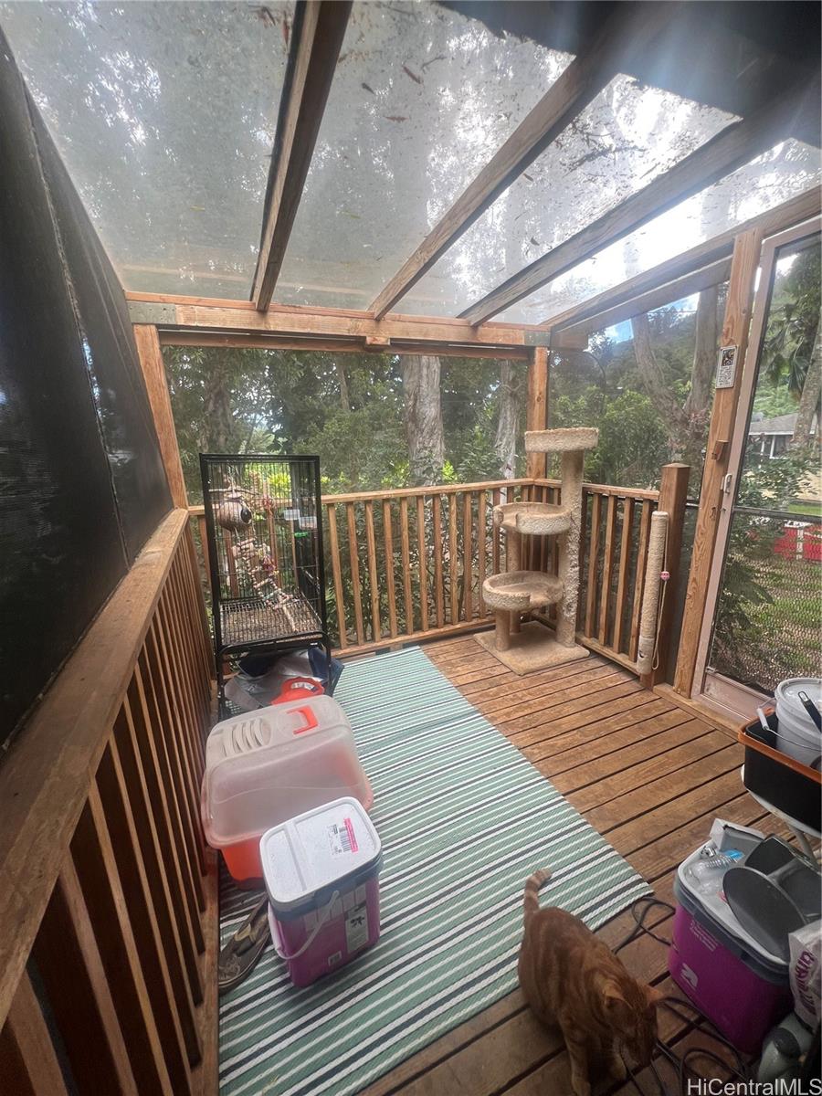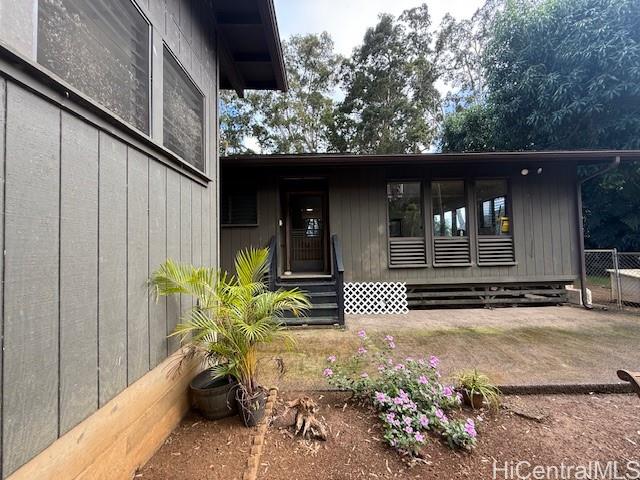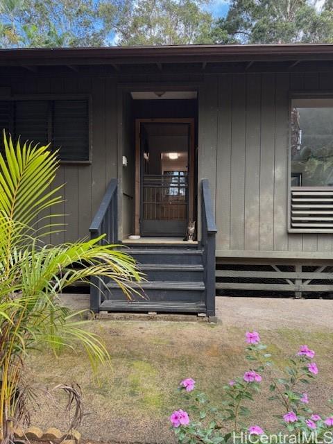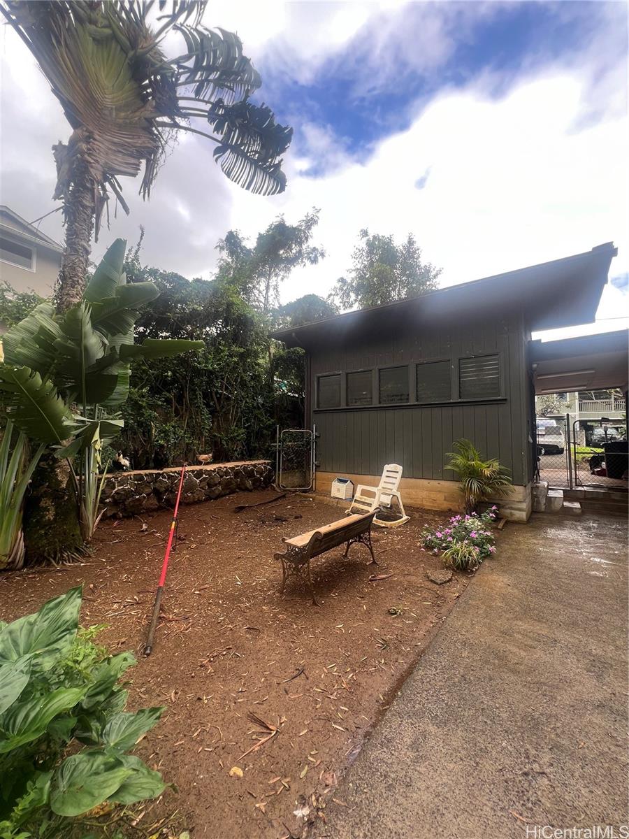 Welcome home to a 3 bedroom, 2 bath, 1200 sq ft home in Ahuimanu, Kaneohe. This home features laminate flooring, ceramic tile in kitchen and vinyl flooring in bathrooms. Spacious open floor plan for the living room, dining room and kitchen. The 3 bedrooms and 2 bathrooms are located down the hallway along with the washer and dryer. There is an enclosed screened patio which is currently used for her cats and can be used as a relaxing area to read the paper while enjoying a cup of tea. A spacious room attached to the garage can be used for an office, art studio, or workshop. Over 10,000 sq ft of land overlooks the majestic Ko'olau Mountains including seasonal waterfalls, lush trees and green grass. Enjoy peaceful country living yet only minutes away from shopping centers and Kaneohe town. Listing by: Royal Realty LLC (808) 368-1964