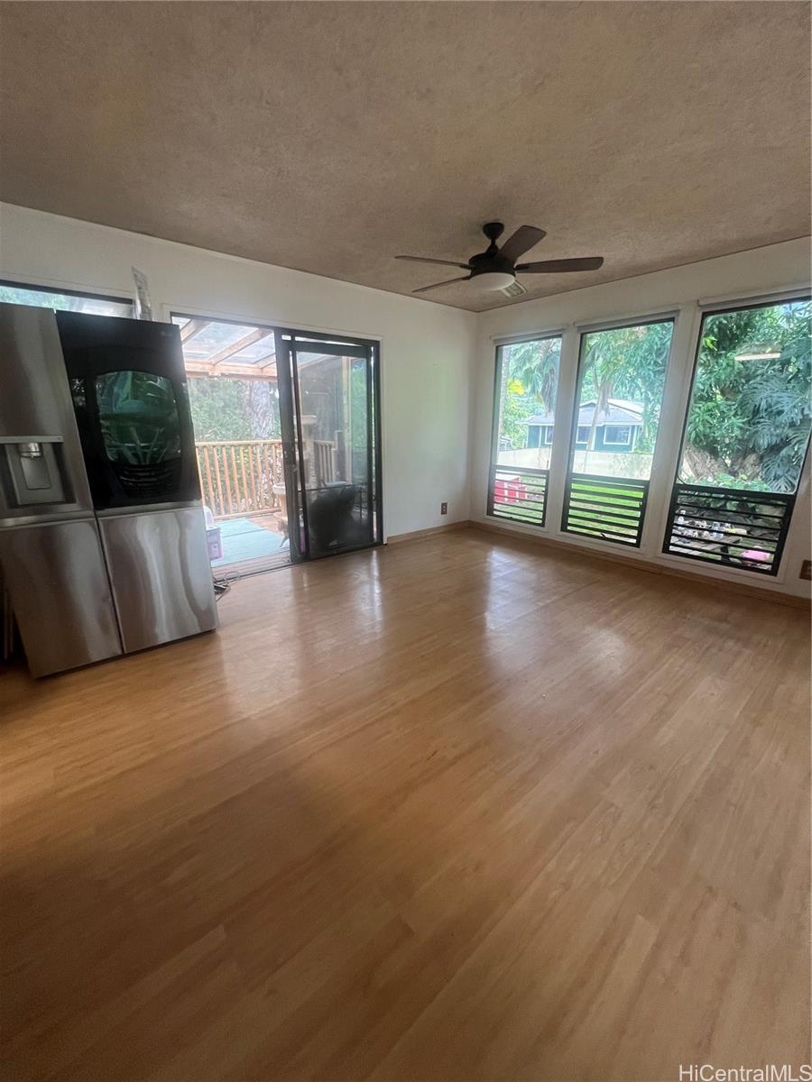 string(800) "Welcome home to a 3 bedroom, 2 bath, 1200 sq ft home in Ahuimanu, Kaneohe. This home features laminate flooring, ceramic tile in kitchen and vinyl flooring in bathrooms. Spacious open floor plan for the living room, dining room and kitchen. The 3 bedrooms and 2 bathrooms are located down the hallway along with the washer and dryer. There is an enclosed screened patio which is currently used for her cats and can be used as a relaxing area to read the paper while enjoying a cup of tea. A spacious room attached to the garage can be used for an office, art studio, or workshop. Over 10,000 sq ft of land overlooks the majestic Ko'olau Mountains including seasonal waterfalls, lush trees and green grass. Enjoy peaceful country living yet only minutes away from shopping centers and Kaneohe town."
