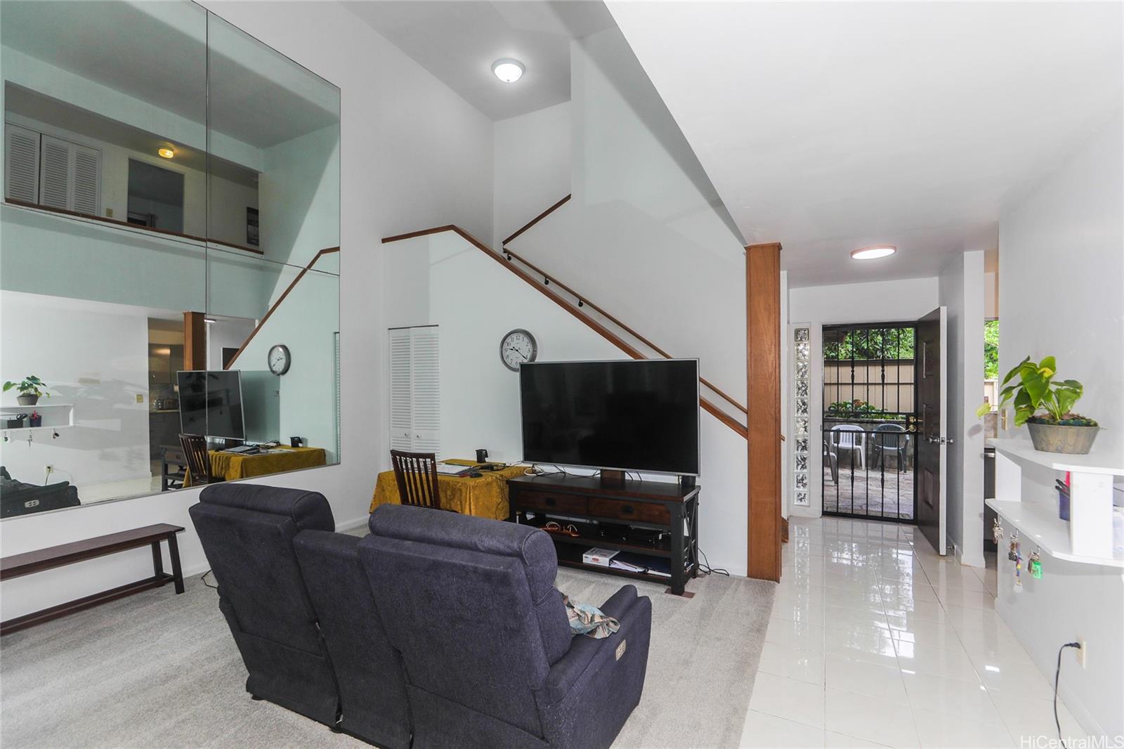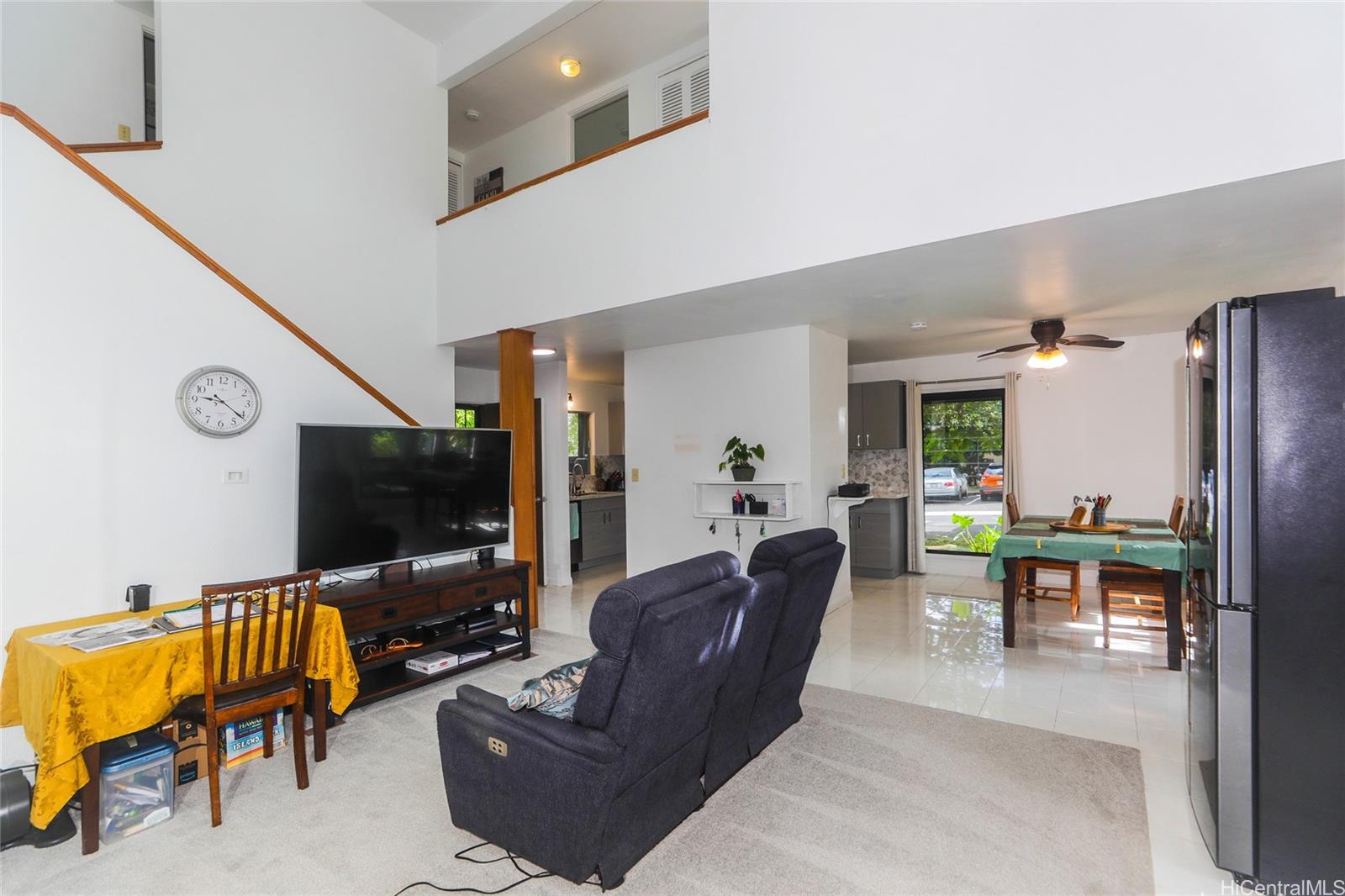 Seller said sell so large price reduction to 699K. Welcome to Club View Gardens. This lovely and spacious 4 bedroom and 2 full bathroom CORNER/END unit Townhome is nestled at the foot of the Ko'olau Mountains with breathtaking views of the Ko'olau Mountain range. Enjoy the high vaulted ceiling in the living room and your newly renovated kitchen with beautiful quartz counter top. This home is perfect for entertaining guests! The features include spacious versatile first floor primary bedroom and full bathroom with two different entryways from the fenced-in courtyard and from inside of the house. Upstairs has 3 spacious bedrooms and one full bathroom. 2 of the upstairs bedrooms have useable lanais! Enjoy the bonus Fish Pond in your courtyard! There are two side by side assigned parking spaces next to the unit and ample street parking. Property is sold in "as is" condition. Please note physical address is: 47-654 Hui Kelu Street #1. Listing by: Island, REALTORS (808) 687-8000