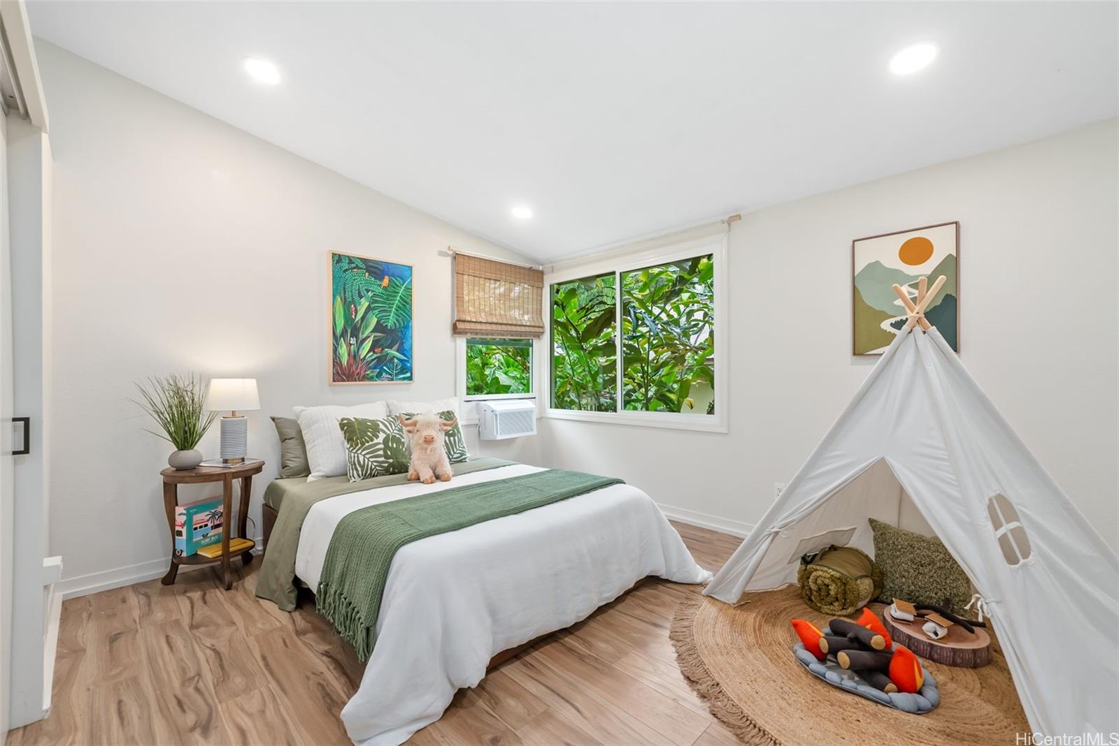 string(1172) "This cozy home is situated at the entrance of over 8 acres of lush greenery, offering a truly tranquil escape from city life. While reaching the upper portion of the property is a hike, it rewards you with absolutely spectacular views. The level area of the lot features a spacious enclosed yard and a separate, thriving vegetable and herb garden. Inside, the home boasts a bright, open-concept floor plan with high vaulted ceilings. The numerous picture windows are perfectly positioned to capture the surrounding garden and majestic mountain views. The kitchen and laundry room feature newer appliances. Additionally, modern bathrooms and air conditioning makes for a comfortable and contemporary living experience. The large deck, approximately 360 square feet, provides ample space for outdoor entertaining and enjoying the clear night skies for stargazing. The convenience of this location—offering true island living with streams, hiking and beaches nearby while remaining accessible to Oahu’s major resources, including the main trauma center, Financial District, Military installations, and abundant dining and shopping—makes this a truly unique opportunity."