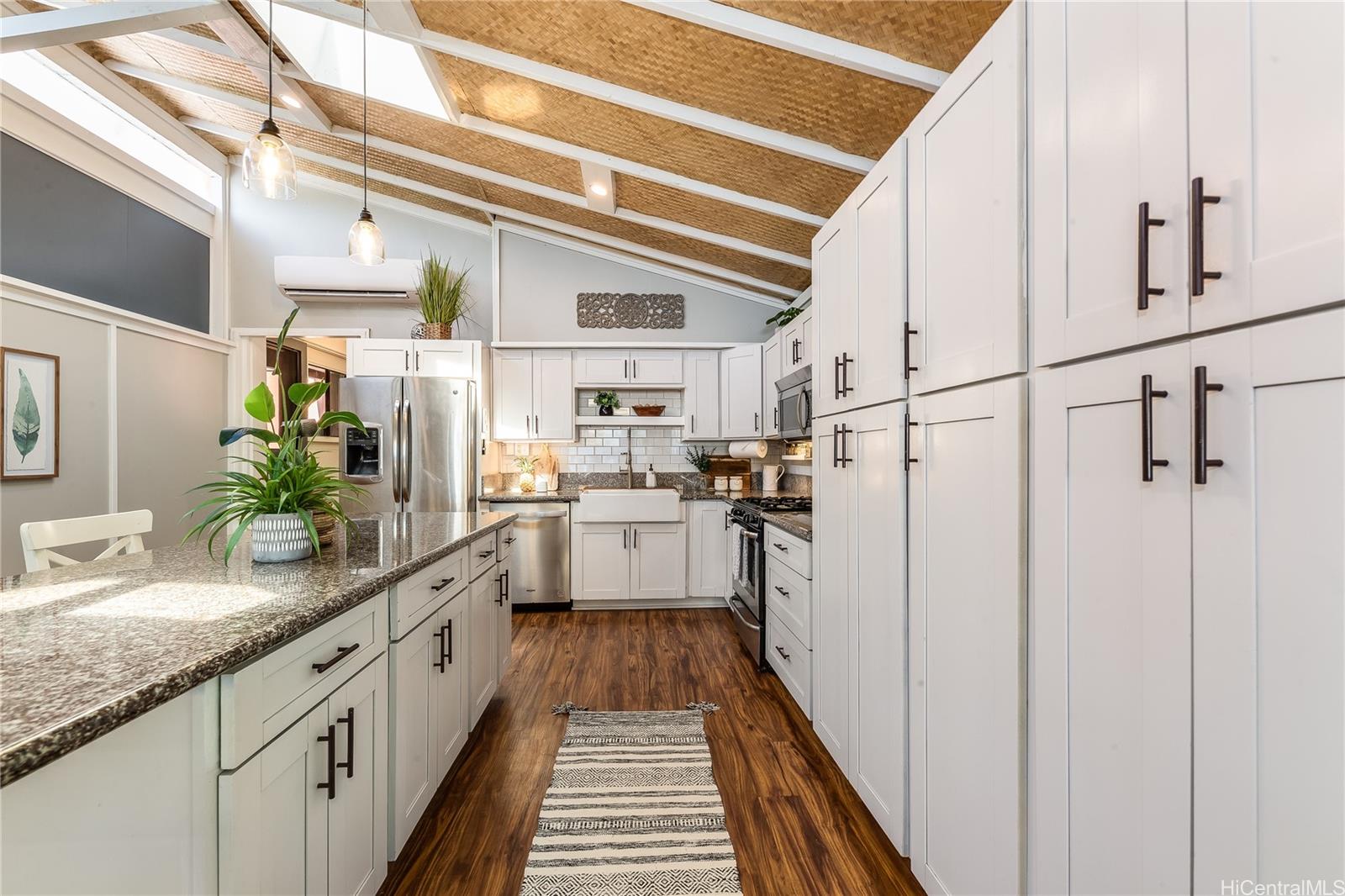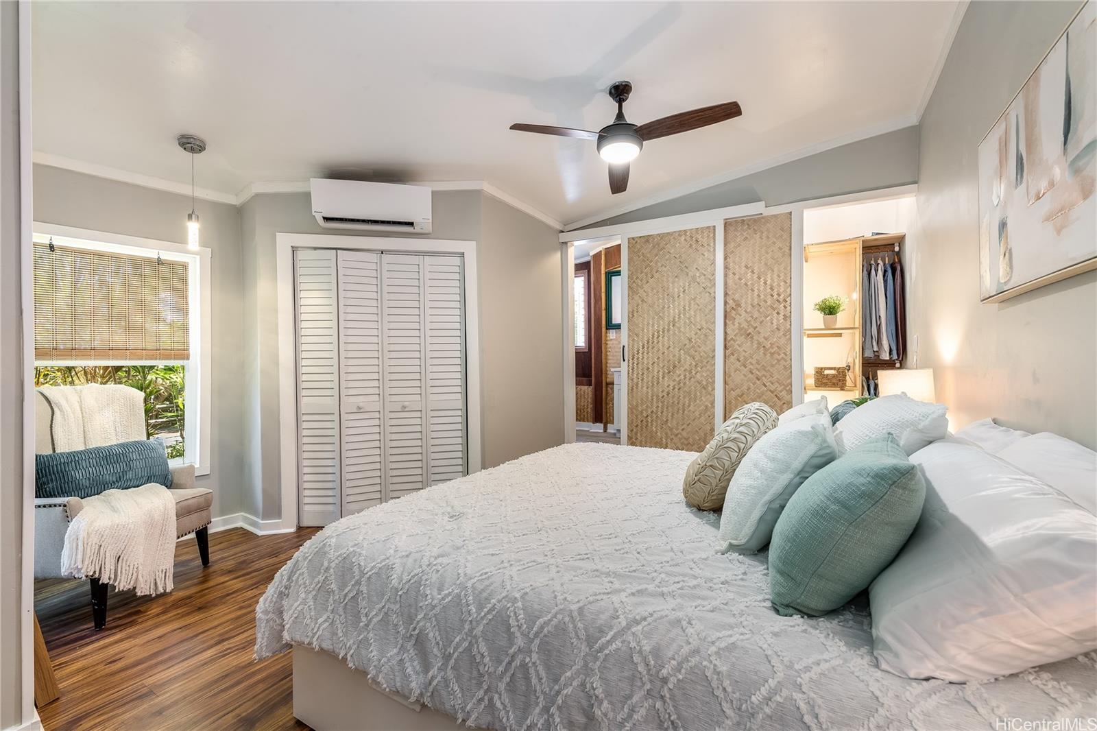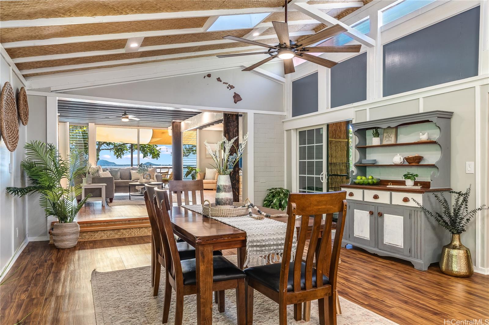 [0] => Experience serene waterfront living in Kahaluu! This spacious 3,088 sq. ft. property offers 3 bedrooms and 3 bathrooms, blending peaceful country charm with the convenience of Kaneohe just minutes away. The main living area features 3 bedrooms, 2 bathrooms, vaulted ceilings, and an open layout showcasing stunning views of Kaneohe Bay. Set on a lush 1/3-acre lot, you’ll find banana, and lime trees, garden spaces, beds of manicured tropical plants, and a covered cooking area with two gas grills. Enjoy breathtaking sunrises from the covered deck overlooking the bay, then fish, kayak (3 included), or boat straight from your backyard. Designed for comfort and sustainability, the home includes 46 Tesla solar panels, 3 Powerwall batteries, split A/C and window units throughout, a carport, and a massive garage/workshop fully equipped with tools and maintenance materials. The home is being sold furnished, and the seller is open to including his 20’ bay boat with the sale! Three attached studio spaces, each with a private entrance and wet bar, offer flexibility for guests, extended family, or creative use.