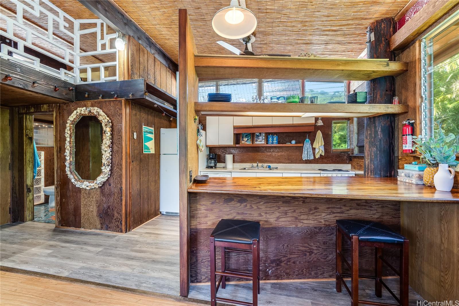 Experience serene waterfront living in Kahaluu! This spacious 3,088 sq. ft. property offers 3 bedrooms and 3 bathrooms, blending peaceful country charm with the convenience of Kaneohe just minutes away. The main living area features 3 bedrooms, 2 bathrooms, vaulted ceilings, and an open layout showcasing stunning views of Kaneohe Bay. Set on a lush 1/3-acre lot, you’ll find banana, and lime trees, garden spaces, beds of manicured tropical plants, and a covered cooking area with two gas grills. Enjoy breathtaking sunrises from the covered deck overlooking the bay, then fish, kayak (3 included), or boat straight from your backyard. Designed for comfort and sustainability, the home includes 46 Tesla solar panels, 3 Powerwall batteries, split A/C and window units throughout, a carport, and a massive garage/workshop fully equipped with tools and maintenance materials. The home is being sold furnished, and the seller is open to including his 20’ bay boat with the sale! Three attached studio spaces, each with a private entrance and wet bar, offer flexibility for guests, extended family, or creative use. Listing by: eXp Realty (808) 725-2794