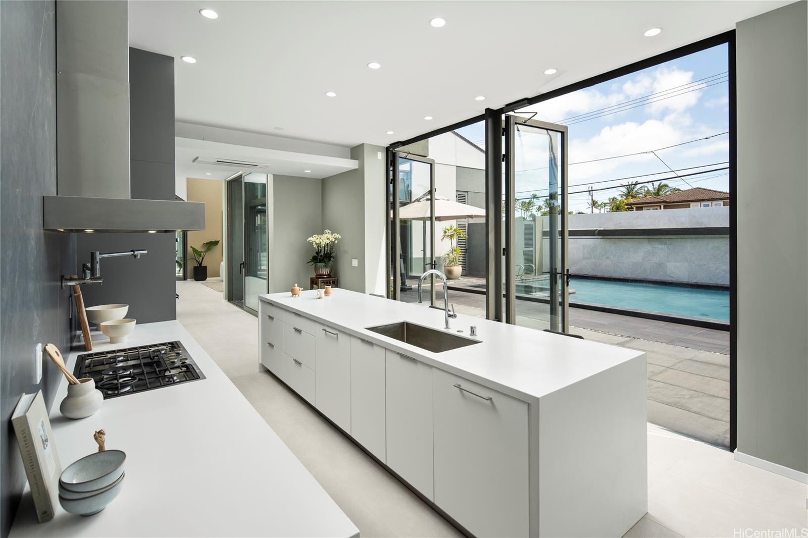 Experience luxury living in this expansive, modern home designed to seamlessly blend indoor and outdoor lifestyles. Open-concept layout with three family rooms, this home is filled with natural light and offers plenty of space for relaxation and entertainment. Miele and Bosch appliances, porcelain tiles imported from Italy , Studio Becker cabinets, Corian countertops, 4 oversized en-suite bedrooms adorned with termite resistant hardwood flooring for added style and durability. Therapy pool (2-4 ft deep) Jacuzzi, a tranquil koi pond, and an enclosed yard perfect for entertaining or unwinding. Elevator shaft, two wine refrigerators, 2 dishwashers, and 2 laundry areas, making this home as practical as it is luxurious. An attached ADU provides flexible living options for guests or extended family. The property also features two outdoor powder rooms for pool and yard use, premium German-engineered gates, and a state-of-the-art video security system for peace of mind. Every detail, from granite exterior finishes to thoughtfully designed spaces, exudes sophistication. Few Blocks away from Sandy Beach. Listing by: List Sotheby's Int'l Realty (808) 735-2411