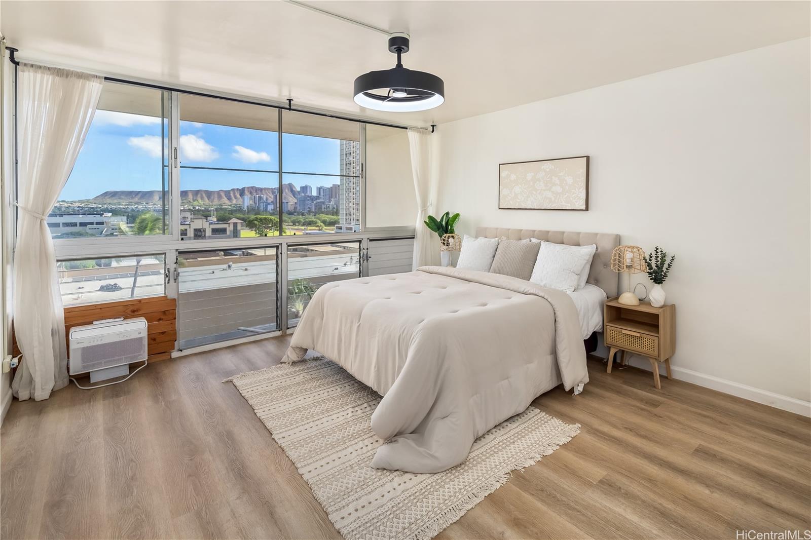Stunning 2-bedroom, 2 & 1/2 bath AND 2 parking (#302 & #736) with extended lanai and elegant arched window that frames a gorgeous full Diamond Head view — a rare find! Natural sunlight floods the interior all day long, creating a warm, inviting atmosphere. Enjoy modern comfort with luxury vinyl tile flooring throughout, fresh paint, and no popcorn ceiling (clean, updated finish). Inside, the thoughtful layout offers generous living space, ideal for relaxing or entertaining. As part of Ala Wai Plaza, you benefit from resort-style amenities including a pool, fitness center, BBQ and recreation areas, 24-hour security, on-site resident management, bike & surfboard storage, extra space storage and more — all within a well-maintained, pet-friendly building. Located just minutes from top destinations — whether it’s the beach, shopping at Ala Moana Shopping Center, or the shops and dining of Waikiki — this unit offers the perfect blend of comfort, convenience, and the iconic Hawaiian lifestyle. Don’t miss this bright, tranquil retreat with unbeatable Diamond Head views! Listing by: Coldwell Banker Realty (808) 676-7200