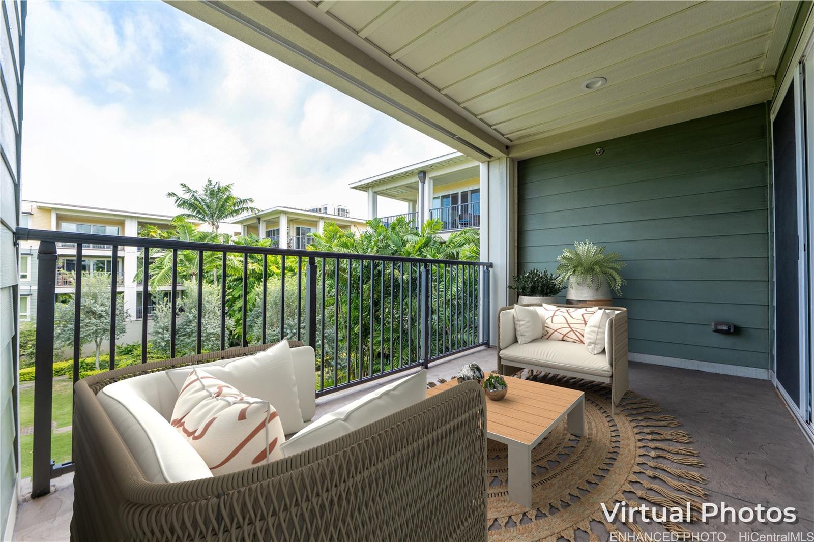 Ka Malanai at Kailua offers quintessential "modern island living" in the heart of Kailua, where everything is truly at your fingertips—Kailua Beach, shopping, fine dining, fitness centers, yoga studios, and more. This peaceful and beautifully upgraded Aoloa Plan A1 residence features tile flooring throughout the main living area with plush carpeting in the bedrooms. Lightly used as a second home by its original owners, the unit has been meticulously maintained and is in excellent condition. Features include fresh interior paint, vertical blinds, classic plantation shutters providing flexibility for light control and privacy, and upscale appliances. The home has been professionally cleaned and is move-in ready. Enjoy the coolness of central air conditioning, a comfortable open-concept floor plan, spacious covered lanai overlooking the lush, professionally landscaped grounds—ideal for relaxing or entertaining. There are two assigned covered parking spaces. Some photos are virtually staged. VISIT OUR OPEN HOUSE 2/22, @2-5PM. Listing by: Hawaii Modern Realty (808) 792-3910